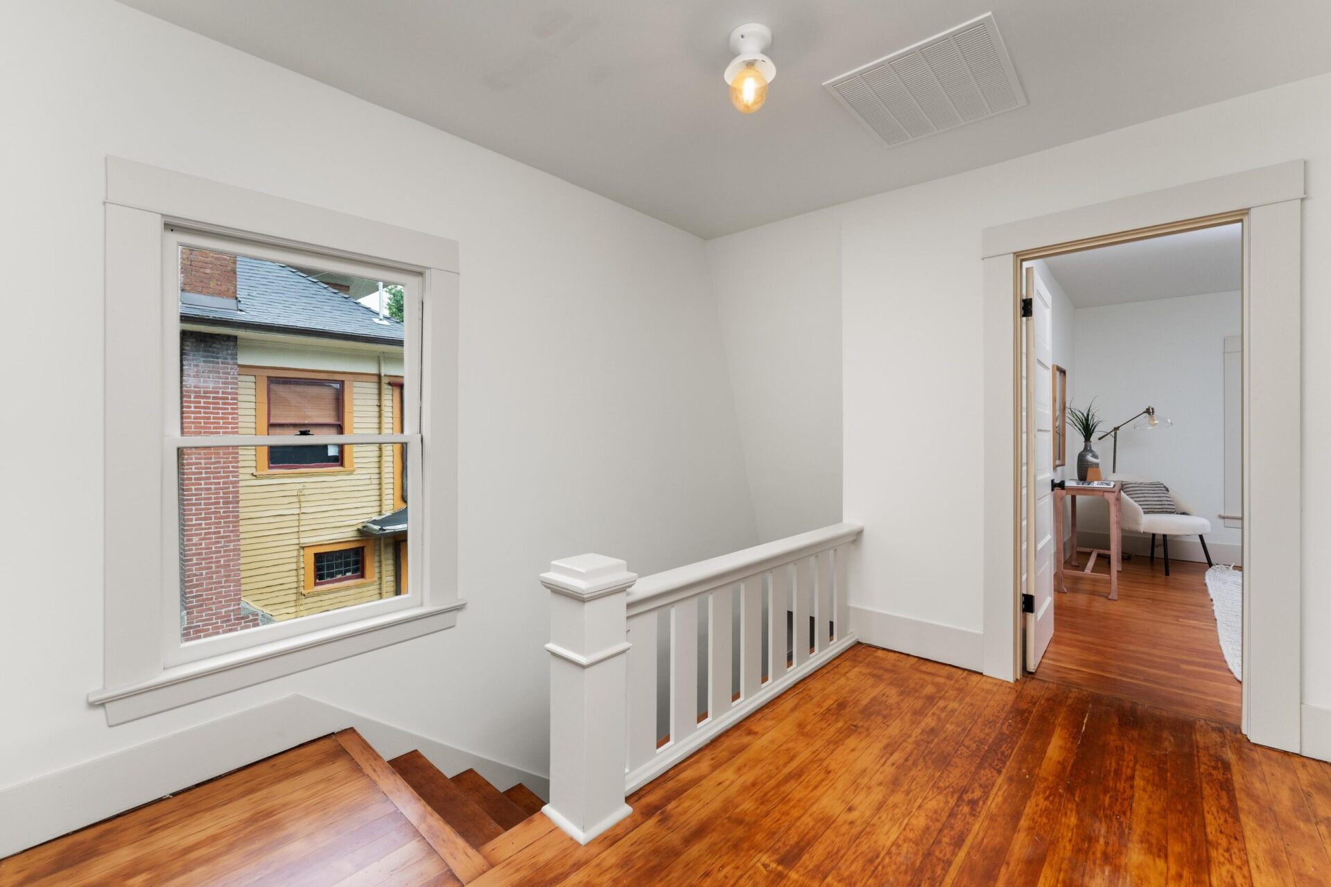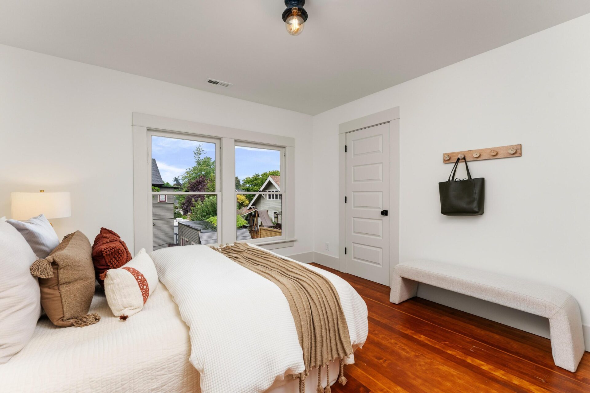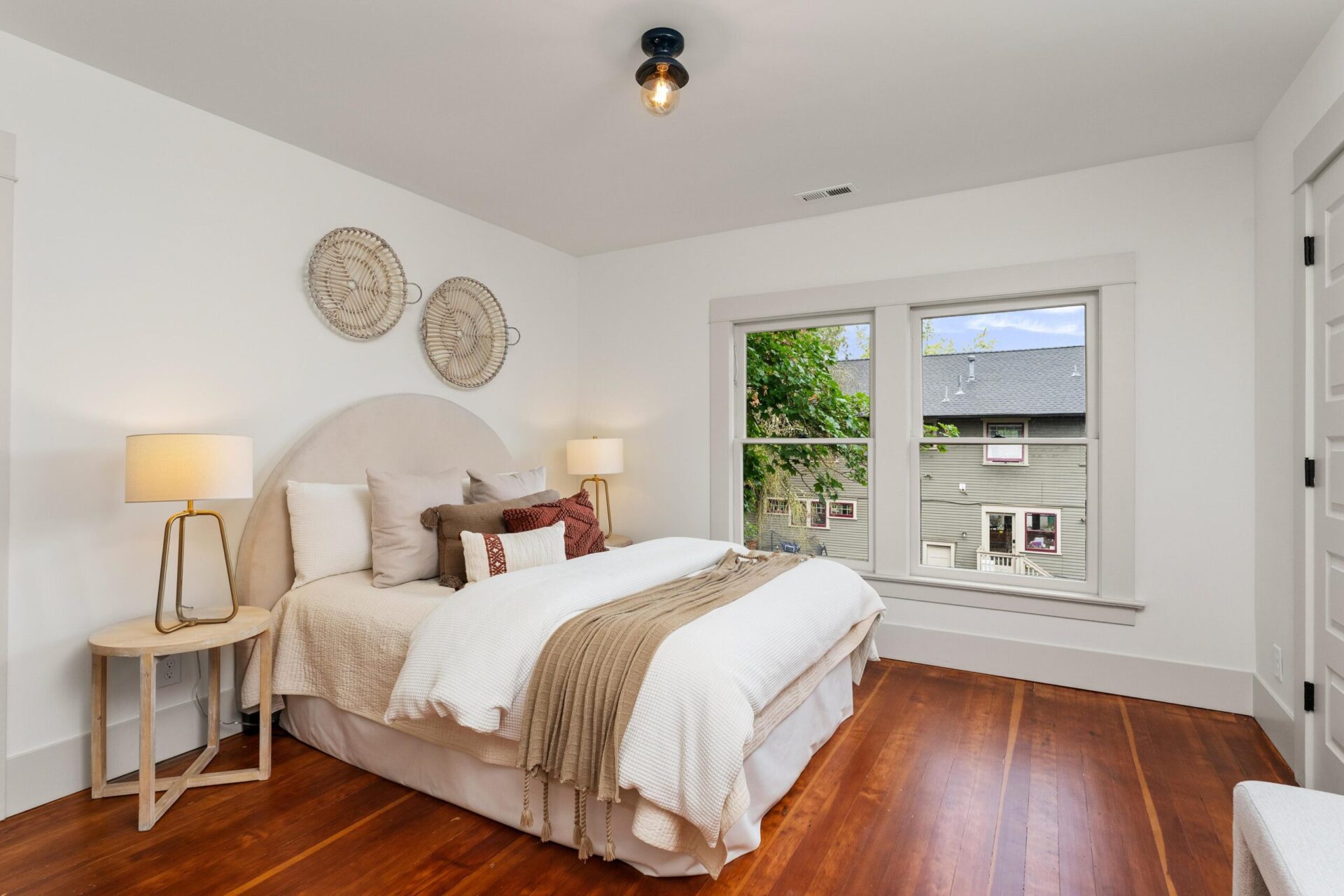 Originally built in 1910, this stunning craftsman home has been remodeled from top to bottom by one of northeast Portland's best renovators. As a follow up to his record breaking Beaumont projects, Ron Albano is back in Grant Park where he introduced one of his first renovations almost 20 years ago. As you approach the home you will take notice of the incredible craftsmanship that was a hallmark of the turn of the century. Massive corbels flank the deep soffits of the porch, running around all four elevations in unison, while also creating depth and architectural value on the home's trademark hip roofed dormer. Stepping onto the porch, you will notice a scale and depth that you rarely see in new builds today. Entering the expansive front door you are greeted by new oak hardwood floors, the home's original stairwell-side built-ins and a new powder room. The powder room is where you will first notice Albano's creative license. Designer wallpaper surrounds the large space with a clever alcove hosting the furniture style vanity with perfect sconce above. Moving into the living room, classic colors coupled with a new fireplace surround and incredible divided light windows showcase a perfect balance between old and new. The adjacent dining room has been improved to host a stunning Schoolhouse chandelier, two new French doors and a new, wider opening into the completely remodeled kitchen. Custom solid oak casing wraps the transition between the rooms and introduces you to the gorgeous oak slab cabinets Albano used alongside brilliant white quartz counters, a picture perfect barn style door to the pantry and the trademark Wolf range he always employs. Moving upstairs you will find three gracious bedrooms all boasting newly refinished fir floors, gorgeous white walls with Hushed Hue casing and an incredible, completely remodeled bathroom. Albano managed to recraft the dimensions of the bathroom to include a stunning custom tile-set shower, gorgeous freestanding tub and a custom double vanity you don't want to miss. In addition to the two stunning above grade floors is a 700 square foot finished basement with new polished concrete floors, gorgeous built-ins, a new, third full bathroom, family room and expansive fourth bedroom. Beyond these spaces Albano finished the tuck-under garage and created new storage spaces which are home to a new tankless water heater and furnace. Unlike many renovators, he introduced all new mechanicals, electrical and plumbing throughout the home, while also adding new central air conditioning. Beyond the showcase interiors, is a huge backyard, where Albano installed all new cedar fencing, a new lawn and a trex deck off the back of the home, which is perfectly elevated above the yard. With an address just blocks to the library, Whole Foods, countless Hollywood shops and two of Portland's most cherished schools, you don't want to miss this noteworthy renovation!