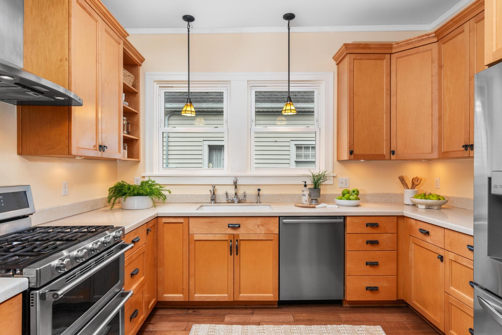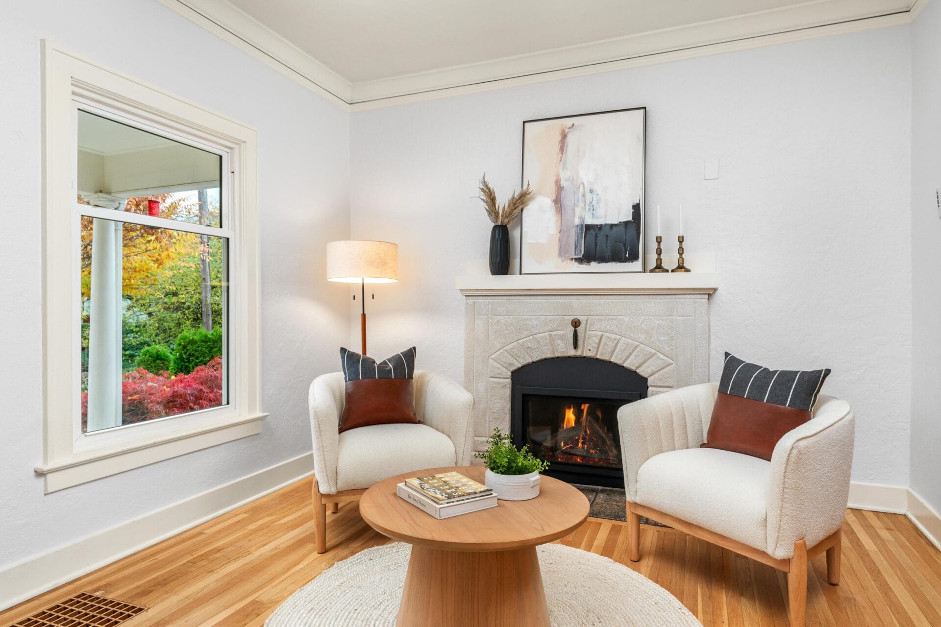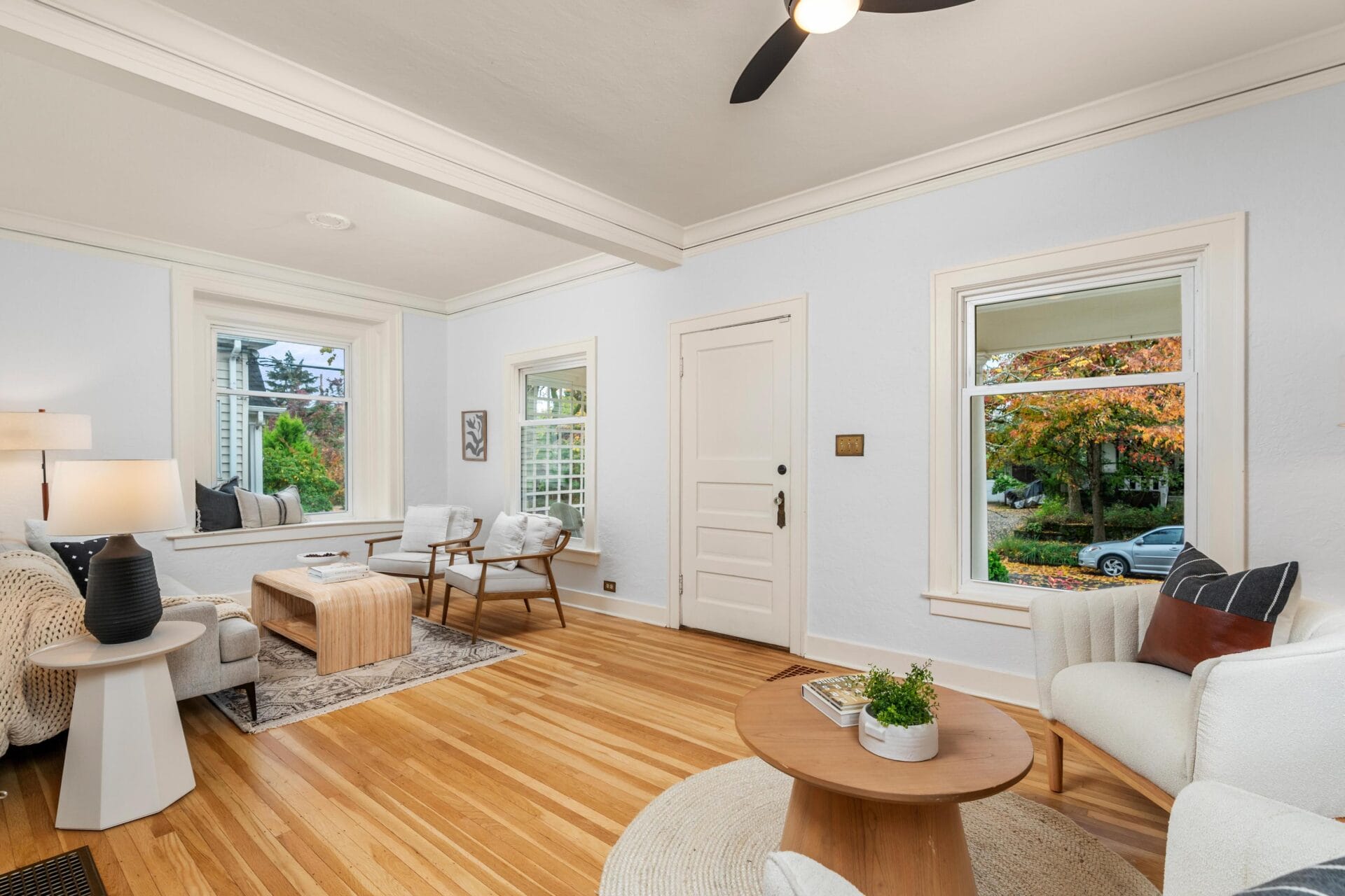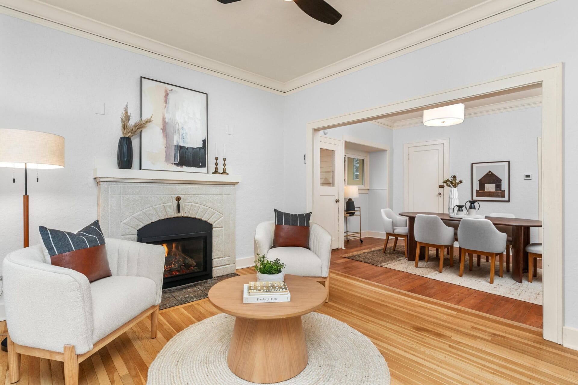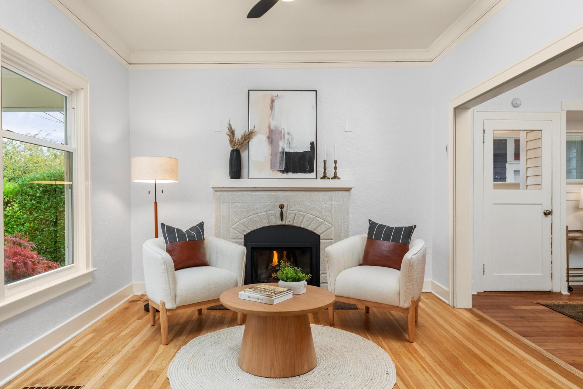 Originally built in 1904, this stunning Mt. Tabor farmhouse stands today in one of the most sought after pockets of southeast Portland. As you approach the home, you will notice the classic primary gable which is anchored by a broad shouldered porch, highlighted by four doric columns. Entering the home, you will be captivated by the high, Victorian-era ceilings, expansive windows and gorgeous oak hardwoods underfoot. The living room is highlighted by a window seat, classic millwork and a trademark arched fireplace. The living room seamlessly flows into the dining room which can also be accessed by an adjacent mudroom and side entrance. The dining room flows perfectly into the open kitchen. The kitchen is the heartbeat of the floor plan and perfectly delineates the formal spaces from the main floor bedrooms and bathroom. With solid surface counters, dovetailed stain grade cabinets and stainless steel appliances, you will love the utility and aesthetics of the space. Moving to the eastern wing of the main floor, you will find fir flooring, period lighting, an updated bathroom and two bedrooms, one with direct access to the backyard. Beyond the 1000 square feet on the main level is a second floor which features two gracious bedrooms, a second full bathroom and a bonus room complete with a small kitchenette. Moving back downstairs to the basement is another 600 square feet which offers multiple spaces for storage, tackling hobbies and managing laundry. At 2500 square feet, the main dwelling is complimented by an additonal finished outbuilding. Perfect for a workout studio, home office or a family room, the outbuilding boasts vaulted ceilings, high end windows and doors and gorgeous finish palette complimented by an adjacent covered patio. The home and detached studio sit on an amazing .14 acre, oversized lot. The expansive backyard is highlighted by established plantings, open spaces, a cedar deck and a hot tub. Inside and out, this property combines incredible utility with gorgeous period architecture and charm. With an address located in the Atkinson Elementary and Franklin High School catchment areas, just blocks to Hawthorne Boulevard shops and Mt. Tabor park, you don't want to miss this opportunity to call this classic southeast home your own!