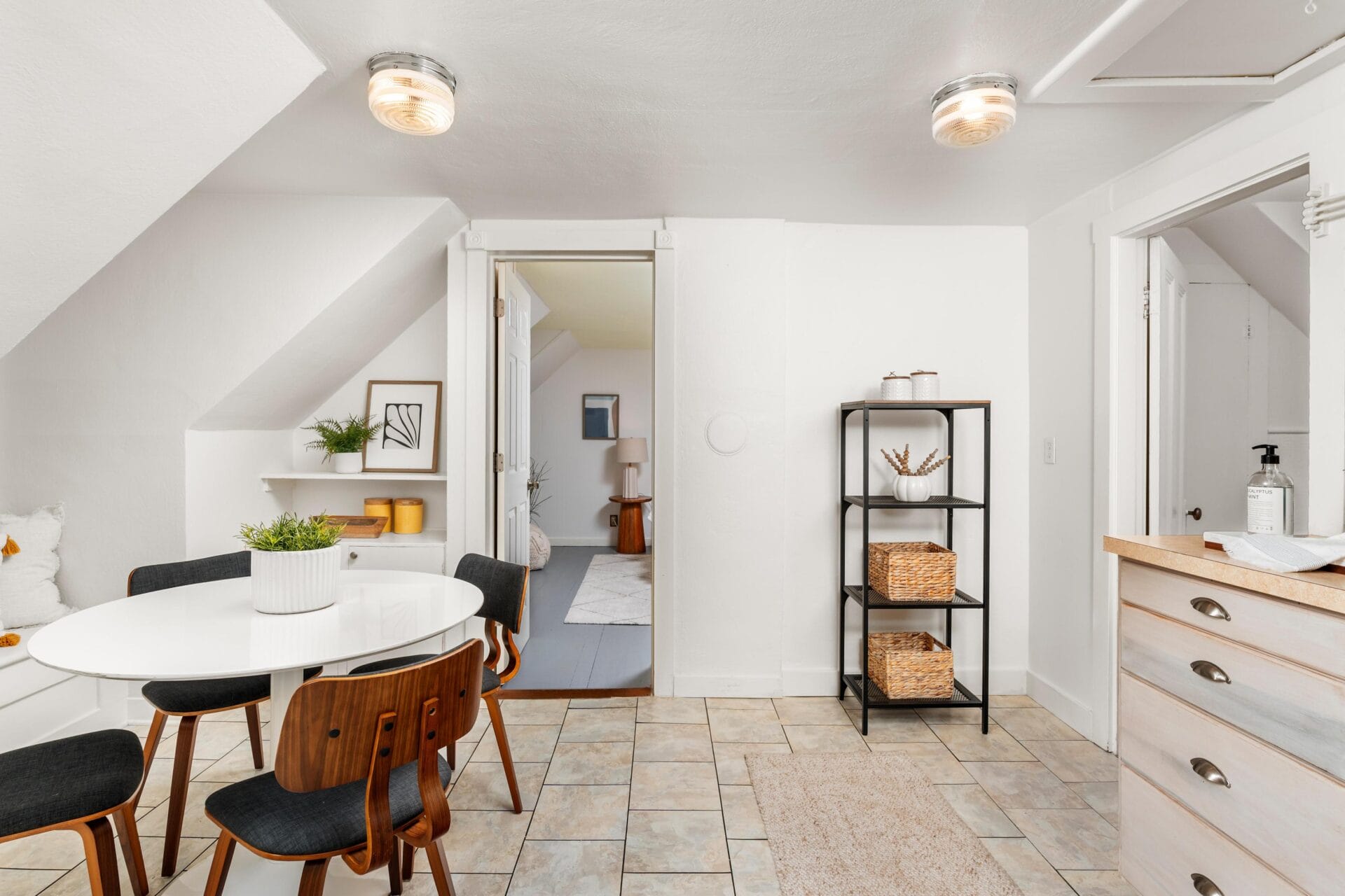 Originally built in 1904, this stunning Mt. Tabor farmhouse stands today in one of the most sought after pockets of southeast Portland. As you approach the home, you will notice the classic primary gable which is anchored by a broad shouldered porch, highlighted by four doric columns. Entering the home, you will be captivated by the high, Victorian-era ceilings, expansive windows and gorgeous oak hardwoods underfoot. The living room is highlighted by a window seat, classic millwork and a trademark arched fireplace. The living room seamlessly flows into the dining room which can also be accessed by an adjacent mudroom and side entrance. The dining room flows perfectly into the open kitchen. The kitchen is the heartbeat of the floor plan and perfectly delineates the formal spaces from the main floor bedrooms and bathroom. With solid surface counters, dovetailed stain grade cabinets and stainless steel appliances, you will love the utility and aesthetics of the space. Moving to the eastern wing of the main floor, you will find fir flooring, period lighting, an updated bathroom and two bedrooms, one with direct access to the backyard. Beyond the 1000 square feet on the main level is a second floor which features two gracious bedrooms, a second full bathroom and a bonus room complete with a small kitchenette. Moving back downstairs to the basement is another 600 square feet which offers multiple spaces for storage, tackling hobbies and managing laundry. At 2500 square feet, the main dwelling is complimented by an additonal finished outbuilding. Perfect for a workout studio, home office or a family room, the outbuilding boasts vaulted ceilings, high end windows and doors and gorgeous finish palette complimented by an adjacent covered patio. The home and detached studio sit on an amazing .14 acre, oversized lot. The expansive backyard is highlighted by established plantings, open spaces, a cedar deck and a hot tub. Inside and out, this property combines incredible utility with gorgeous period architecture and charm. With an address located in the Atkinson Elementary and Franklin High School catchment areas, just blocks to Hawthorne Boulevard shops and Mt. Tabor park, you don't want to miss this opportunity to call this classic southeast home your own!