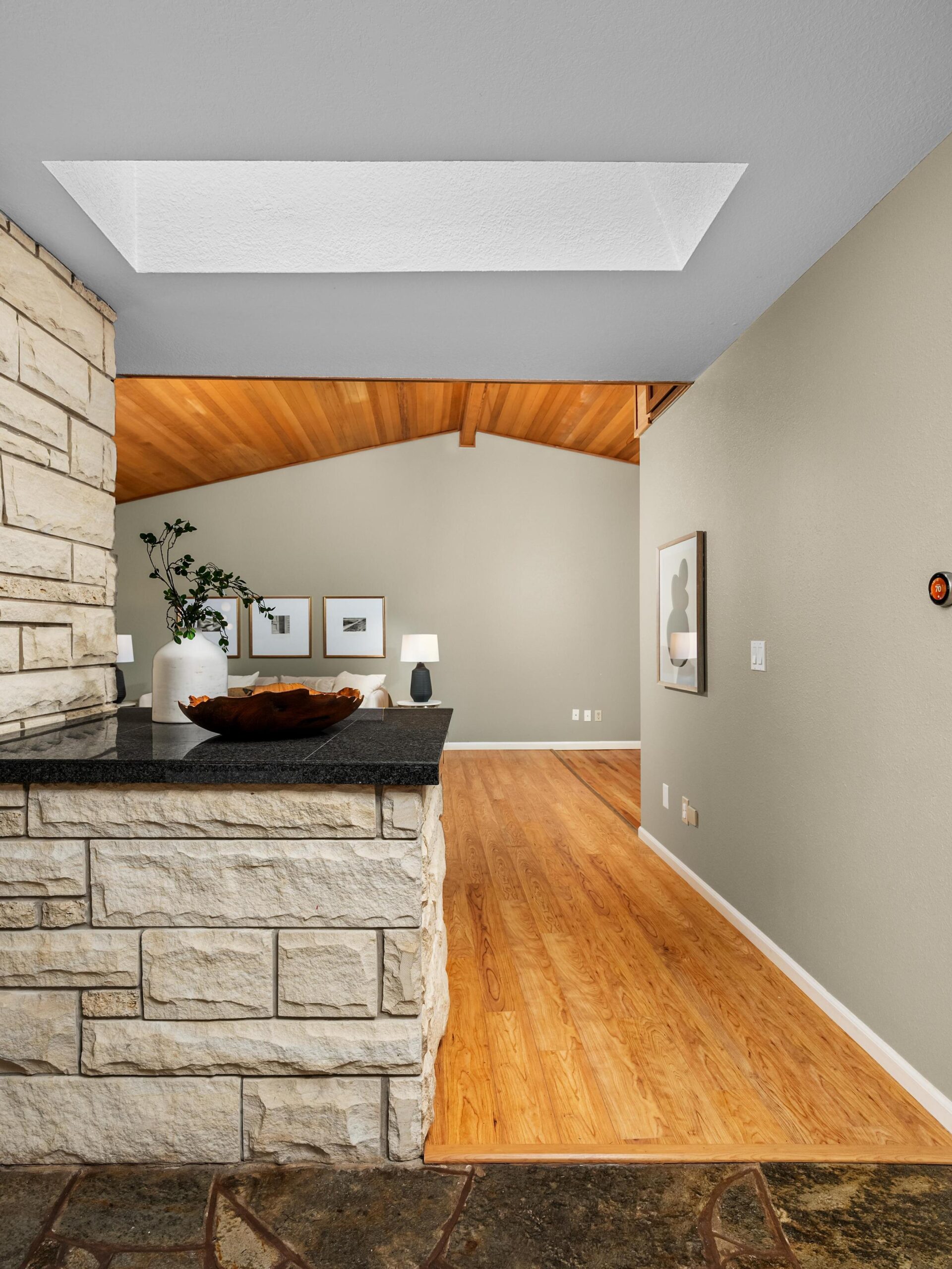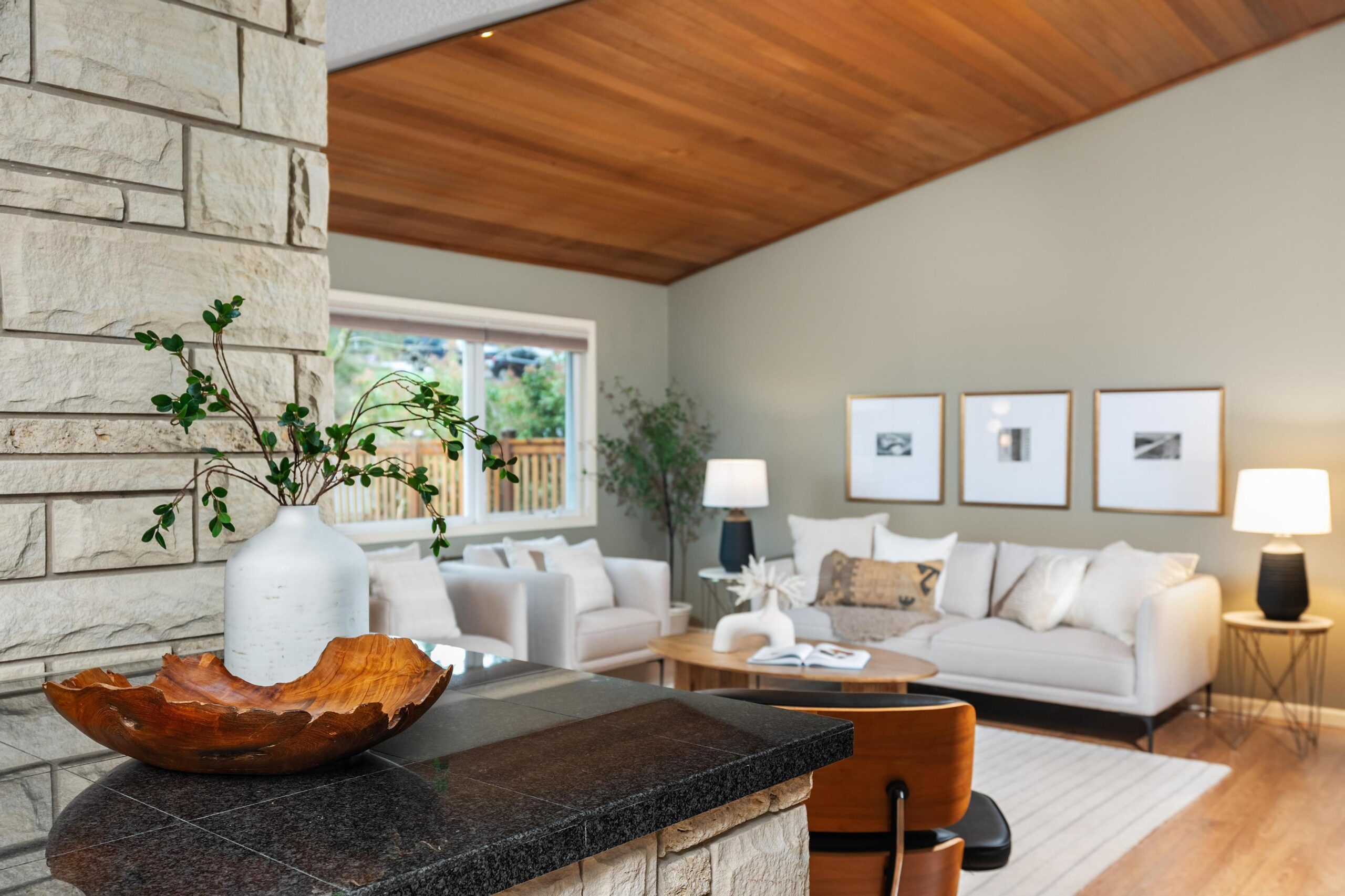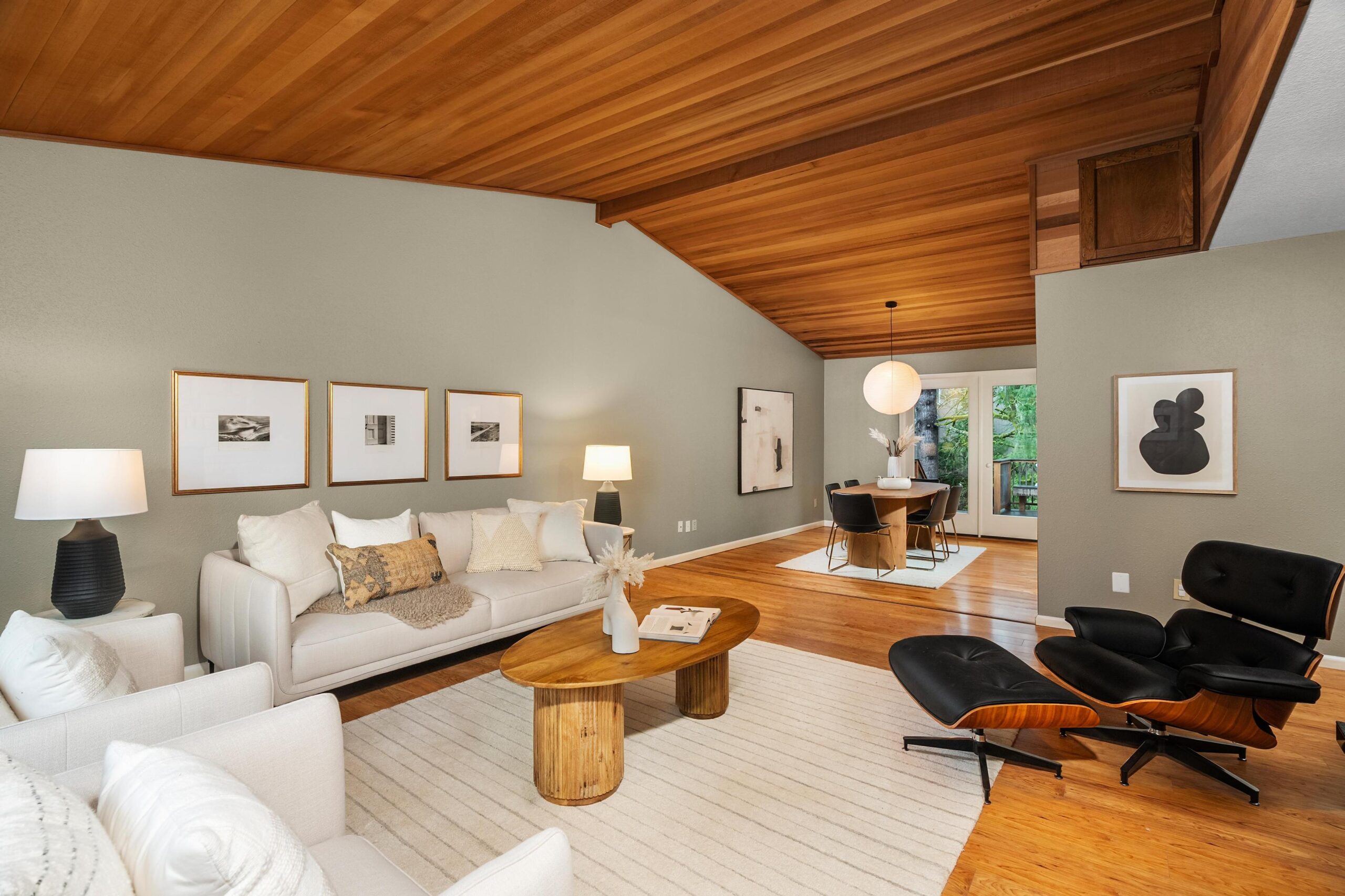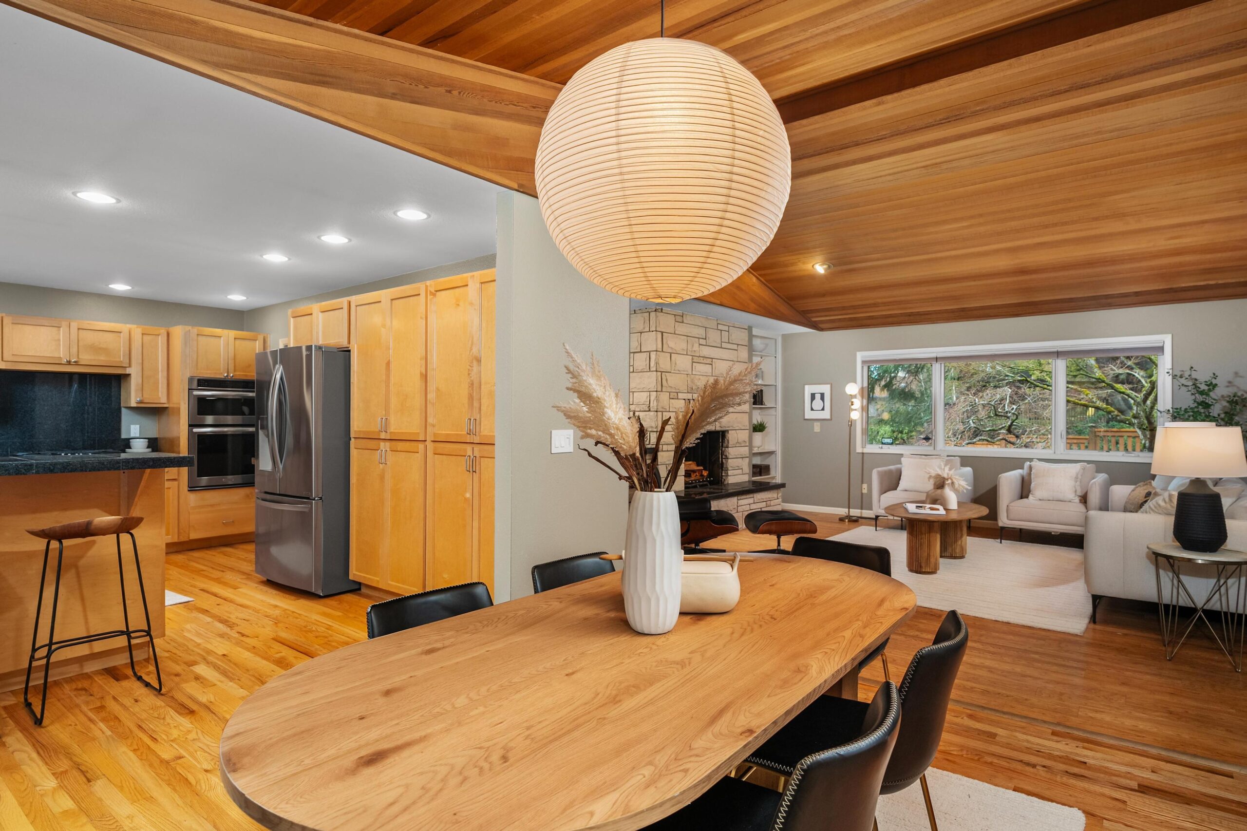 Originally built in 1981, this stunning northwest contemporary stands proudly on almost a quarter acre lot in the sought after West Haven neighborhood. As you approach the home you are welcomed by a paver patio, stunning plantings and a grand front door landing. Entering the home you find yourself in a large foyer with custom flagstone underfoot, drawing you into the home's gorgeous main floor. The living room is magazine-worthy, boasting vaulted ceilings clad in gorgeous clear vertical grain cedar, updated flooring and a stunning wood burning fireplace that anchors the room. Moving seamlessly into the dining room and beyond to the kitchen you immediately witness the home's mid-century influences highlighted by its surface treatments and classic circular flow pattern. The kitchen has been updated to include granite counters, maple shaker cabinetry and stainless steel appliances while the dining room boasts an expansive three panel, full light French door to the backyard deck.Moving beyond the almost 1000 square foot main floor you will find a private, upstairs primary suite. Vaulted ceilings clad in cedar, updated flooring and its own private deck balance perfectly against the stunning, remodeled en suite bathroom which features a custom, double vanity, free standing tub, gorgeous tiled shower and walk-in closet. Moving back downstairs you will find approximately 1500 square feet of finished space in the daylight basement. Three additional bedrooms, a third bathroom, laundry room and large family room / media room highlight the lower level which also offers direct access to a private patio through expansive patio doors. As with the careful interior stewardship, the exterior has been carefully updated and maintained. Multi-level decking, featuring IPE hardwoods offer direct access to the backyard from the upper floors, while terraced grounds maximize the property's utility and stunning backdrop which includes a picturesque creek & established trees.