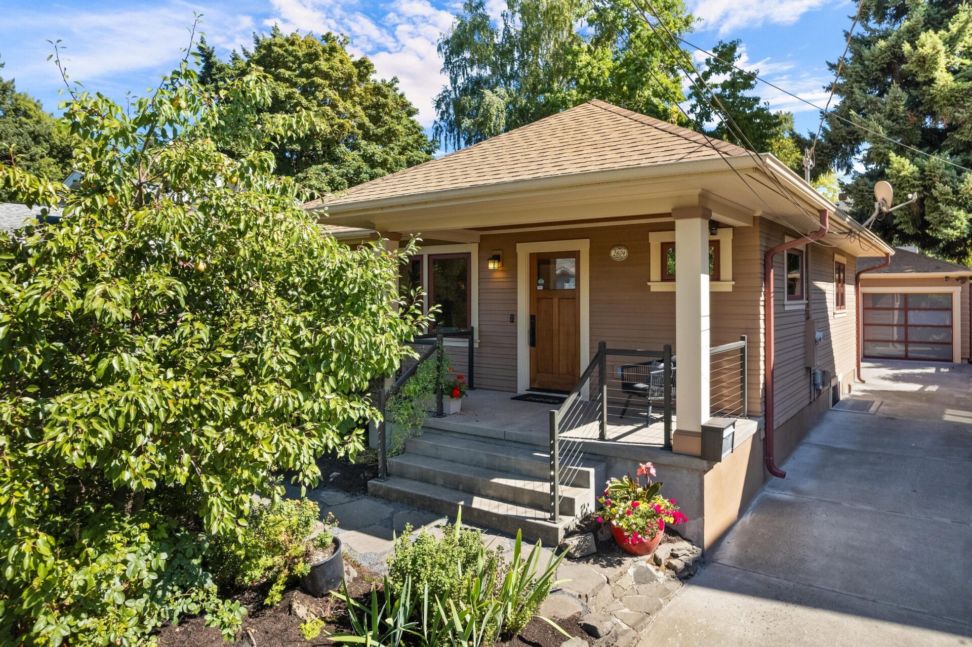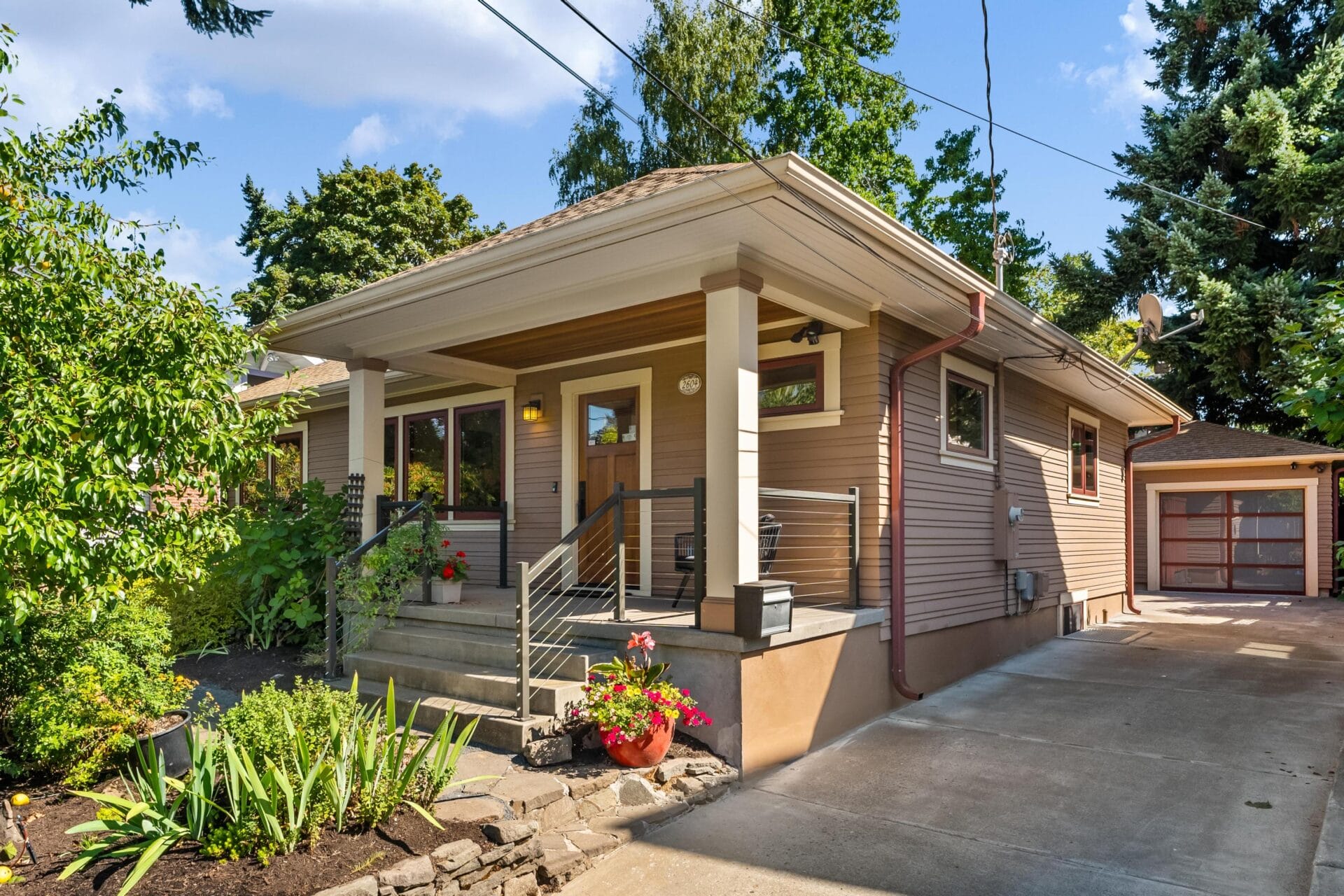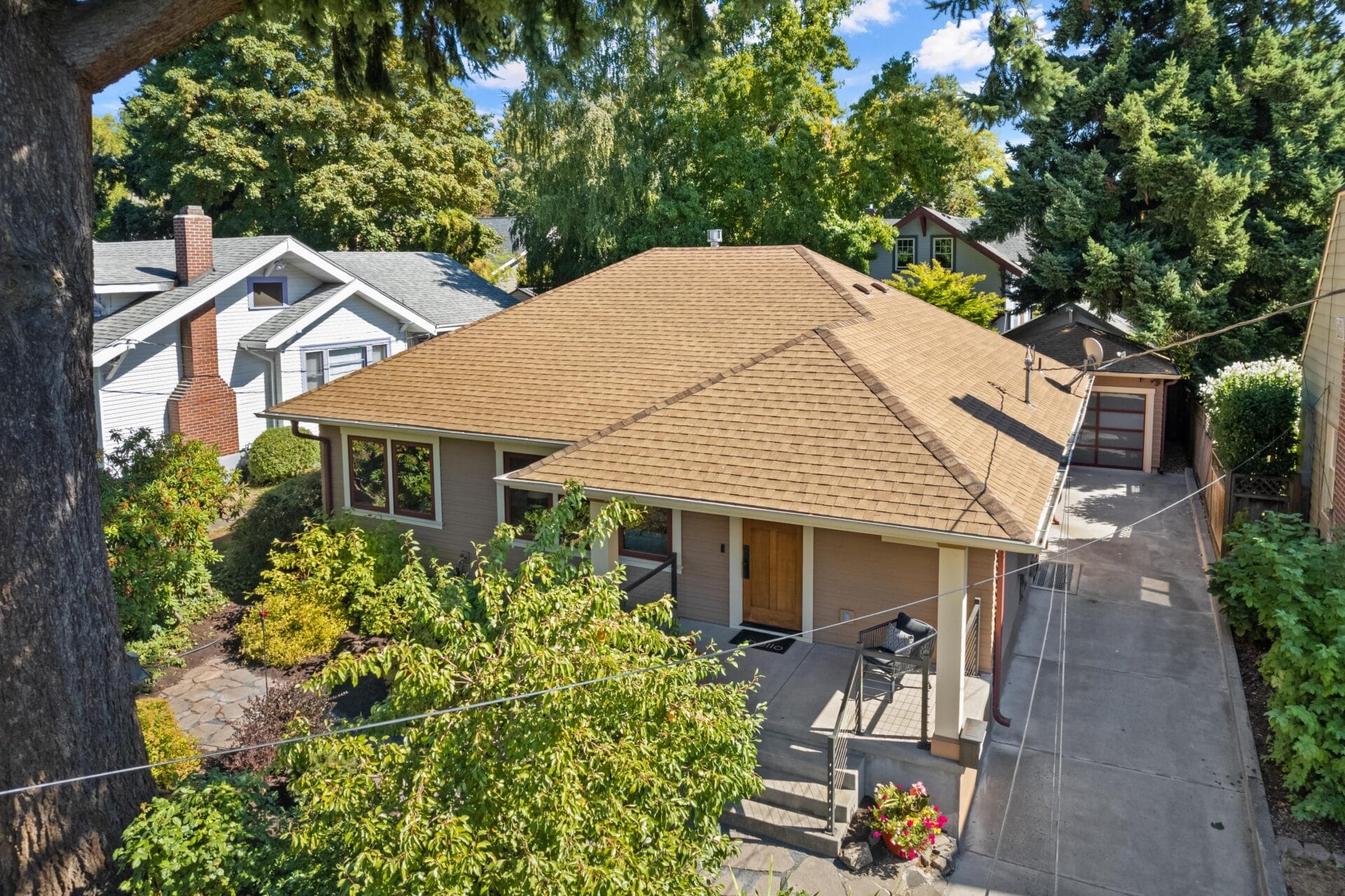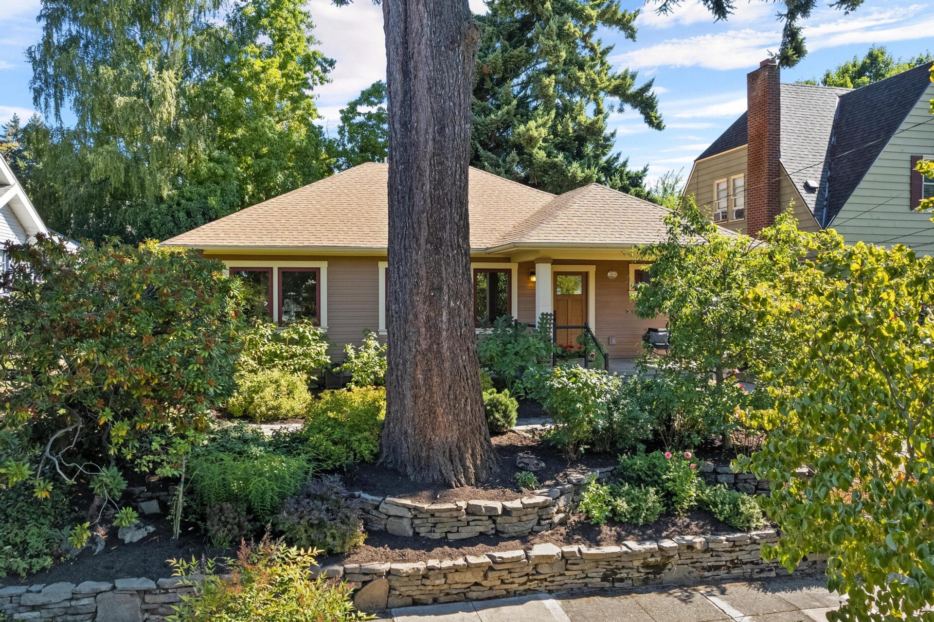 Originally built in 1923, this incredible Grant Park bungalow stands a century later as one of the best renovations in northeast Portland. We rarely see a home so thoughtfully rebuilt with such loving attention to detail and a spacious main-level floor plan and primary suite. As you approach the home, you will see multiple cascading hip roof gables that extend generously beyond the home’s footprint to create its trademark Prairie-style soffits. The soffits feature tongue and groove cedar paneling and a continuous soffit vent. New cedar siding with an alternating reveal complements the remarkable soffit details and reflects the same finishes found in Portland’s most noteworthy Craftsman homes. Stunning new clad-wood windows and custom wood doors round out the completely redesigned envelope.