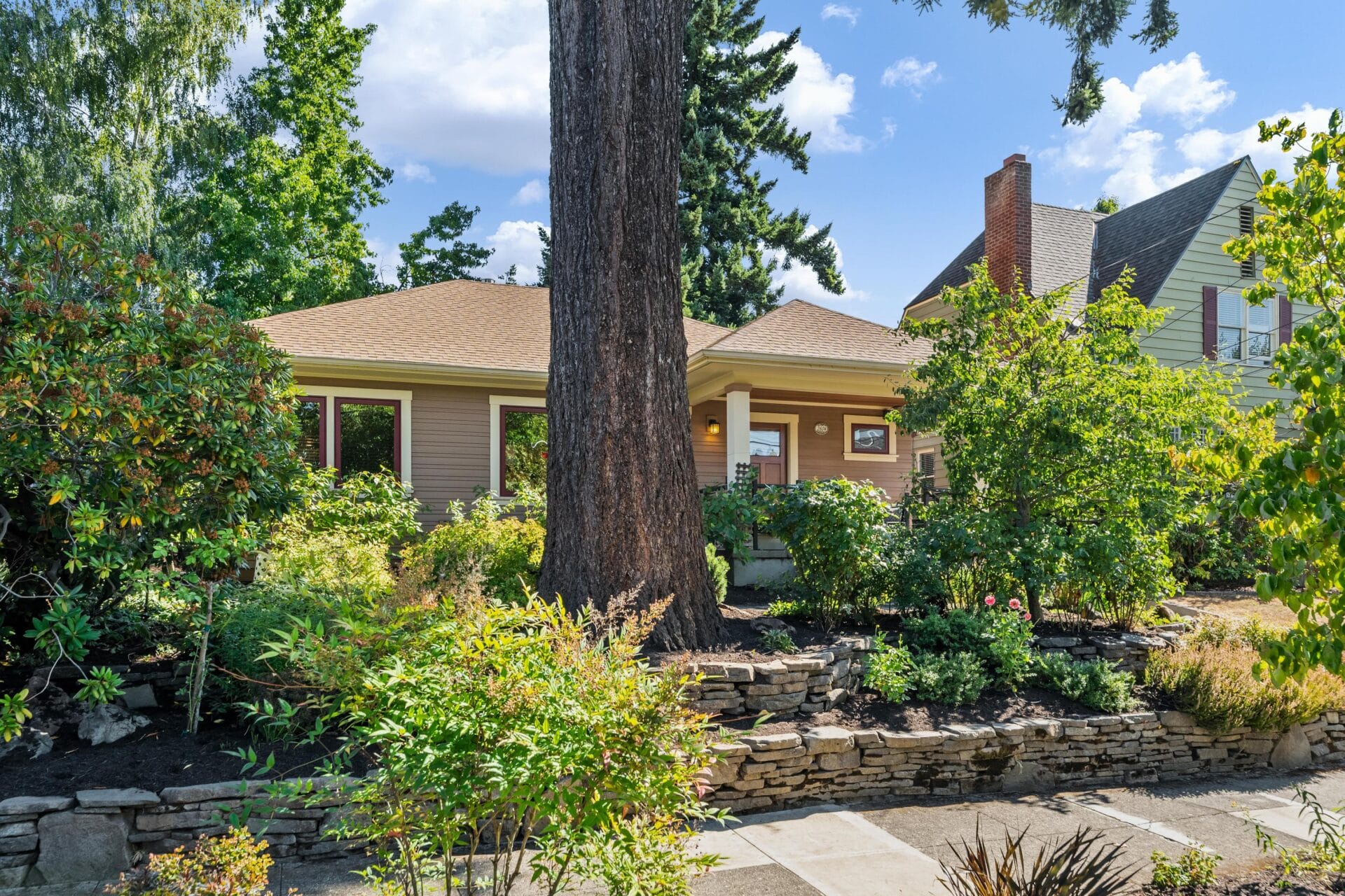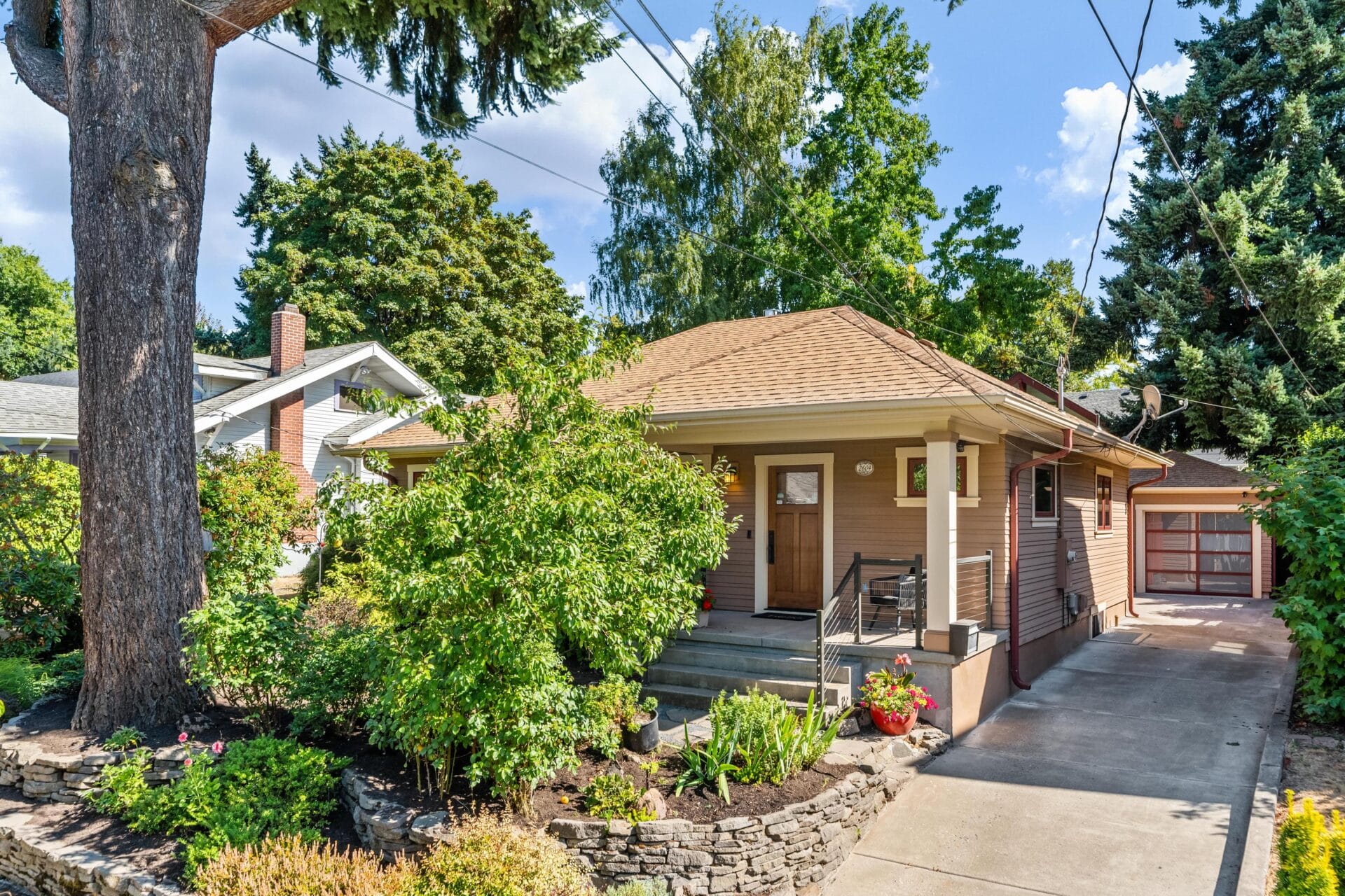 Outside, a peaceful, private backyard awaits. Trex decking and a paver patio provide elegant utility and the opportunity to create different outdoor spaces to entertain, take in a good book, or enjoy the restful sound of the custom basalt fountain. The completely rebuilt garage features the same wood clad windows and custom cedar siding on the home. Inside, you will find a vaulted ceiling, exposed wood beams and an amazing, newly refurbished swim spa. A beautiful, fogged glass carriage door provides ample additional light and privacy. Beyond these incredible amenities and stunning finishes, the grounds include established native trees and shrubs and a classic two-tier dry stack stone wall in the front yard. With an address located just blocks to the Hollywood business district and within the sought after Beverly Cleary and Grant High School catchment area, you don’t want to miss this noteworthy home.