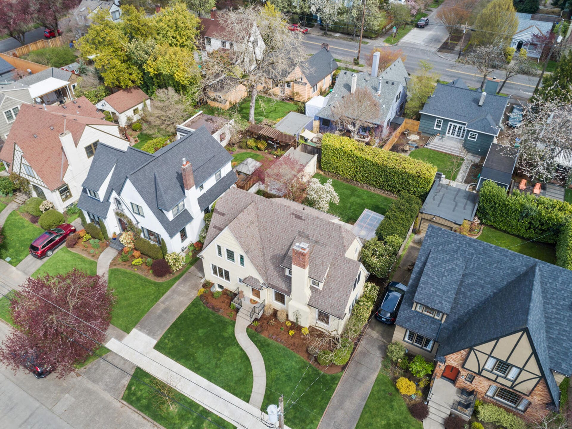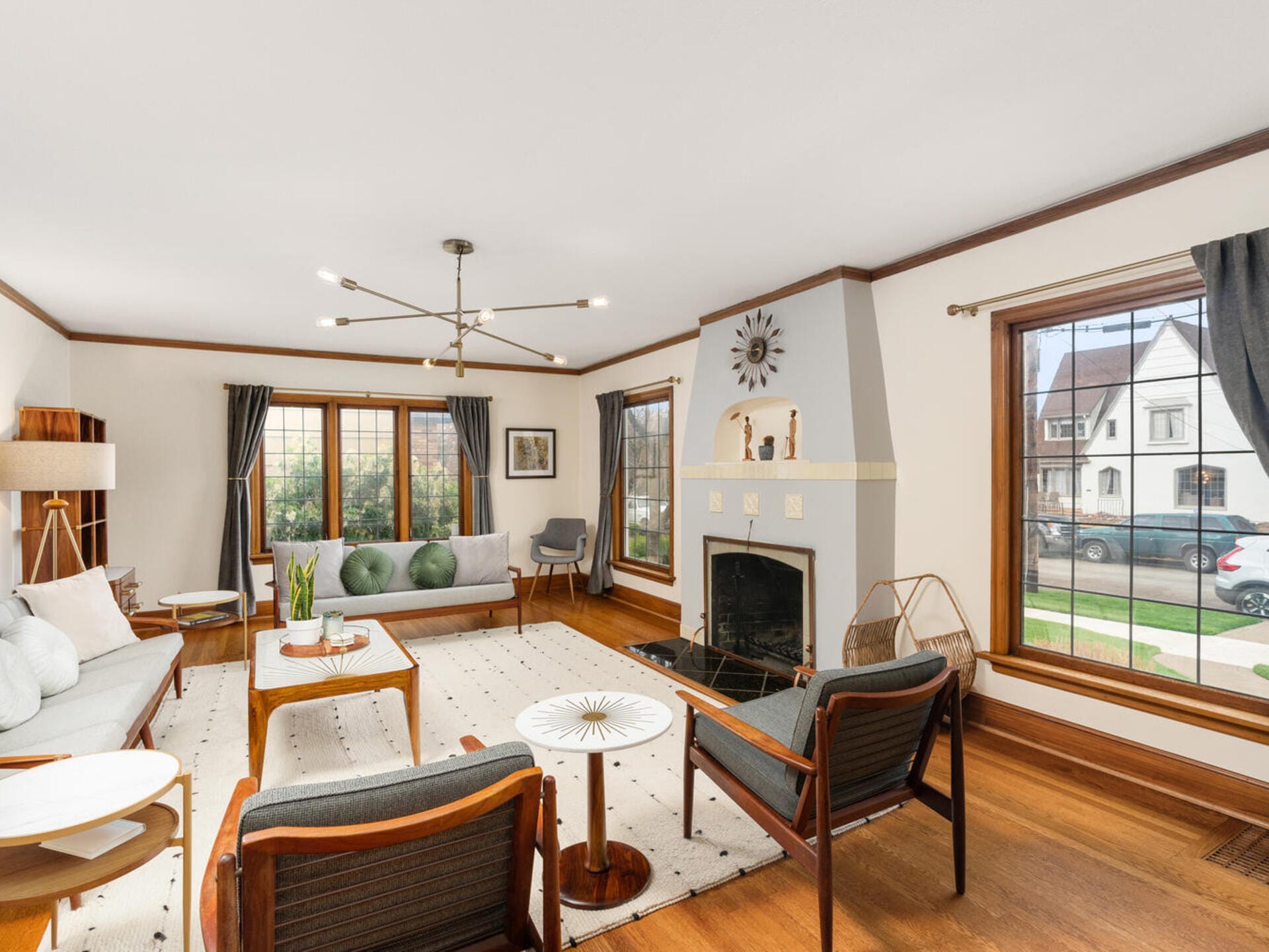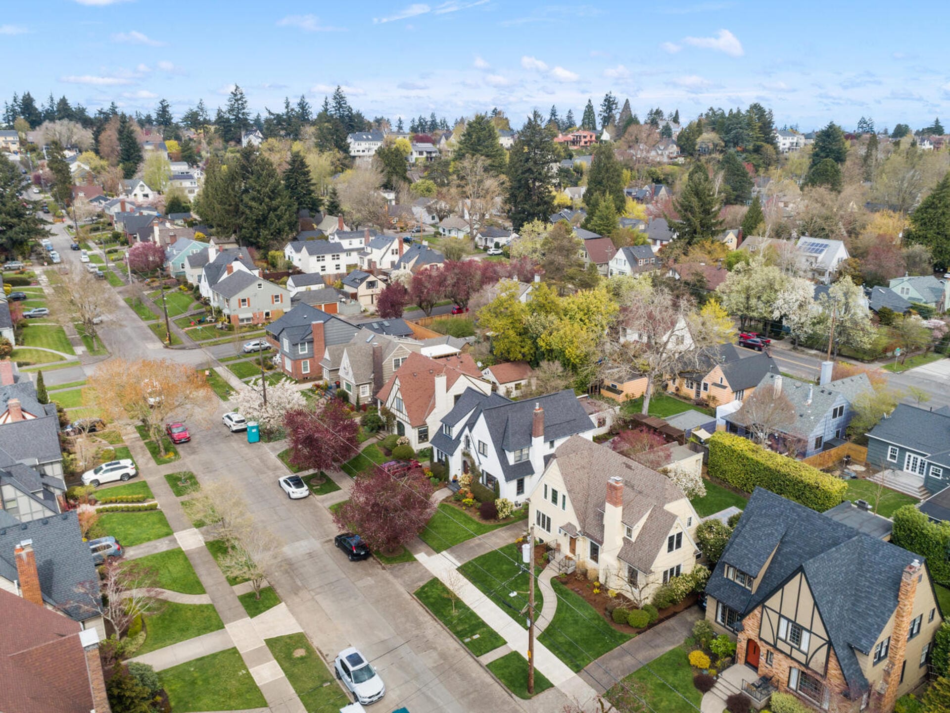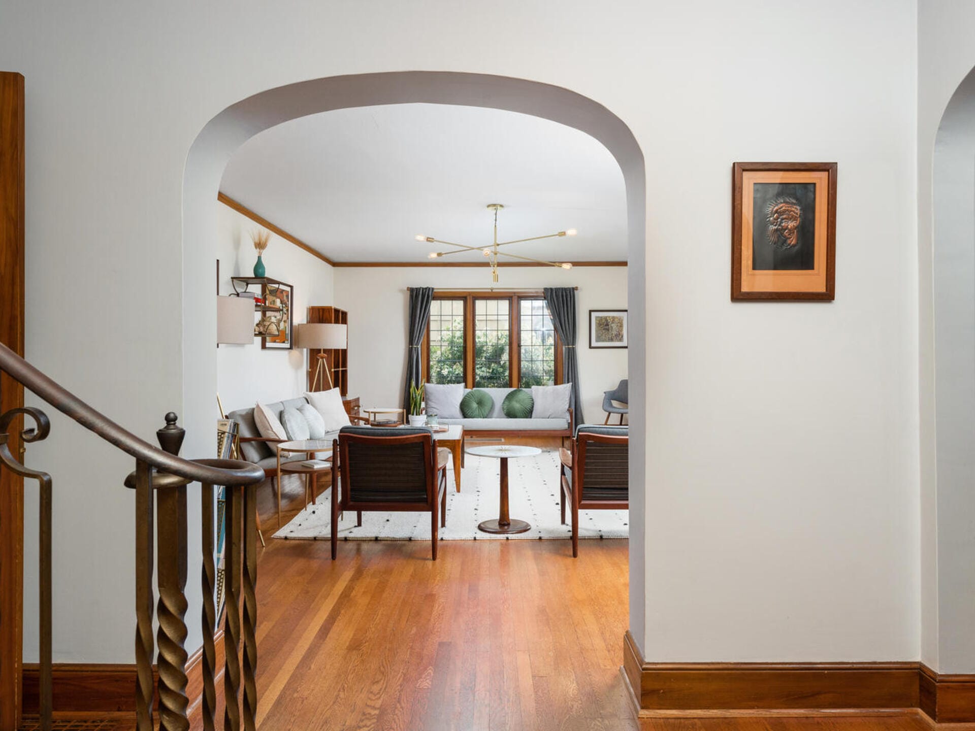Originally built in 1929, this stunning Alameda English has been carefully updated to create an elegant balance between the home’s original period details and new sought after modern updates. As you approach the home you immediately notice the scale of the yard which is broad and beyond the average northeast home’s width and scale. Stunning grounds coupled with a new etched concrete approach lead you to the home’s classic front door and new porch. Entering the main floor you find yourself in a sunken entry, indicative of English homes from this era and perfectly scaled to allow easy access into the home’s more grand foyer. An expansive living room featuring oak hardwoods, a gorgeous custom fireplace and large leaded glass windows anchor the southwest wing of the main floor while the home’s formal dining room clad in stunning period millwork and oak hardwoods balances the northwest wing. From the dining room you enter the remodeled kitchen which features new flooring, updated hard surfaces, classic white cabinetry and a picture perfect nook with schoolhouse lighting. Just off the nook is a mudroom space with dutch door and the perfect storage alcove. Moving south you will find the home’s gorgeous main floor bathroom and large adjacent bedroom with french doors and a direct perspective of the backyard patio. Moving upstairs you can’t help but swoon at the custom balustrade and newel post which reflect the home’s English heritage. A light filled hallway gives access to a second full bathroom which has been remodeled with classic period tiling and fixtures. Moving beyond the bathroom you find yourself in the incredible master bedroom which has an abundance of room to unwind and countless opportunities to grow the functional space. On the opposite side of the second floor is a second large bedroom with gorgeous hardwoods, designer colors and ample storage. With over 700 square feet across the second floor and more than 1150 on the main floor, the above grade square footage gracefully influences the stunning scale of the home at every elevation. This home doesn’t stop at these two floors however. A third lower level, with over 800 square feet boasts a fourth bedroom, third full bathroom, laundry area and gracious bonus room. Countless designer details at every turn are a testament to the homeowner’s careful stewardship and astute taste which is evident across all three floors. Moving beyond the interior of the home is the backyard which is not only notable for its size, but for its privacy. Established english laurel create a soft barrier to the east while home’s detached garage buffers the property to the north. A hardscape patio with gazebo is yet another update introduced by the current owner who has also ensured the established trees and vines grow and bloom at their best potential throughout the yard. Both inside and out, this four bedroom, 3 bath Alameda home embodies the English architectural movement which is nowhere more notable than on this stretch of 32nd Place just blocks to the schoolyard and Grant Park.