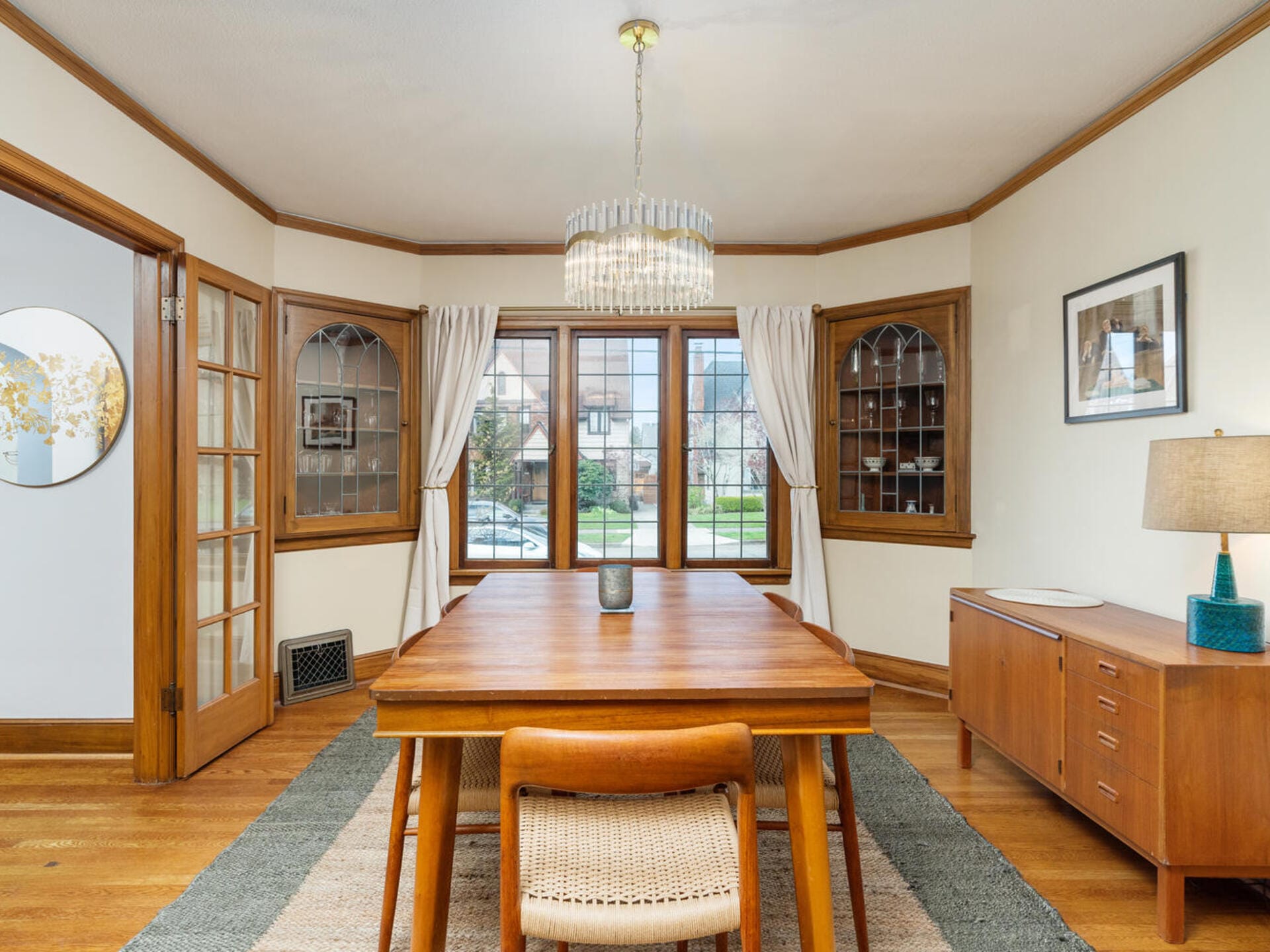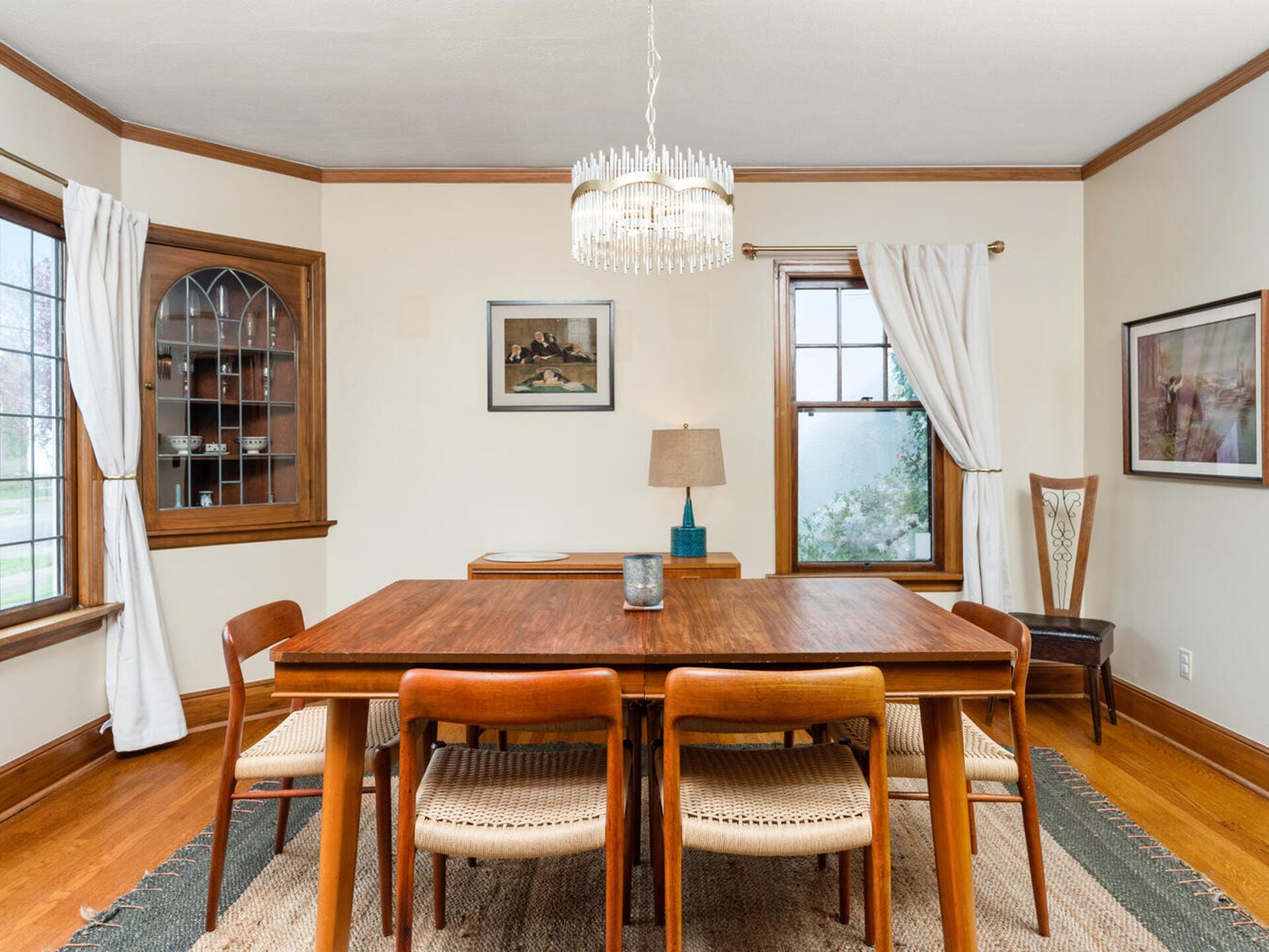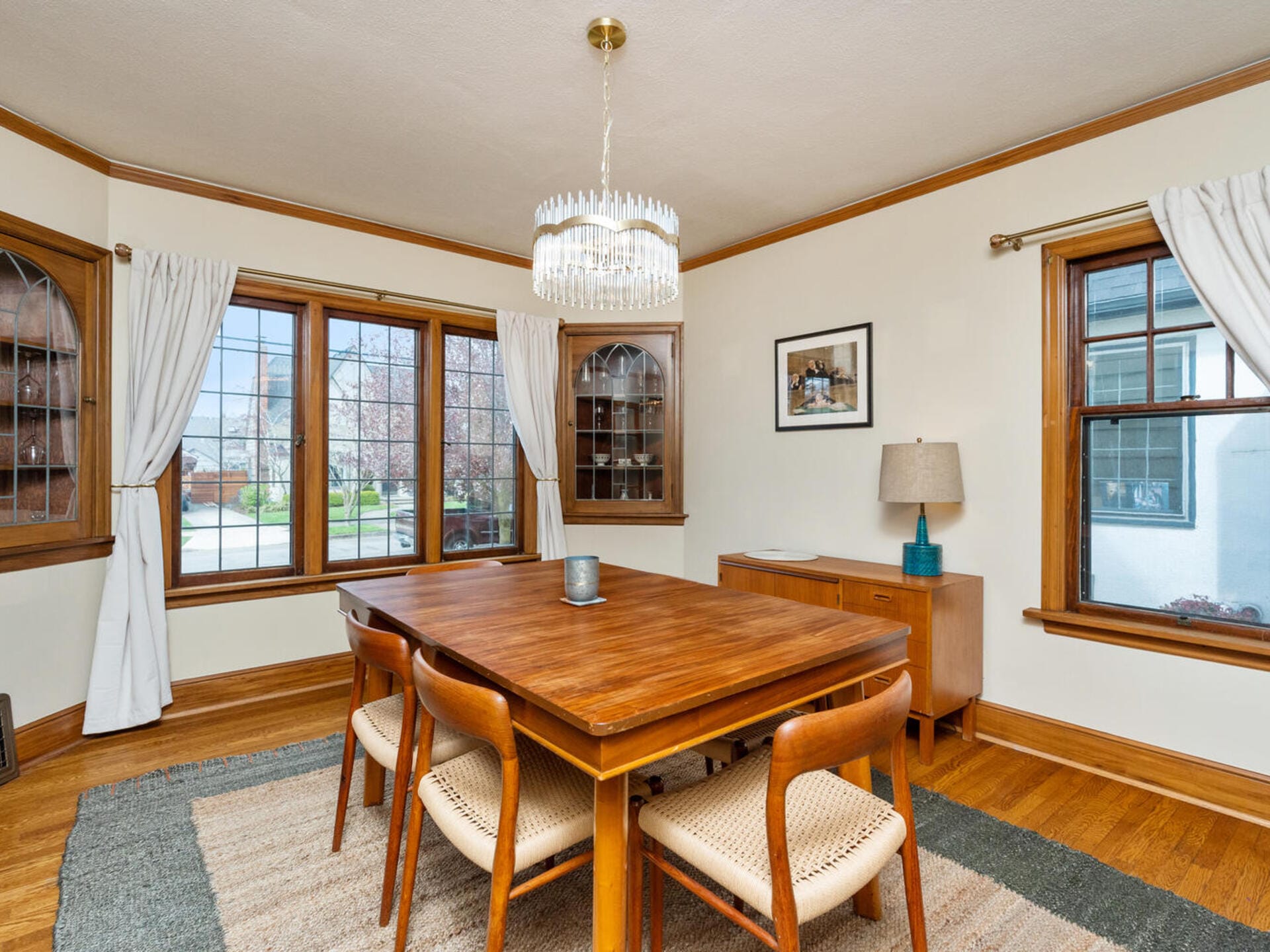 Originally built in 1929, this stunning Alameda English has been carefully updated to create an elegant balance between the home’s original period details and new sought after modern updates. As you approach the home you immediately notice the scale of the yard which is broad and beyond the average northeast home’s width and scale. Stunning grounds coupled with a new etched concrete approach lead you to the home’s classic front door and new porch. Entering the main floor you find yourself in a sunken entry, indicative of English homes from this era and perfectly scaled to allow easy access into the home’s more grand foyer. An expansive living room featuring oak hardwoods, a gorgeous custom fireplace and large leaded glass windows anchor the southwest wing of the main floor while the home’s formal dining room clad in stunning period millwork and oak hardwoods balances the northwest wing. From the dining room you enter the remodeled kitchen which features new flooring, updated hard surfaces, classic white cabinetry and a picture perfect nook with schoolhouse lighting. Just off the nook is a mudroom space with dutch door and the perfect storage alcove. Moving south you will find the home’s gorgeous main floor bathroom and large adjacent bedroom with french doors and a direct perspective of the backyard patio. Moving upstairs you can’t help but swoon at the custom balustrade and newel post which reflect the home’s English heritage. A light filled hallway gives access to a second full bathroom which has been remodeled with classic period tiling and fixtures. Moving beyond the bathroom you find yourself in the incredible master bedroom which has an abundance of room to unwind and countless opportunities to grow the functional space. On the opposite side of the second floor is a second large bedroom with gorgeous hardwoods, designer colors and ample storage. With over 700 square feet across the second floor and more than 1150 on the main floor, the above grade square footage gracefully influences the stunning scale of the home at every elevation. This home doesn’t stop at these two floors however. A third lower level, with over 800 square feet boasts a fourth bedroom, third full bathroom, laundry area and gracious bonus room. Countless designer details at every turn are a testament to the homeowner’s careful stewardship and astute taste which is evident across all three floors. Moving beyond the interior of the home is the backyard which is not only notable for its size, but for its privacy. Established english laurel create a soft barrier to the east while home’s detached garage buffers the property to the north. A hardscape patio with gazebo is yet another update introduced by the current owner who has also ensured the established trees and vines grow and bloom at their best potential throughout the yard. Both inside and out, this four bedroom, 3 bath Alameda home embodies the English architectural movement which is nowhere more notable than on this stretch of 32nd Place just blocks to the schoolyard and Grant Park.