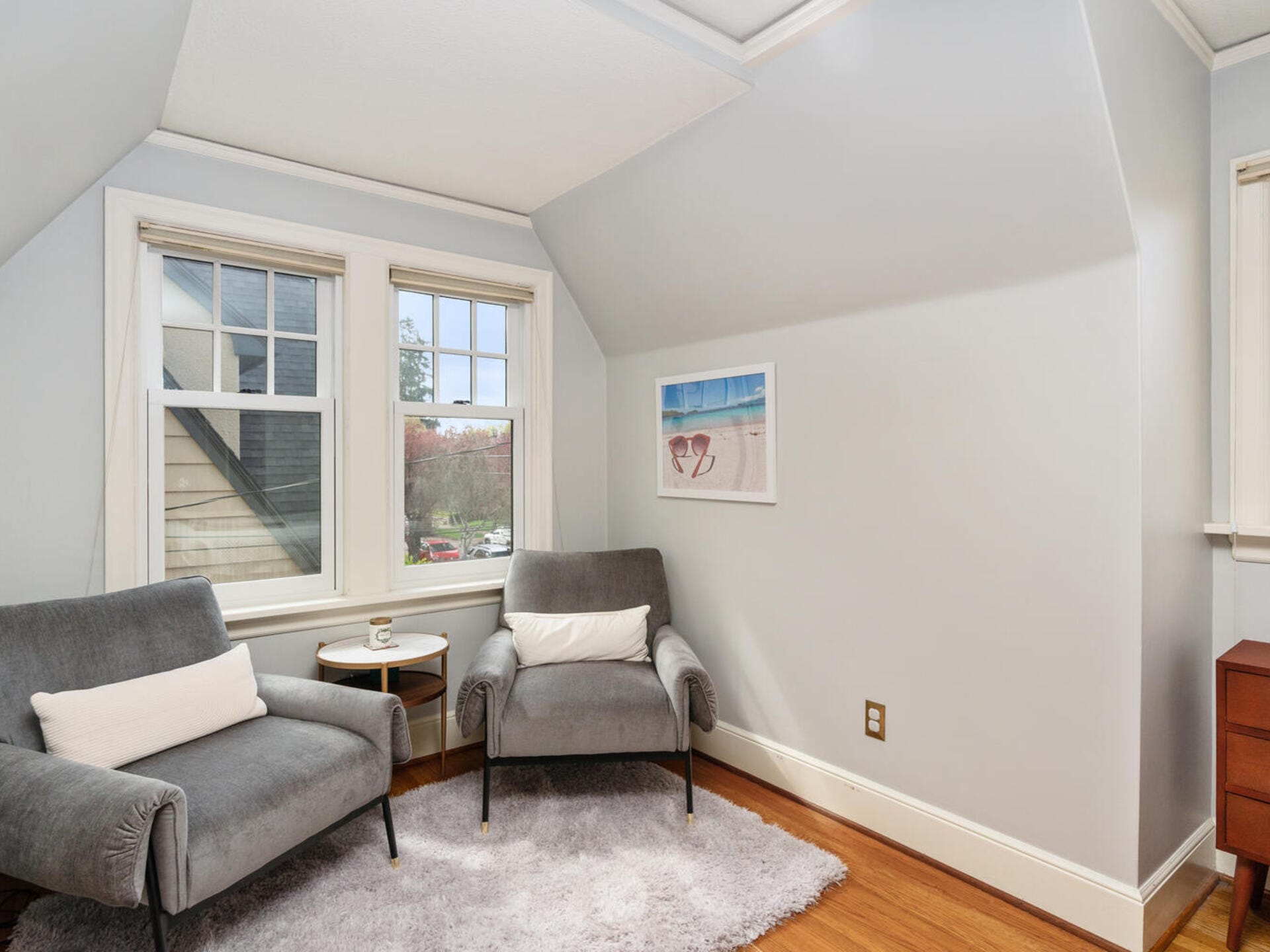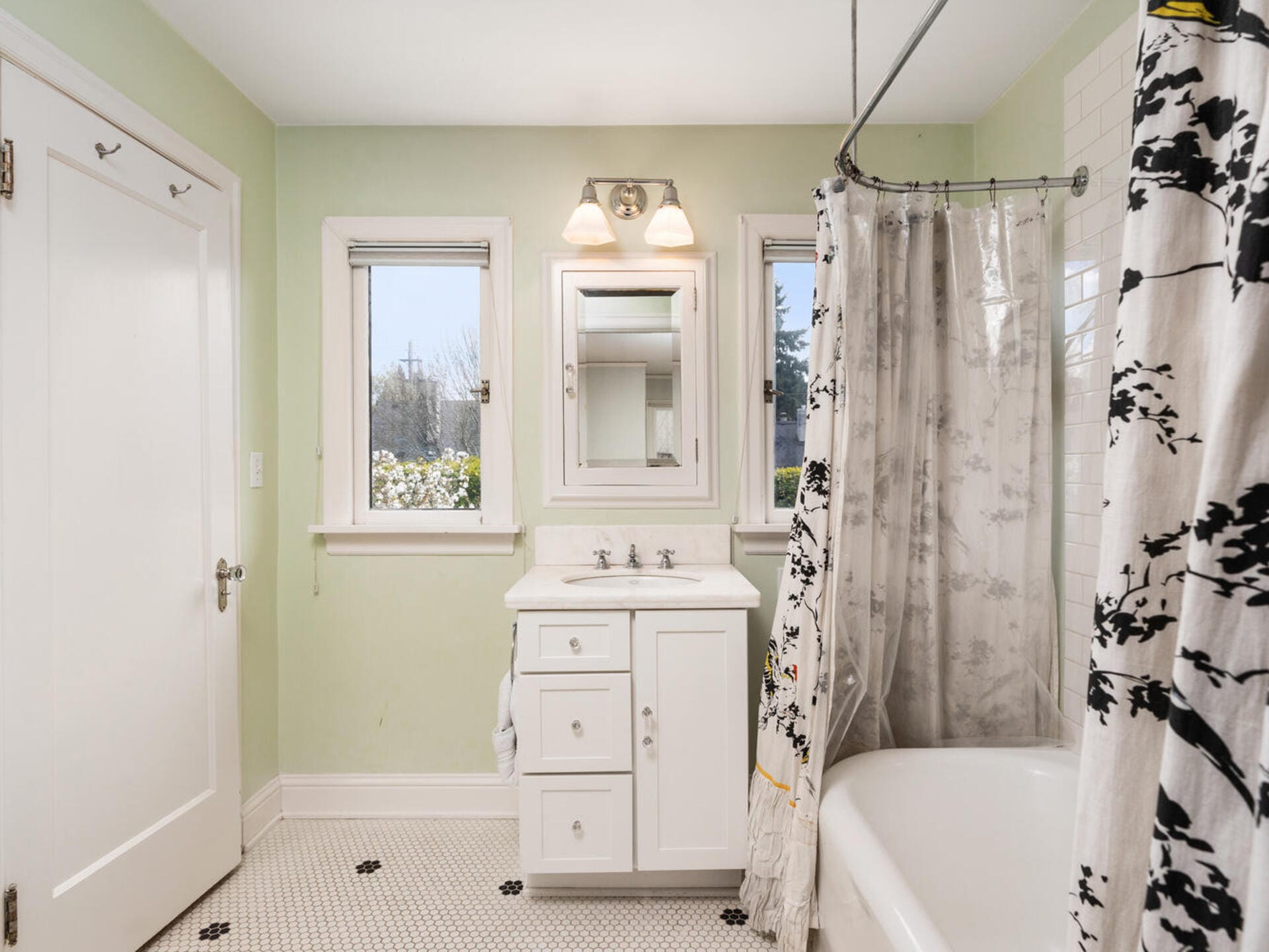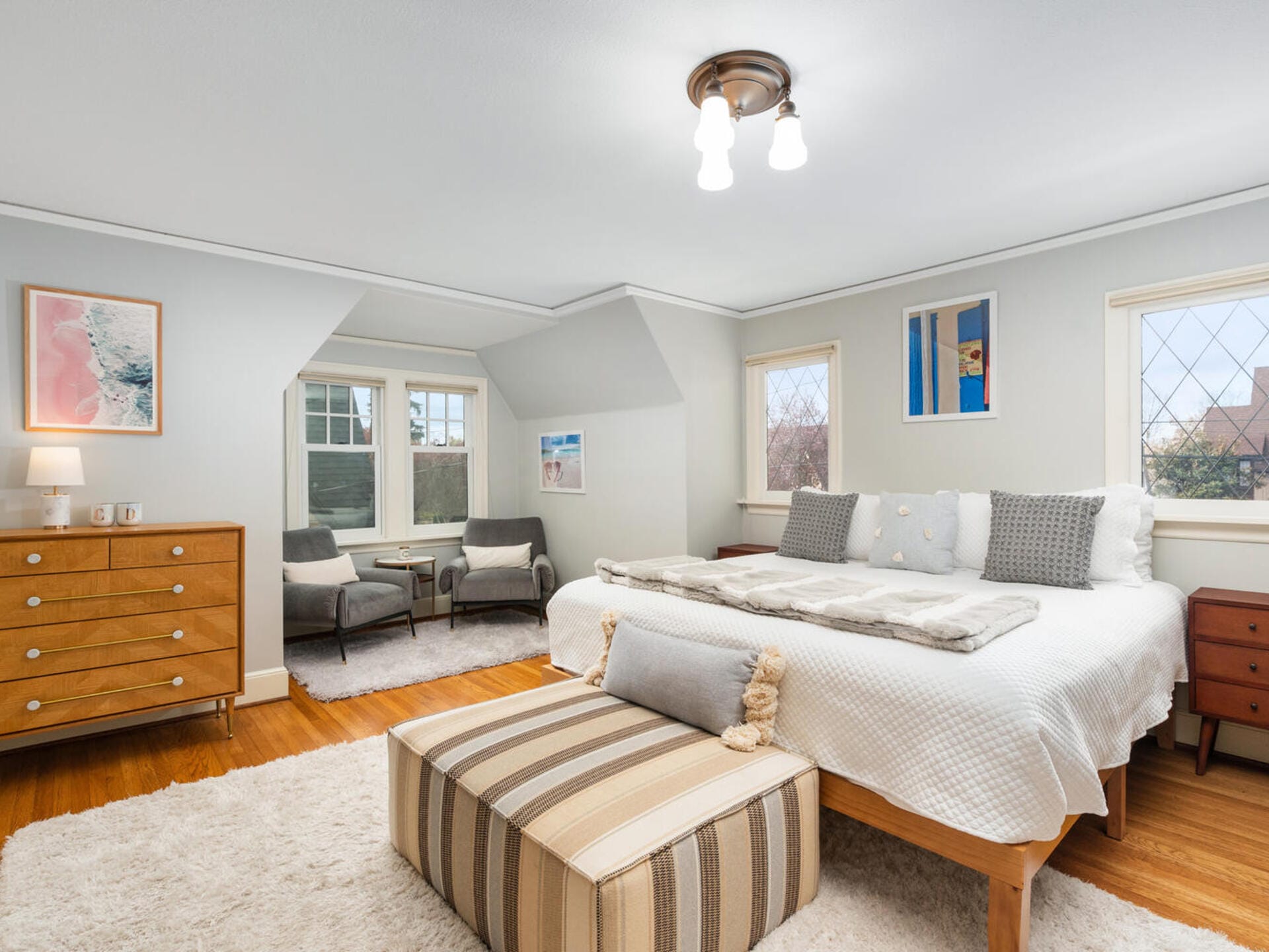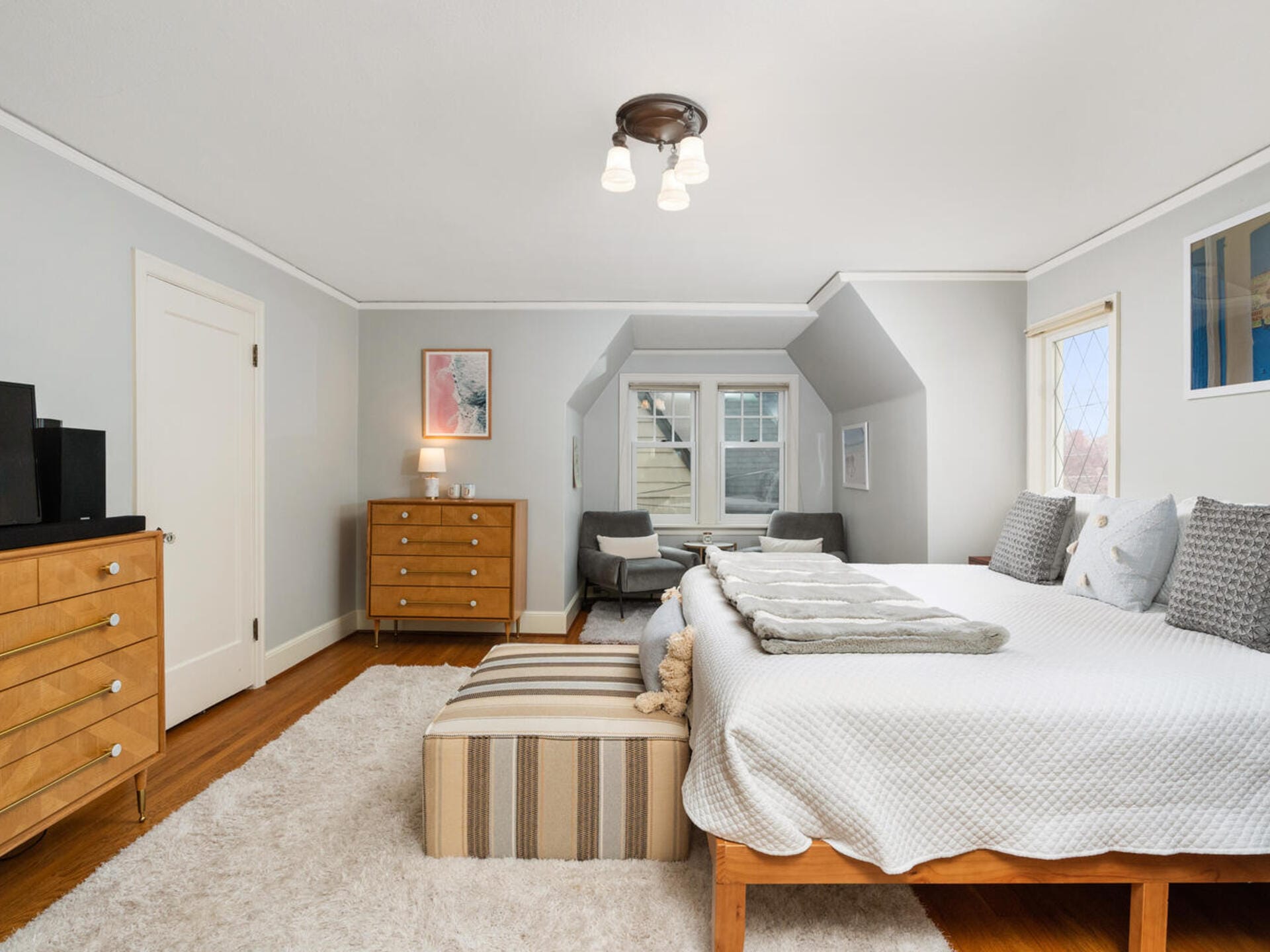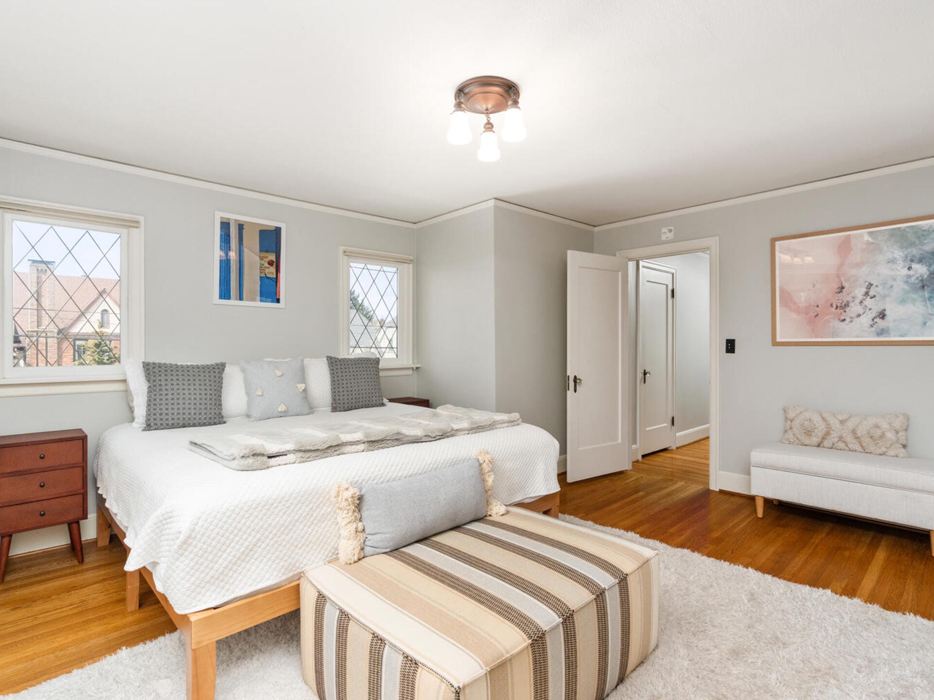 Originally built in 1929, this stunning Alameda English has been carefully updated to create an elegant balance between the home’s original period details and new sought after modern updates. As you approach the home you immediately notice the scale of the yard which is broad and beyond the average northeast home’s width and scale. Stunning grounds coupled with a new etched concrete approach lead you to the home’s classic front door and new porch. Entering the main floor you find yourself in a sunken entry, indicative of English homes from this era and perfectly scaled to allow easy access into the home’s more grand foyer. An expansive living room featuring oak hardwoods, a gorgeous custom fireplace and large leaded glass windows anchor the southwest wing of the main floor while the home’s formal dining room clad in stunning period millwork and oak hardwoods balances the northwest wing. From the dining room you enter the remodeled kitchen which features new flooring, updated hard surfaces, classic white cabinetry and a picture perfect nook with schoolhouse lighting. Just off the nook is a mudroom space with dutch door and the perfect storage alcove. Moving south you will find the home’s gorgeous main floor bathroom and large adjacent bedroom with french doors and a direct perspective of the backyard patio. Moving upstairs you can’t help but swoon at the custom balustrade and newel post which reflect the home’s English heritage. A light filled hallway gives access to a second full bathroom which has been remodeled with classic period tiling and fixtures. Moving beyond the bathroom you find yourself in the incredible master bedroom which has an abundance of room to unwind and countless opportunities to grow the functional space. On the opposite side of the second floor is a second large bedroom with gorgeous hardwoods, designer colors and ample storage. With over 700 square feet across the second floor and more than 1150 on the main floor, the above grade square footage gracefully influences the stunning scale of the home at every elevation. This home doesn’t stop at these two floors however. A third lower level, with over 800 square feet boasts a fourth bedroom, third full bathroom, laundry area and gracious bonus room. Countless designer details at every turn are a testament to the homeowner’s careful stewardship and astute taste which is evident across all three floors. Moving beyond the interior of the home is the backyard which is not only notable for its size, but for its privacy. Established english laurel create a soft barrier to the east while home’s detached garage buffers the property to the north. A hardscape patio with gazebo is yet another update introduced by the current owner who has also ensured the established trees and vines grow and bloom at their best potential throughout the yard. Both inside and out, this four bedroom, 3 bath Alameda home embodies the English architectural movement which is nowhere more notable than on this stretch of 32nd Place just blocks to the schoolyard and Grant Park.