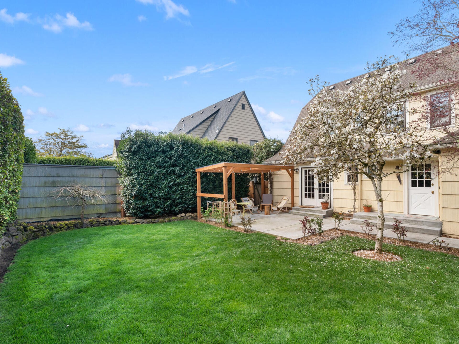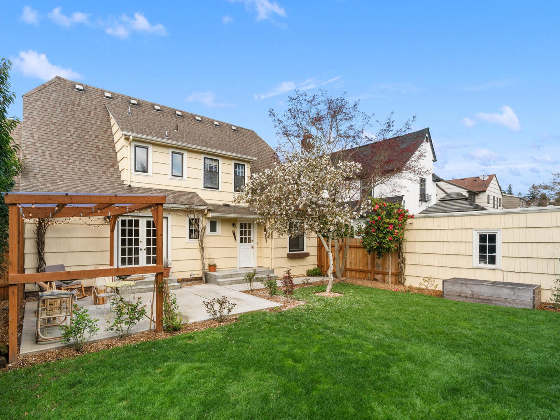 Originally built in 1929, this stunning Alameda English has been carefully updated to create an elegant balance between the home’s original period details and new sought after modern updates. As you approach the home you immediately notice the scale of the yard which is broad and beyond the average northeast home’s width and scale. Stunning grounds coupled with a new etched concrete approach lead you to the home’s classic front door and new porch. Entering the main floor you find yourself in a sunken entry, indicative of English homes from this era and perfectly scaled to allow easy access into the home’s more grand foyer. An expansive living room featuring oak hardwoods, a gorgeous custom fireplace and large leaded glass windows anchor the southwest wing of the main floor while the home’s formal dining room clad in stunning period millwork and oak hardwoods balances the northwest wing. From the dining room you enter the remodeled kitchen which features new flooring, updated hard surfaces, classic white cabinetry and a picture perfect nook with schoolhouse lighting. Just off the nook is a mudroom space with dutch door and the perfect storage alcove. Moving south you will find the home’s gorgeous main floor bathroom and large adjacent bedroom with french doors and a direct perspective of the backyard patio. Moving upstairs you can’t help but swoon at the custom balustrade and newel post which reflect the home’s English heritage. A light filled hallway gives access to a second full bathroom which has been remodeled with classic period tiling and fixtures. Moving beyond the bathroom you find yourself in the incredible master bedroom which has an abundance of room to unwind and countless opportunities to grow the functional space. On the opposite side of the second floor is a second large bedroom with gorgeous hardwoods, designer colors and ample storage. With over 700 square feet across the second floor and more than 1150 on the main floor, the above grade square footage gracefully influences the stunning scale of the home at every elevation. This home doesn’t stop at these two floors however. A third lower level, with over 800 square feet boasts a fourth bedroom, third full bathroom, laundry area and gracious bonus room. Countless designer details at every turn are a testament to the homeowner’s careful stewardship and astute taste which is evident across all three floors. Moving beyond the interior of the home is the backyard which is not only notable for its size, but for its privacy. Established english laurel create a soft barrier to the east while home’s detached garage buffers the property to the north. A hardscape patio with gazebo is yet another update introduced by the current owner who has also ensured the established trees and vines grow and bloom at their best potential throughout the yard. Both inside and out, this four bedroom, 3 bath Alameda home embodies the English architectural movement which is nowhere more notable than on this stretch of 32nd Place just blocks to the schoolyard and Grant Park.