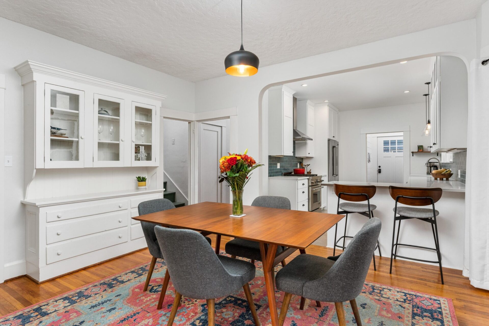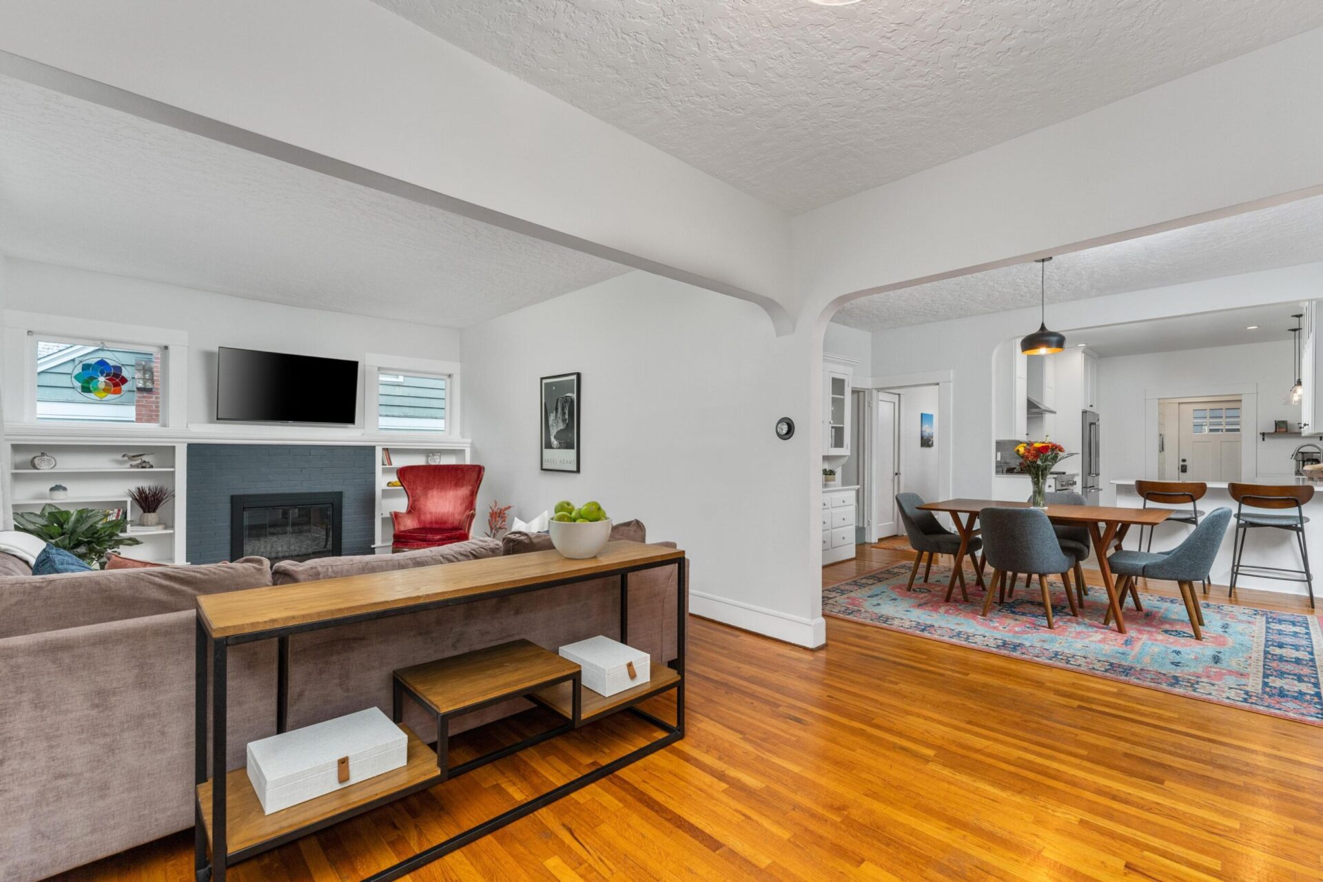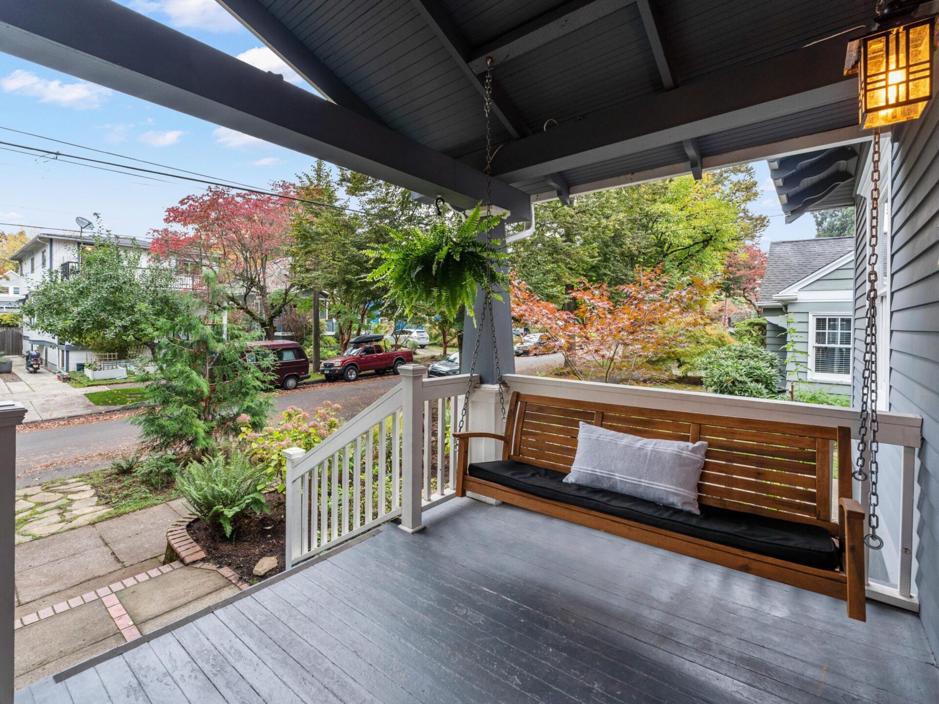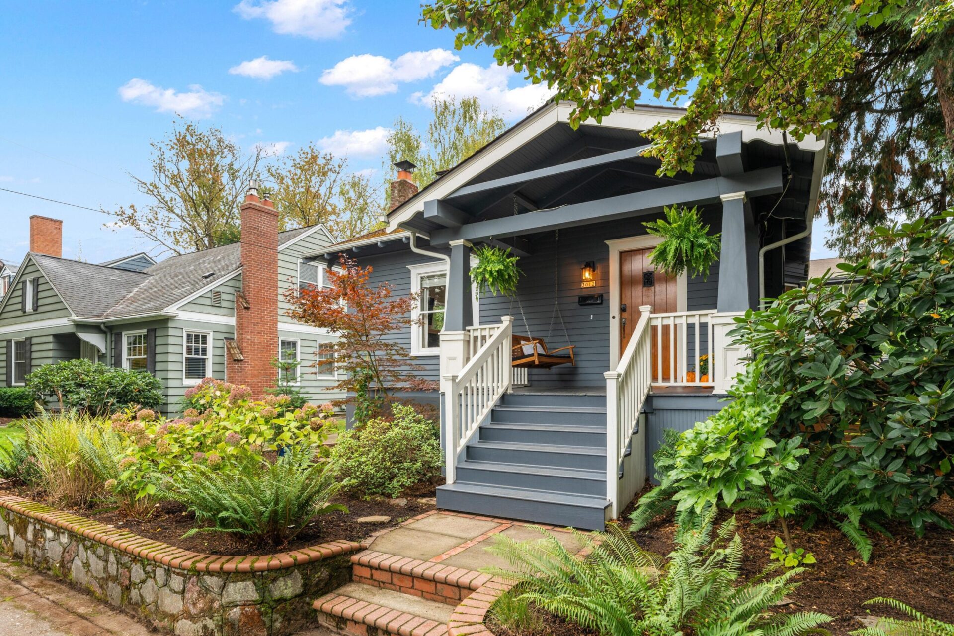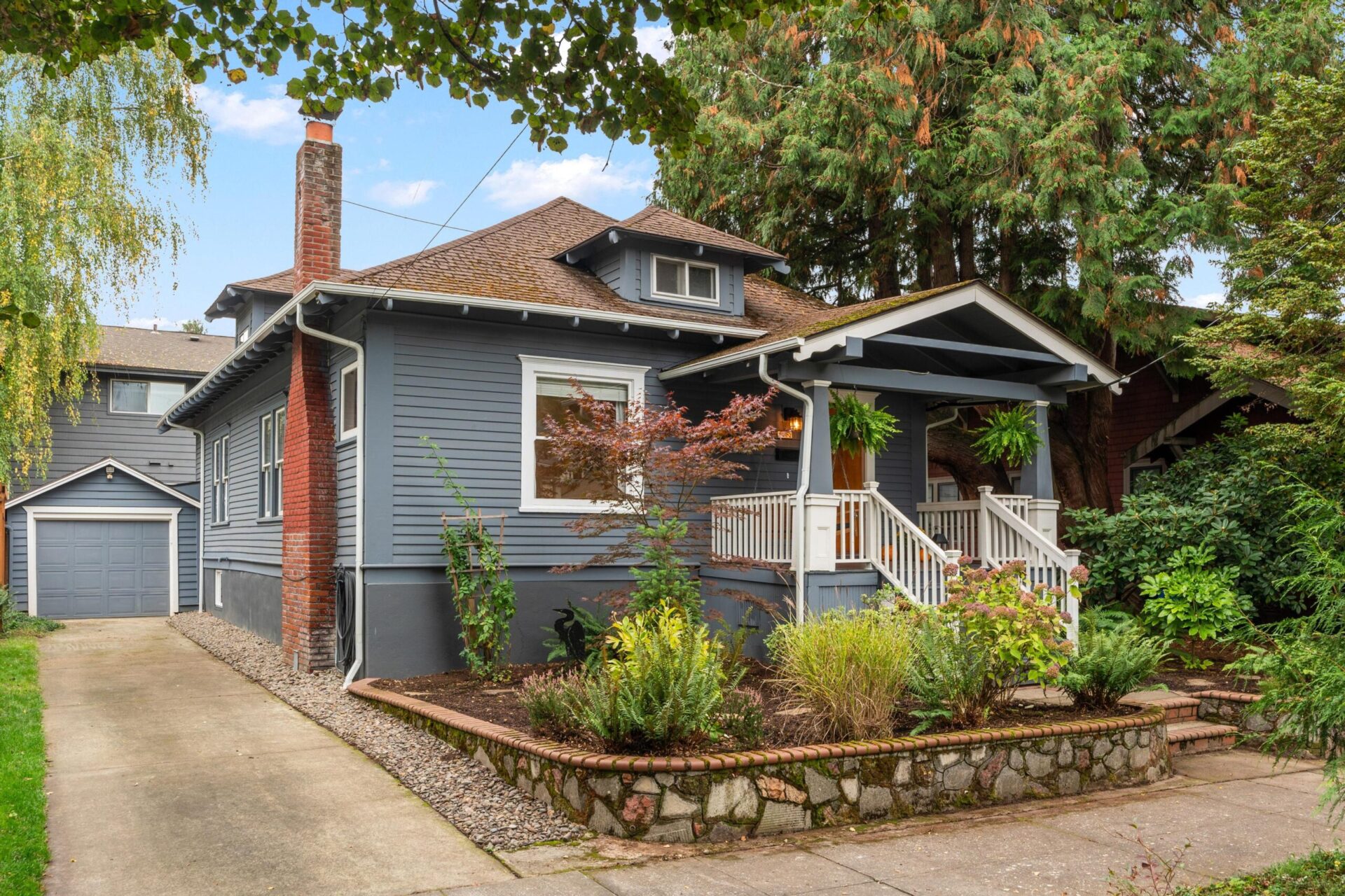 Originally built in 1911, this classic bungalow stands proudly a century later on a picturesque block of NE Hoyt. As you approach the home you will notice its trademark hip roof with classic old PDX style dormer set perfectly above the home's gorgeous elevated porch. Entering the home you find yourself in an open foyer which seamlessly draws you into the living room and adjacent dining room. Featuring gorgeous oak hardwoods and designer colors, the formal spaces also boast high ceilings, classic built-ins, and expansive windows. Just off the dining room is an open concept kitchen that has been completely remodeled to include new quartz counters, custom shaker cabinetry, designer tile and a stunning appliance package. A pantry clad in shiplap siding with built-in shelving sits just off the kitchen and offers a new back door with perfect access to the home's south side deck and backyard. Like the updated kitchen, the homeowners have reinvented the backyard to include a private patio with a custom arbor and barn doors that give access to the home's garage. Rounding out the main level of the home are two bedrooms and two remodeled bathrooms. Each bathroom has been carefully curated to include an incredible finish palette. The en-suite bath features a marble hex tile shower pan and custom field tile surround in addition to a gorgeous vanity, stunning fixtures and beautiful updates at every turn. Like the primary bathroom, the second full bathroom has been carefully remodeled to include stunning tile floors and picture perfect surface treatments from top to bottom.