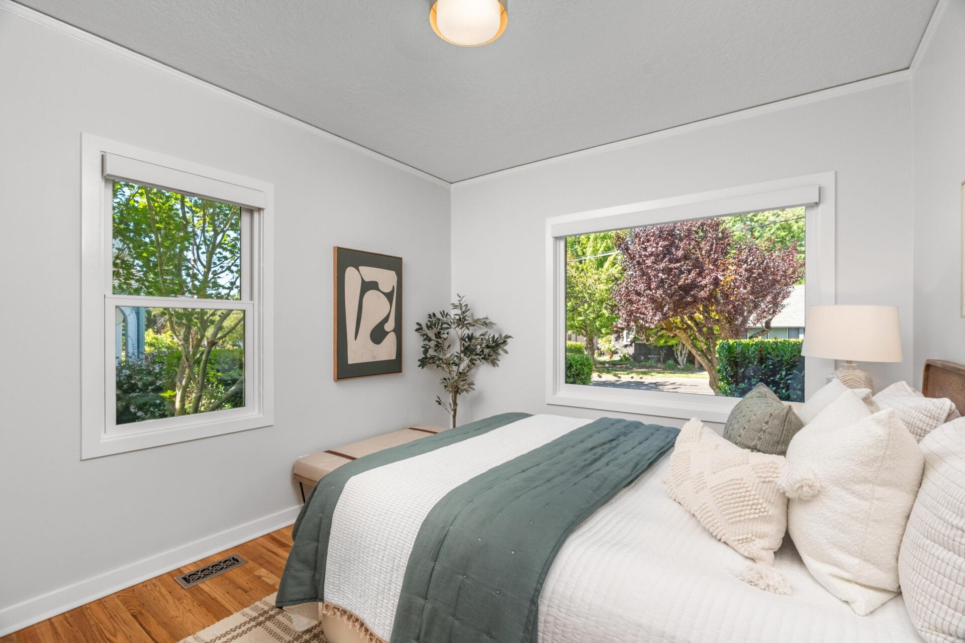 Originally built in 1928, this stunning Alameda bungalow is a testament to 21st century stewardship. Carefully updated inside and out, almost every mechanical and cosmetic detail has been accounted for. As you approach the home you will notice its sweeping main gable coupled with the iconic sundial clad central overhang which creates the home's elegant architectural balance. Upon entering the home you are greeted by an open living room which boasts refinished oak hardwoods, designer colors and new, updated Marvin windows. The south end of the main level is home to two bedrooms and a remodeled bathroom, while the north end features a remodeled kitchen highlighted by a Wolf range, granite counters and a sun drenched nook. Moving upstairs, you will find a gracious third bedroom with gorgeous fir flooring, clever built-ins and a sweet sitting area. Rounding out the main dwelling is the finished basement which features a family room, separate laundry room and a fourth bedroom with an adjacent full bathroom. The home's incredible functionality is reinforced by a new detached garage with a 140 square foot studio and expansive covered patio. Like the stunning interiors of the home, the grounds have been carefully curated to include beautiful plantings and multiple areas to entertain or relax. With an address in the highly sought after Alameda catchment area, just blocks to both Alameda and Beaumont shops, you don't want to miss this turn-key home!