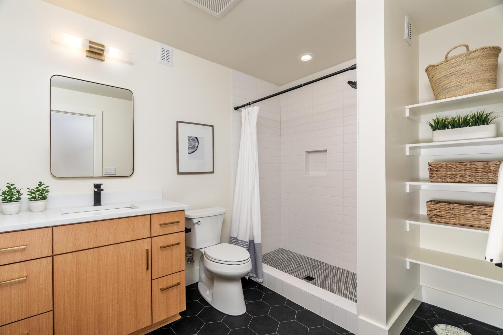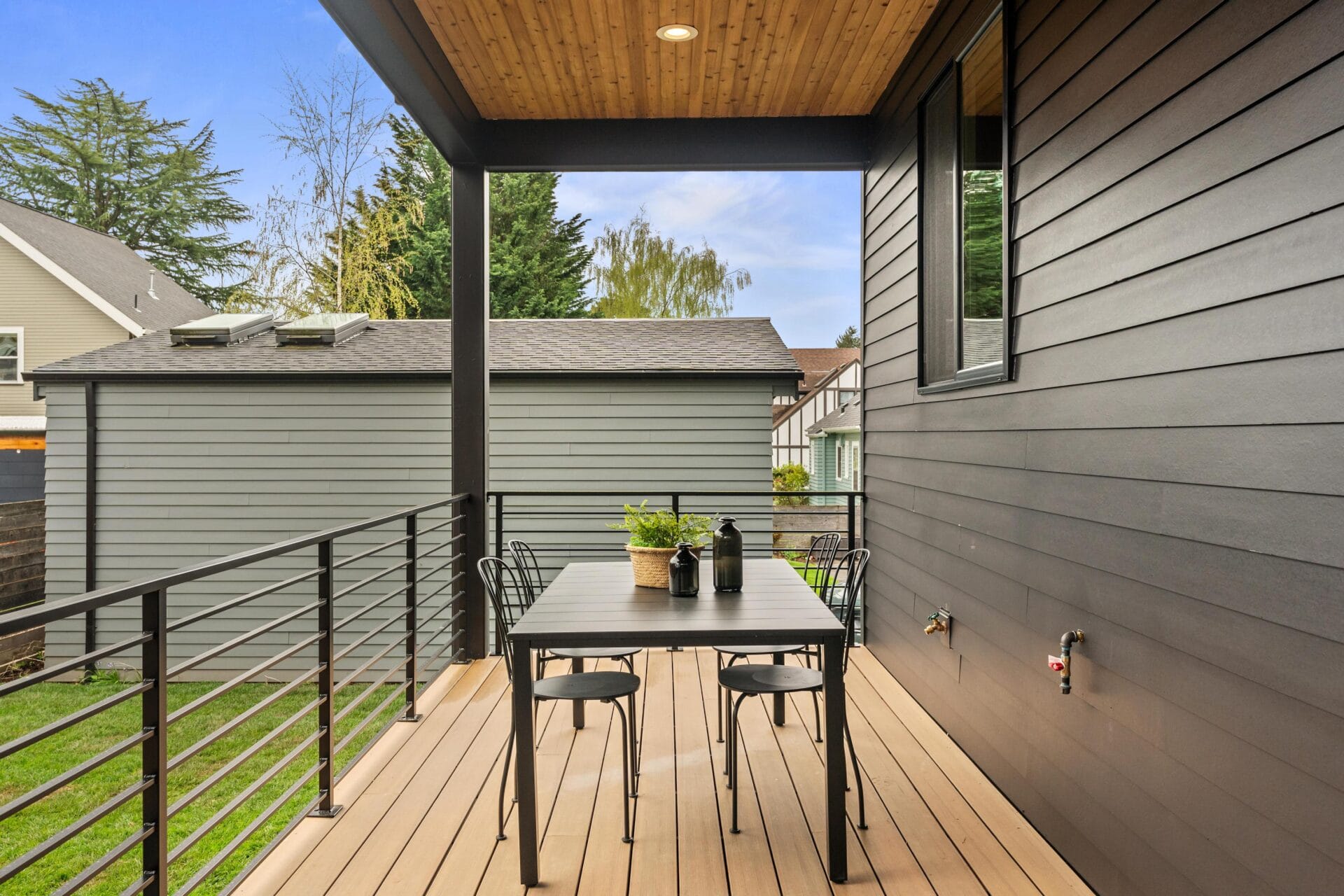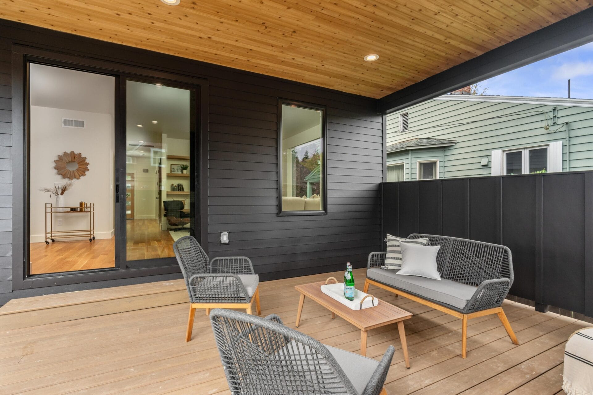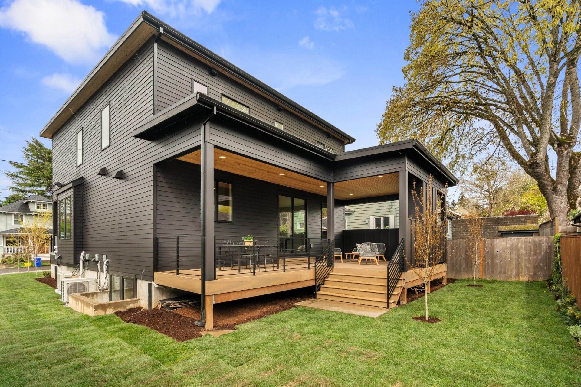 Rhett Butler's latest build! Taking numerous elements from what led to his record breaking homes in Beaumont-Wilshire, Rhett Butler has just finished this new modern home in the heart of Alameda. As you approach the property you will notice how its design capitalizes on changes in the elevations from the lower level to the front door. The tuck under garage is complimented by a separate entrance for the accessory dwelling unit below, giving elegant privacy between the main home and lower level if desired. The elevated concrete porch is complemented by beautiful, vertical tongue and groove cedar siding and an oversized solid wood door which welcomes you into the home. Entering the first floor you find yourself on a level that comprises almost 1400 square feet. The central stairwell is bookended by a large bedroom with full bathroom to the north and an expansive dining room to the south. Anchoring the eastern wing of the floor is an expansive, open great room, kitchen with sand-in-place hardwoods throughout. The kitchen features rift white oak cabinetry, quartz counters and a Fulgor Milano appliance package, while the great room boasts a trademark gas fireplace, built-ins and an oversized slider to the covered back deck. Moving upstairs you will find the rare and highly coveted four bedroom, two bathroom layout complete with an upstairs laundry room. Like the main level, the second floor has oak hardwoods and gorgeous white walls throughout. The primary suite anchors the southeast corner of the second floor and features a large walk-in closet and a gorgeous en-suite bathroom with freestanding tub, double vanity and a grand tile set shower. Three more large bedrooms and a beautiful second bathroom reinforce the utility of this build. With almost 2500 square feet above grade, this home has another 900 plus square feet of finished space in the basement. The second kitchen features the same rift white oak cabinetry as the main kitchen in addition to a gorgeous stainless steel appliance package and quartz counters. Seamlessly opening to the living area, this space can be used as independent living quarters or a family room for the main dwelling. A separate bedroom just to north of the living room in addition to a gracious mud room and gorgeous bathroom make this legal ADU compelling for anyone seeking multigenerational living, great guest quarters or simply more space to entertain! As with the stunning interior finish palette, Rhett Butler has made the outdoor space noteworthy. A gorgeous outdoor gas fireplace complemented by man made decking and a separate covered dining area allow the first owners of this home to embrace all seasons both indoors and out. A great energy score reinforces the merits of new construction and the decisions the builder made with the mechanicals and the envelope. Put simply, you don't want to miss this opportunity to see one of the few new builds in Alameda in recent years with an address just blocks to Alameda Elementary and Grant Park!