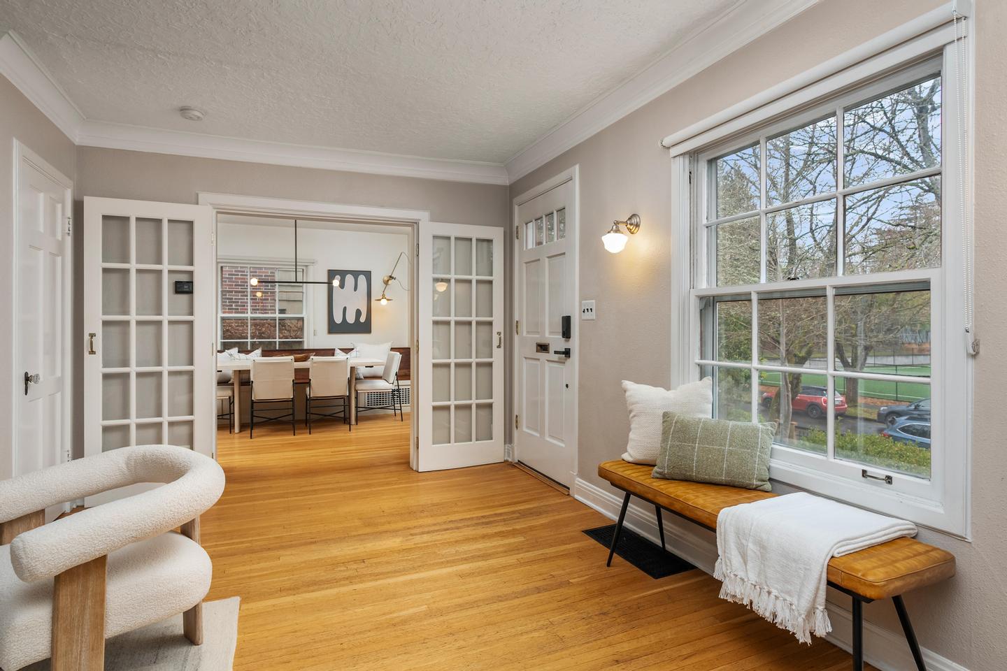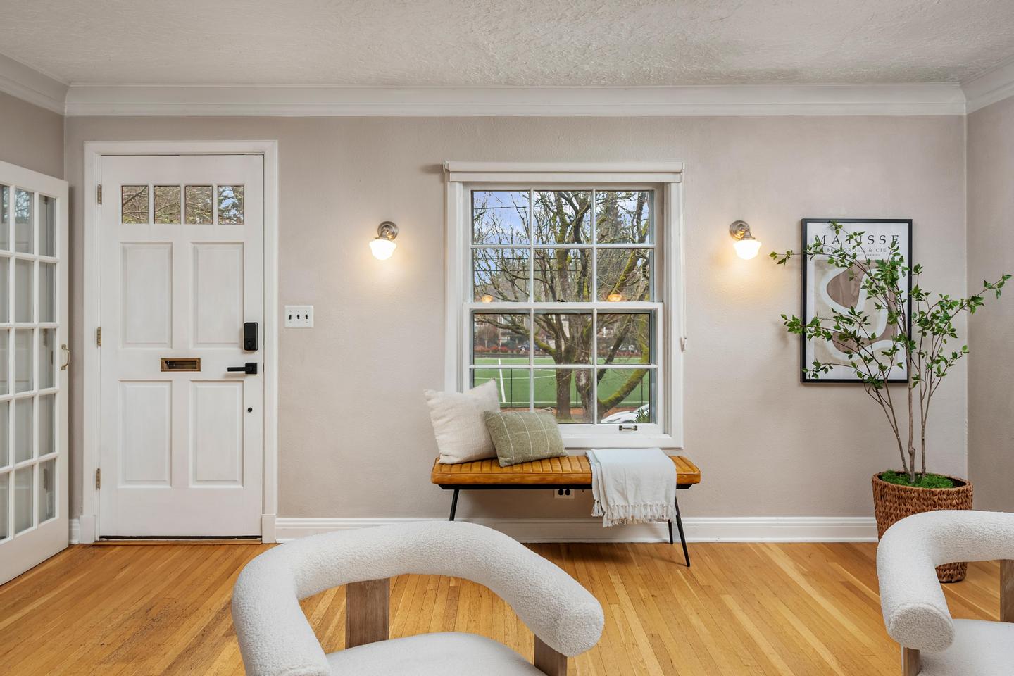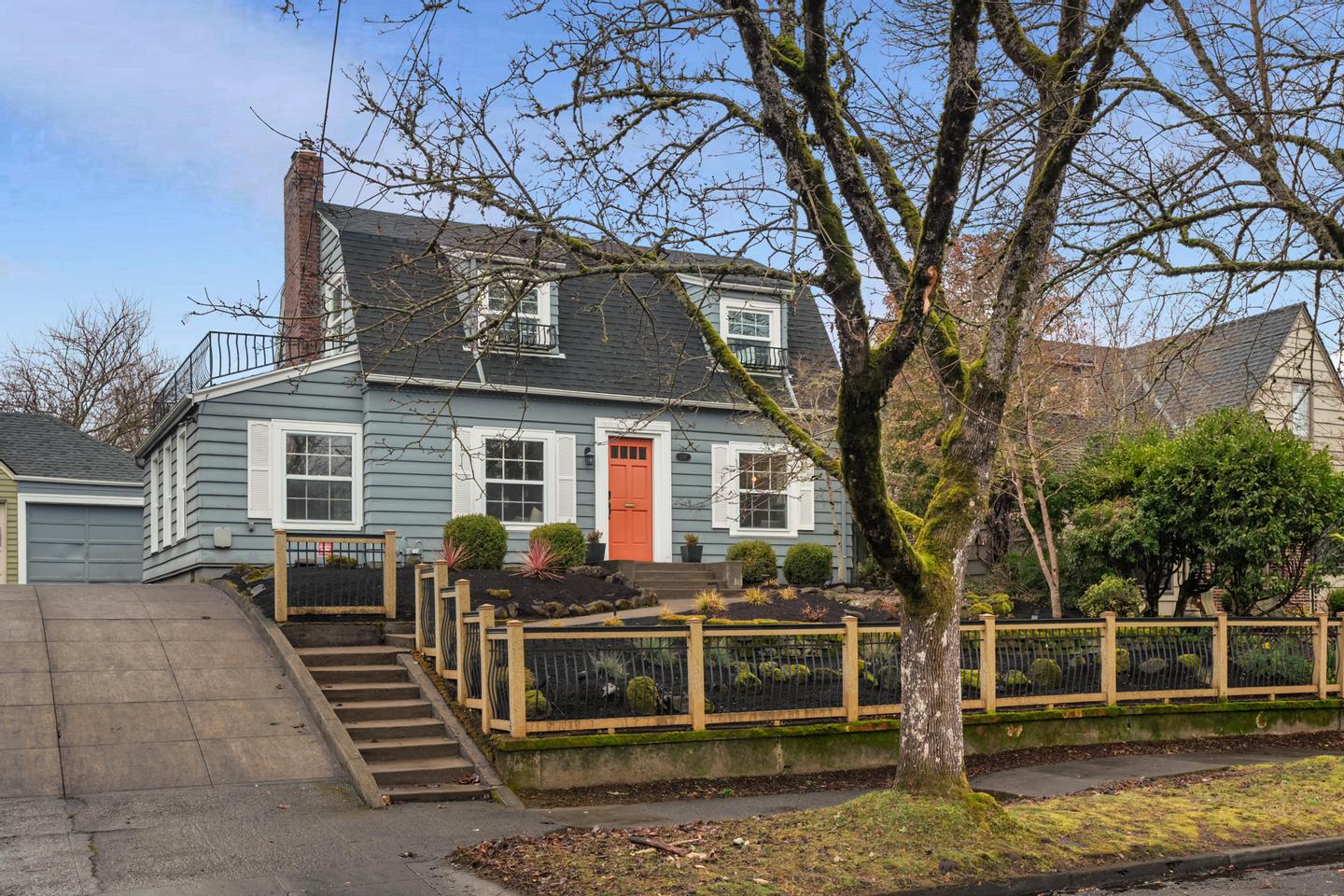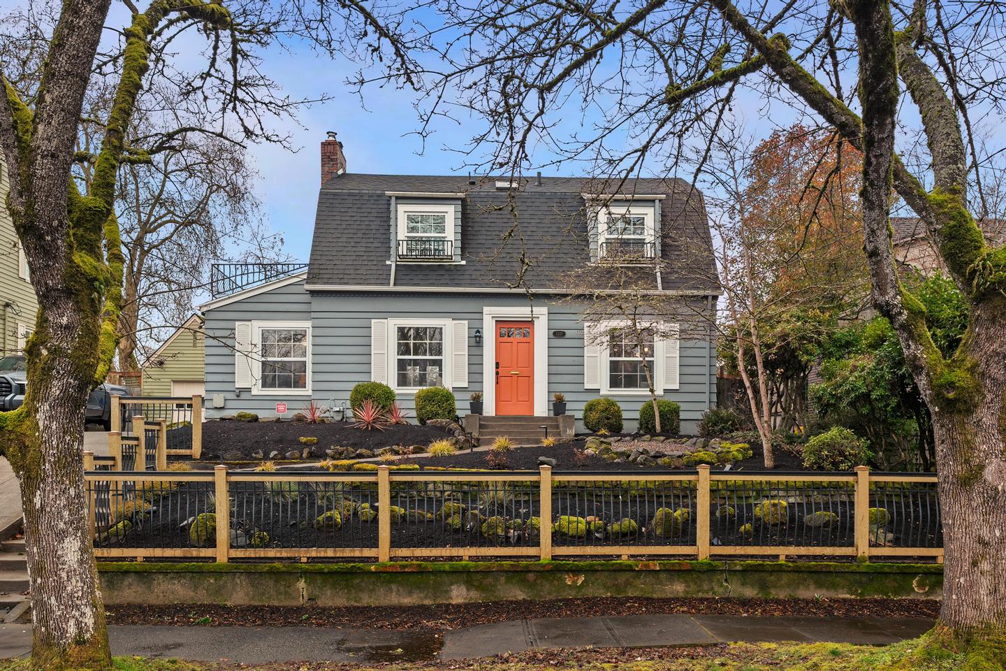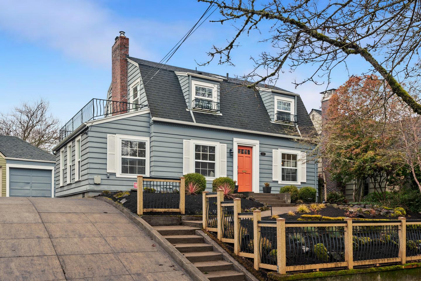 Originally built in 1928, this stunning Alameda cottage sits perfectly on NE 23rd, perched above one of the neighborhood's most beautiful tree lined streets. As you approach the home, its gorgeous color scheme, terraced grounds and classic gambrel roofline welcome you to the property. Entering the home you will immediately notice its expansive spaces and abundance of natural light. The living room features gorgeous oak hardwoods, a stately fireplace and double doors to the backyard. A large den / office to the south offers countless configuration options while a magazine-worthy, six figure kitchen bookends the living room to the north. A custom walnut built-in bench highlights the noteworthy finishes at the east end of the kitchen / dining area, while stunning Carrara marble counters, beautiful shaker inset cabinets, a 36 inch Bertazzoni range and period perfect fixtures round out the remainder of kitchen. French doors give you access to a gorgeous, open gable, covered deck, a sweet half bath sits just off the SW corner and clever cabinet doors in the middle of the kitchen give you access to the finished basement. With over 700 square feet, the lower level boasts a bedroom, updated bathroom, cozy family room and large laundry room with designer built-ins. Moving back upstairs to the second floor you will find three bedrooms and a second full bathroom. The bedrooms feature oak hardwoods, vinyl windows, designer colors and great vantage points at almost every angle. The upstairs bathroom has classic hex tile, a cast iron tub / shower, built-ins and a picture perfect window seat. With over 2500 square feet across three floors, the stewardship applied to the interior is also reflected on the exterior where gorgeous manicured grounds and established plantings highlight both the front and backyards. With an epic location just across from the Madeleine Field and a block to Guilder and Lucca you don't want to miss this turn-key Alameda home!