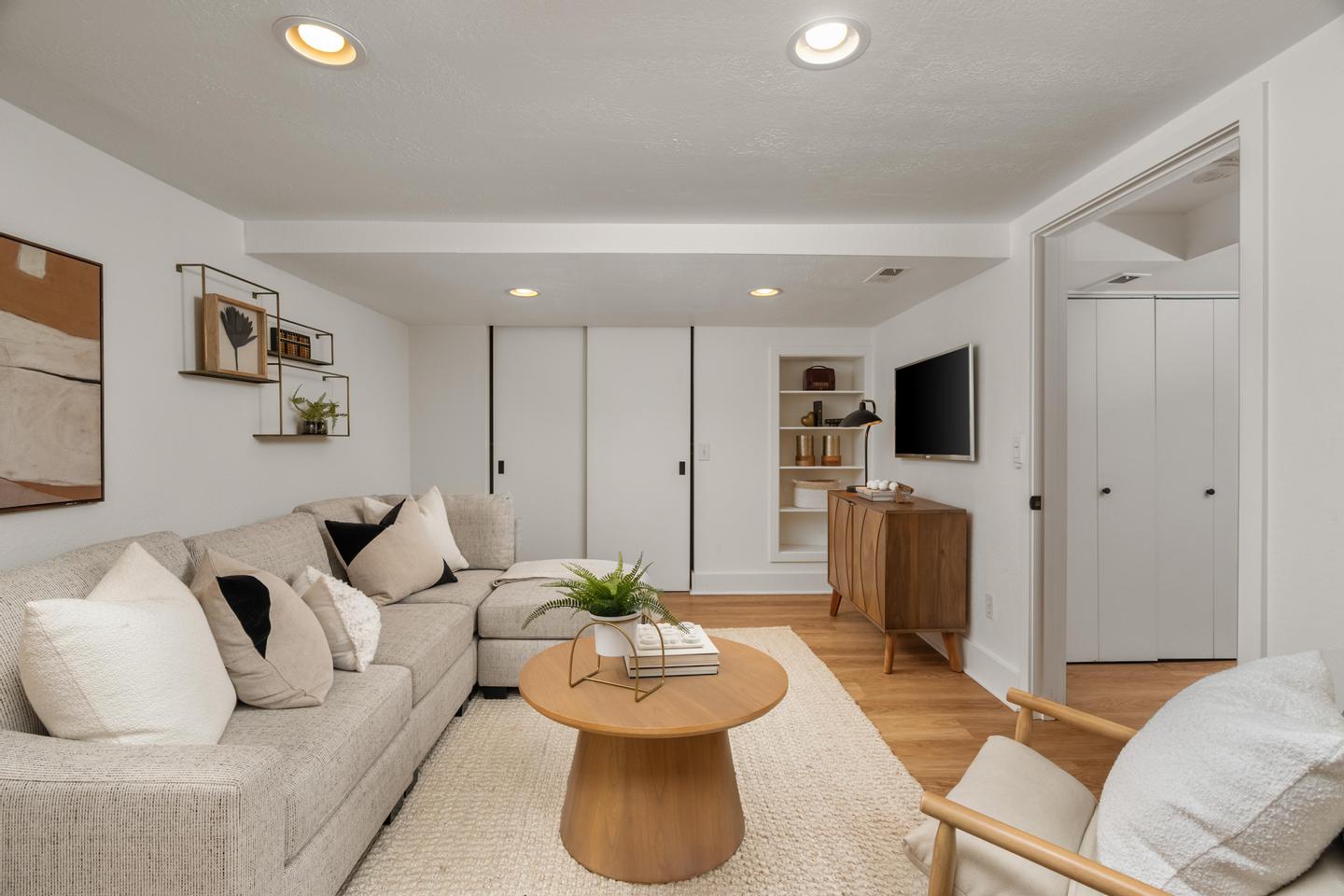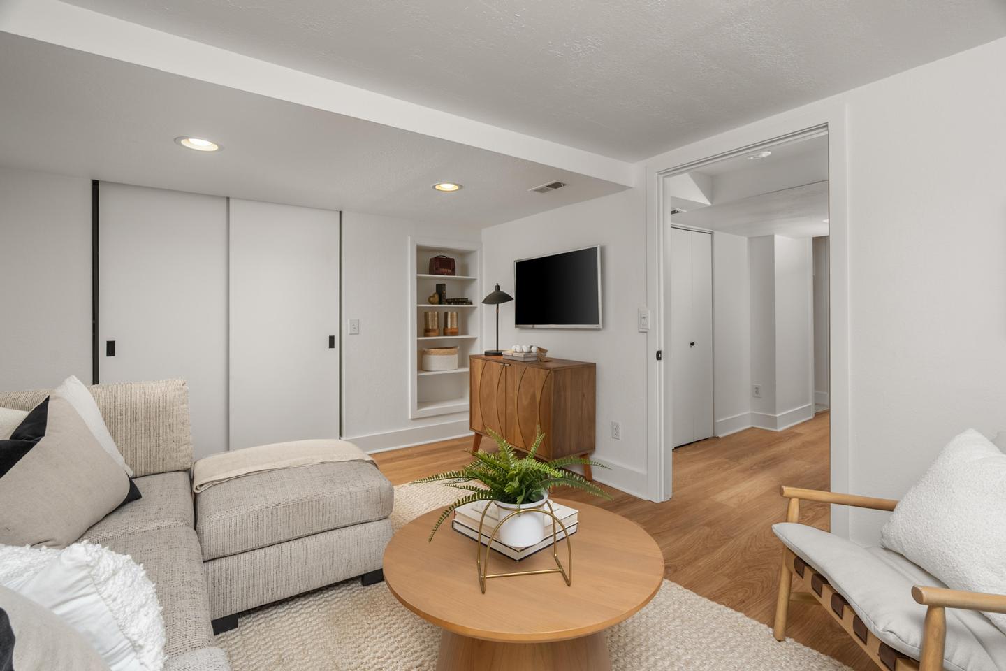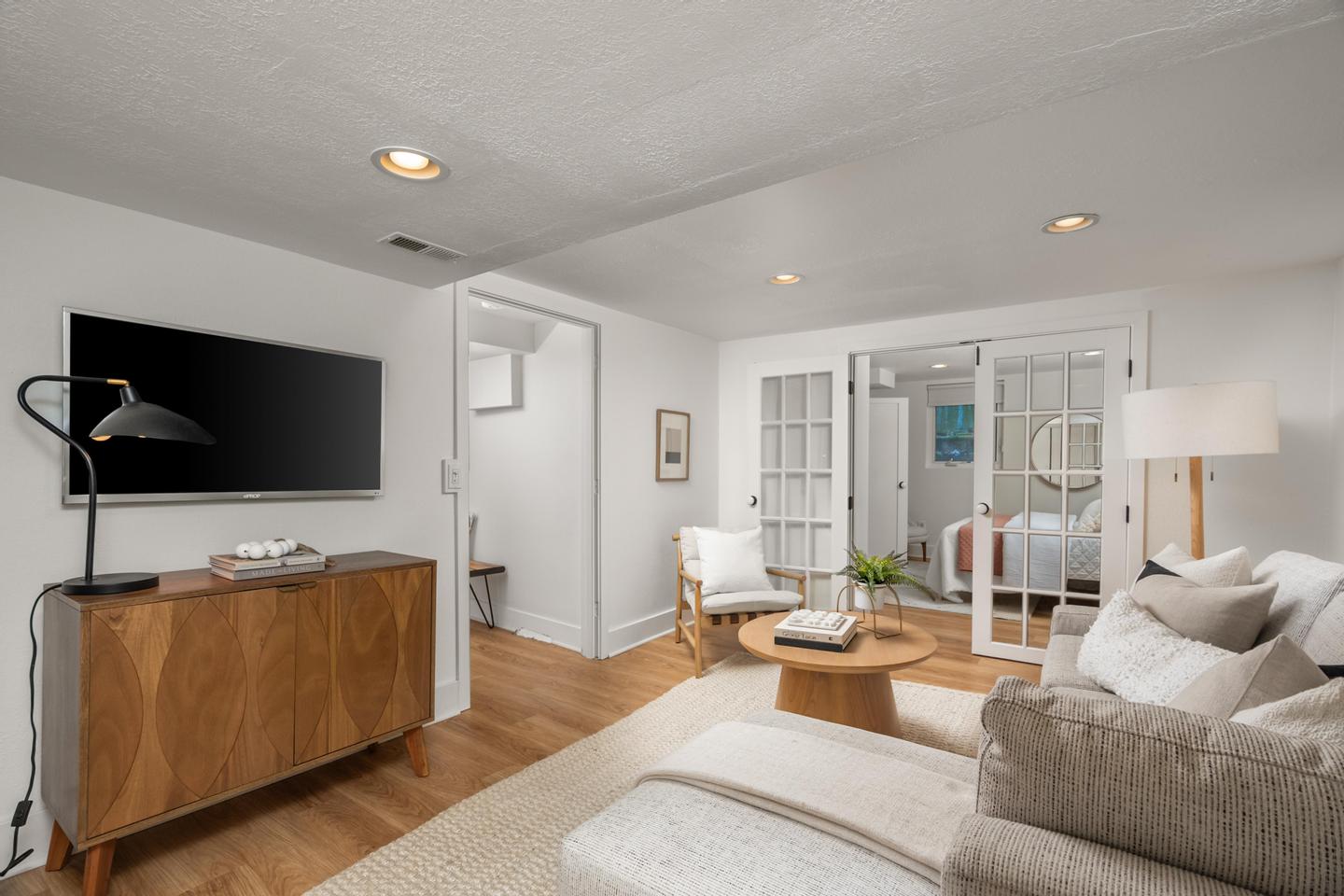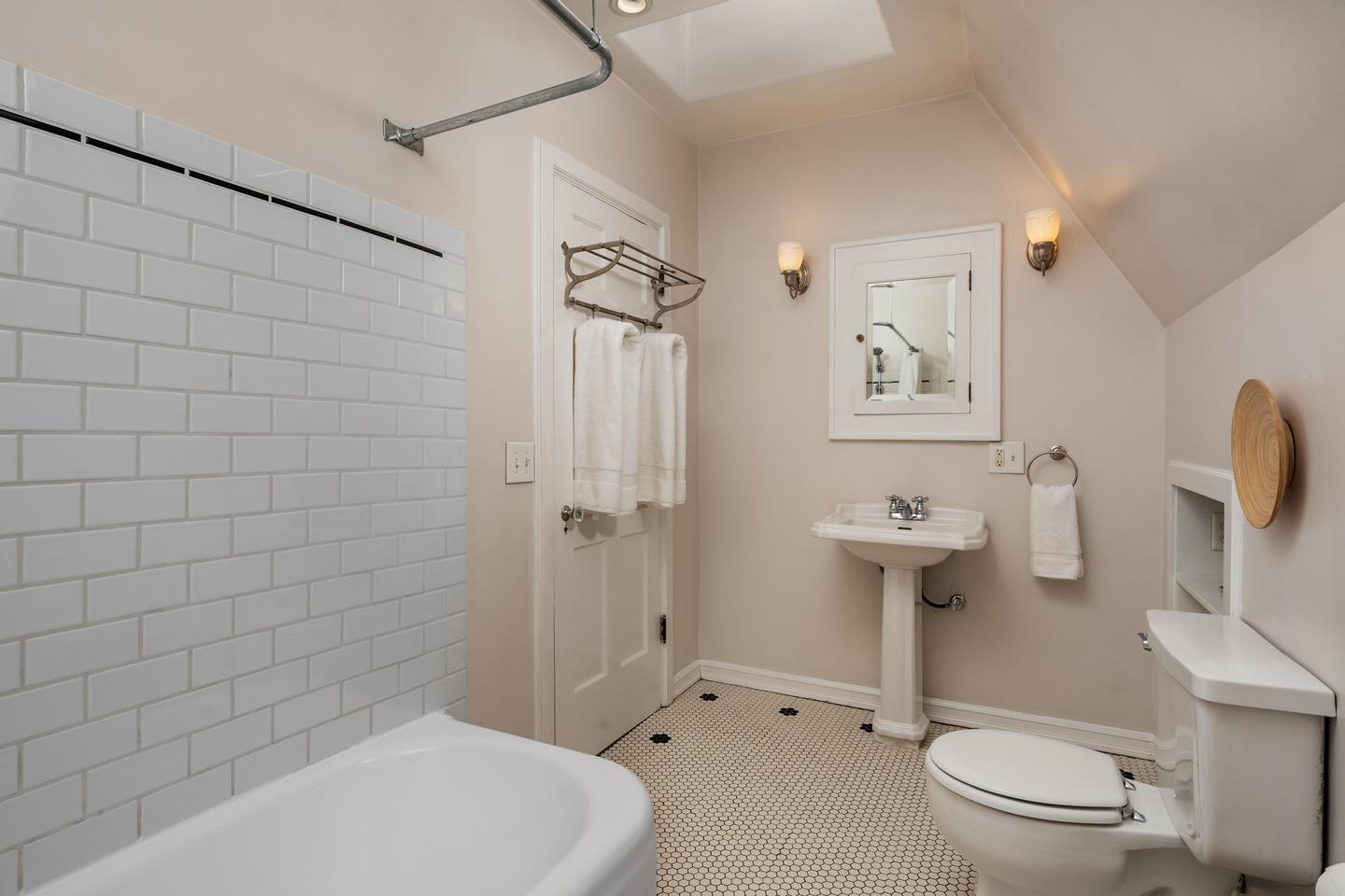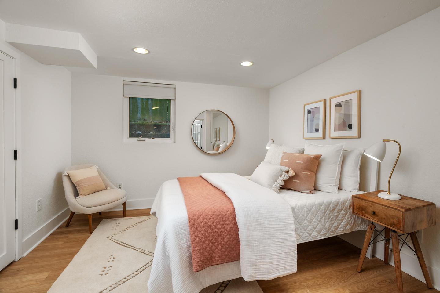 Originally built in 1928, this stunning Alameda cottage sits perfectly on NE 23rd, perched above one of the neighborhood's most beautiful tree lined streets. As you approach the home, its gorgeous color scheme, terraced grounds and classic gambrel roofline welcome you to the property. Entering the home you will immediately notice its expansive spaces and abundance of natural light. The living room features gorgeous oak hardwoods, a stately fireplace and double doors to the backyard. A large den / office to the south offers countless configuration options while a magazine-worthy, six figure kitchen bookends the living room to the north. A custom walnut built-in bench highlights the noteworthy finishes at the east end of the kitchen / dining area, while stunning Carrara marble counters, beautiful shaker inset cabinets, a 36 inch Bertazzoni range and period perfect fixtures round out the remainder of kitchen. French doors give you access to a gorgeous, open gable, covered deck, a sweet half bath sits just off the SW corner and clever cabinet doors in the middle of the kitchen give you access to the finished basement. With over 700 square feet, the lower level boasts a bedroom, updated bathroom, cozy family room and large laundry room with designer built-ins. Moving back upstairs to the second floor you will find three bedrooms and a second full bathroom. The bedrooms feature oak hardwoods, vinyl windows, designer colors and great vantage points at almost every angle. The upstairs bathroom has classic hex tile, a cast iron tub / shower, built-ins and a picture perfect window seat. With over 2500 square feet across three floors, the stewardship applied to the interior is also reflected on the exterior where gorgeous manicured grounds and established plantings highlight both the front and backyards. With an epic location just across from the Madeleine Field and a block to Guilder and Lucca you don't want to miss this turn-key Alameda home!