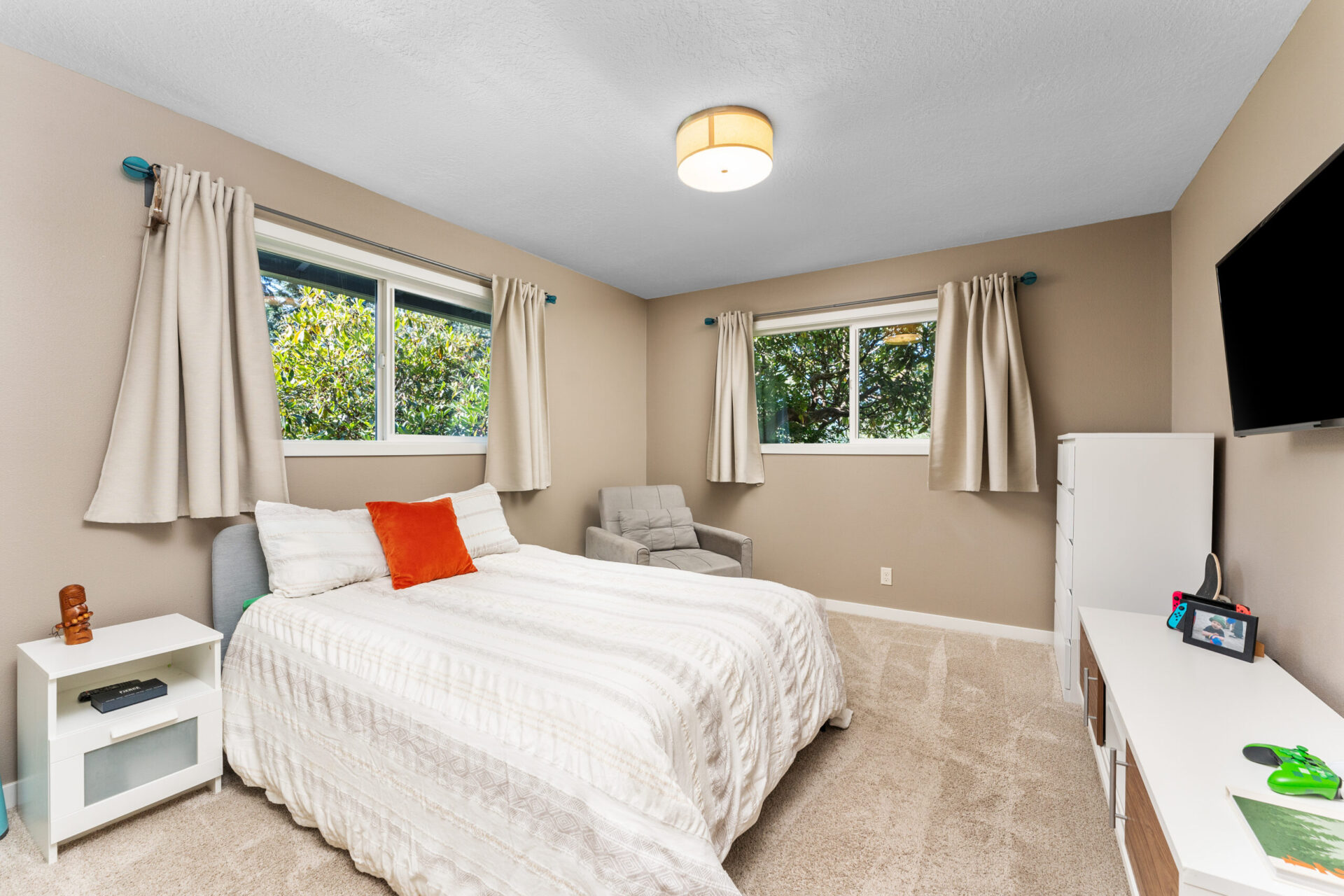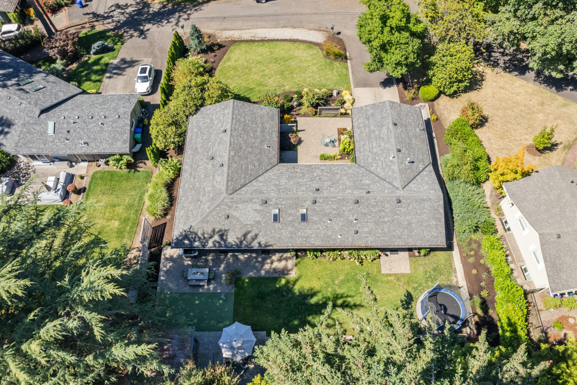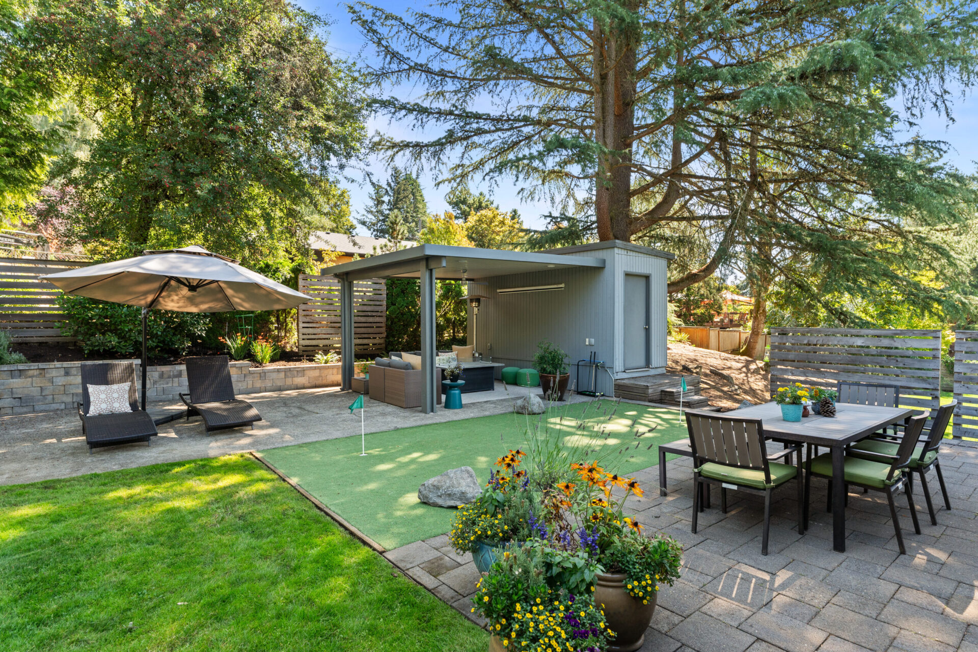 Built in 1965, this stunning mid-century ranch stands today as a testament to the gorgeous, high-functioning simplicity that has made this architectural movement so popular. As you approach the home you will notice its amazing street presence as the front elevation welcomes you up and into the main courtyard. The perfect hardscape, water feature and plantings make you immediately feel the unique presence this home creates. Entering the front door you will find yourself in the incredible open concept kitchen-great room. Expansive sliders stand in solider format at the east side of the spaces and balance the expansive windows at the entry. The kitchen has been carefully remodeled with custom, stain grade cabinets, quartz countertops, high end appliances and a grand island. Moving seamlessly into the dining room and then into the living room/great room space you can't help but remark about the awesome flow pattern from interior space to interior space but also outside to the magazine-worthy backyard just beyond the sliding doors. The flow patterns from inside to outside are among the best you will see and reinforce the incredible utility this home has. Bookending the open, communal spaces are three bedrooms at the south end of the home and a primary suite and laundry area to the north. The south wing boasts the perfect office / non-conforming fourth bedroom in addition to two additional large bedrooms. Balancing this wing out is a stunning, remodeled bathroom with designer tile, custom vanity and classic fixtures. The north end of the home has been completely reinvented to include a remodeled primary suite which features designer finishes at every turn in addition to a double vanity, tile set shower and gracious walk-in closet. Full glass sliders open to the backyard infusing more natural light into the room and allowing that ideal flow from inside to outside. A mud room / laundry area sits perfectly adjacent to the primary suite along with multiple deep closets which afford countless storage options in addition to the pantry. The reinvented, attached garage stands prominently at the north end of the floor plan and like the interior spaces of the home, serves as a testament to the care and detail the current stewards have applied to each surface. Moving outside to the broad, expansive backyard you will find a covered patio perfect for taking in a movie, book or entertaining friends. This space also includes a shed perfect for storing all your summer toys and outdoor furniture. A putting green, second patio area and a gorgeous lawn with an elevated landscape round out the backyard which would make even Sunset magazine proud. With an address at the end of one of Bridlemile's most idyllic cul-de-sacs, just a mile from the school and Hamilton Park you simply don't want to miss this incredible property.