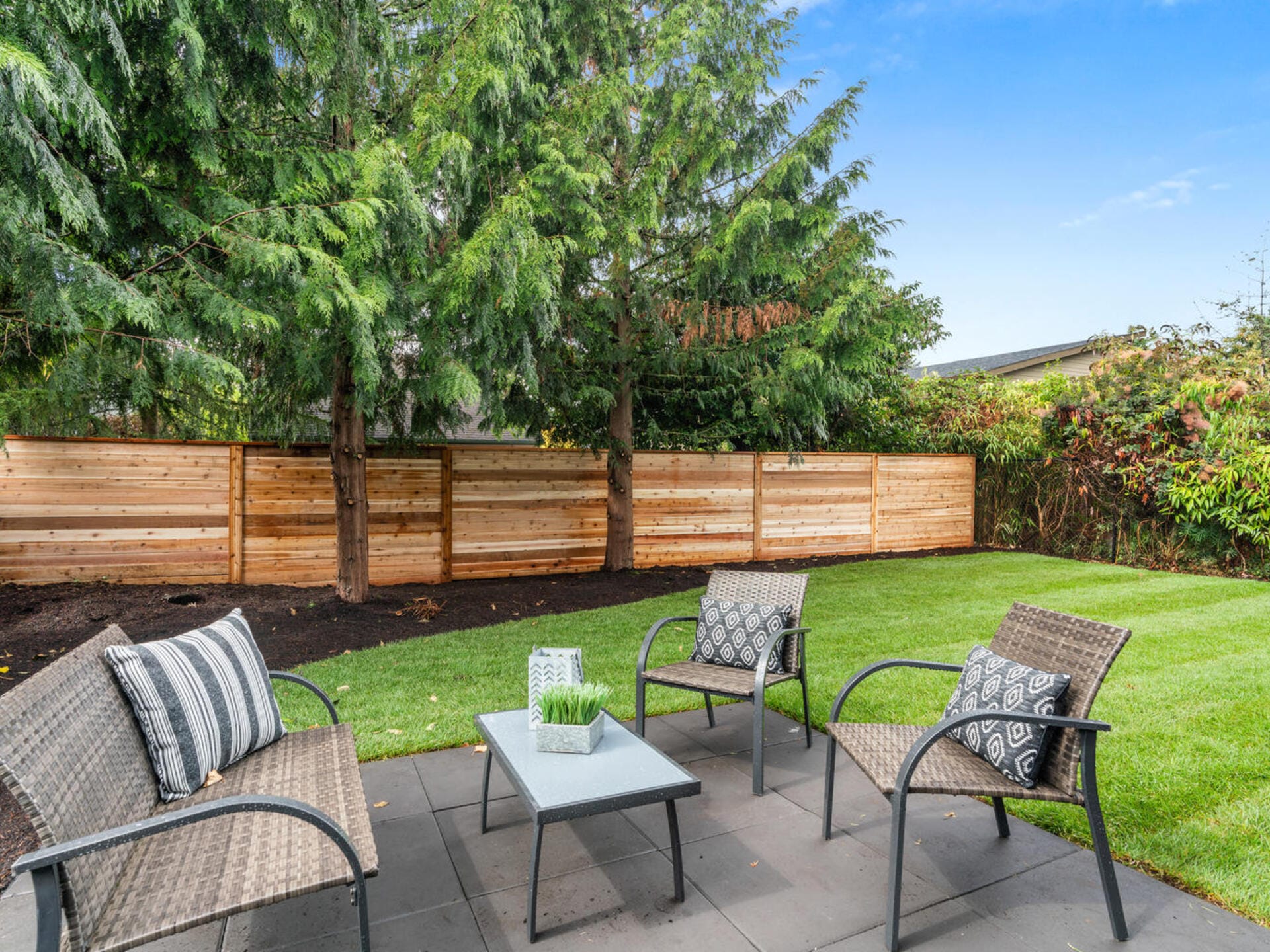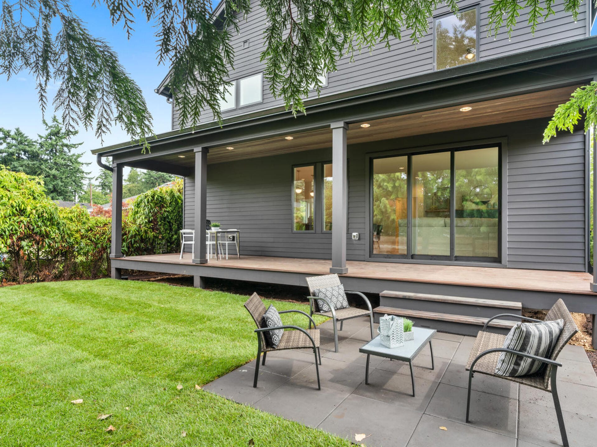 The main floor boasts an open living room and dining room with tall ceilings, tons of natural light and a main floor study or guest room tucked nicely in the SE corner. You can enter the great room / kitchen via a central hallway or through the open dining room where oak hardwoods are paired with rift white oak cabinetry and classic surface treatments. Cedar and Moss lighting, built-in bookshelves, and Ann Sacks swiss cross tiling on the fireplace speak to some of the high end finishes that compliment one of the finest kitchen / great rooms you will see on the Eastside. Rounding out the main floor is a full bathroom, which paired with the main floor office / bedroom makes a compelling statement, complimented by assets like the covered back porch which you reach through an expansive three panel door.