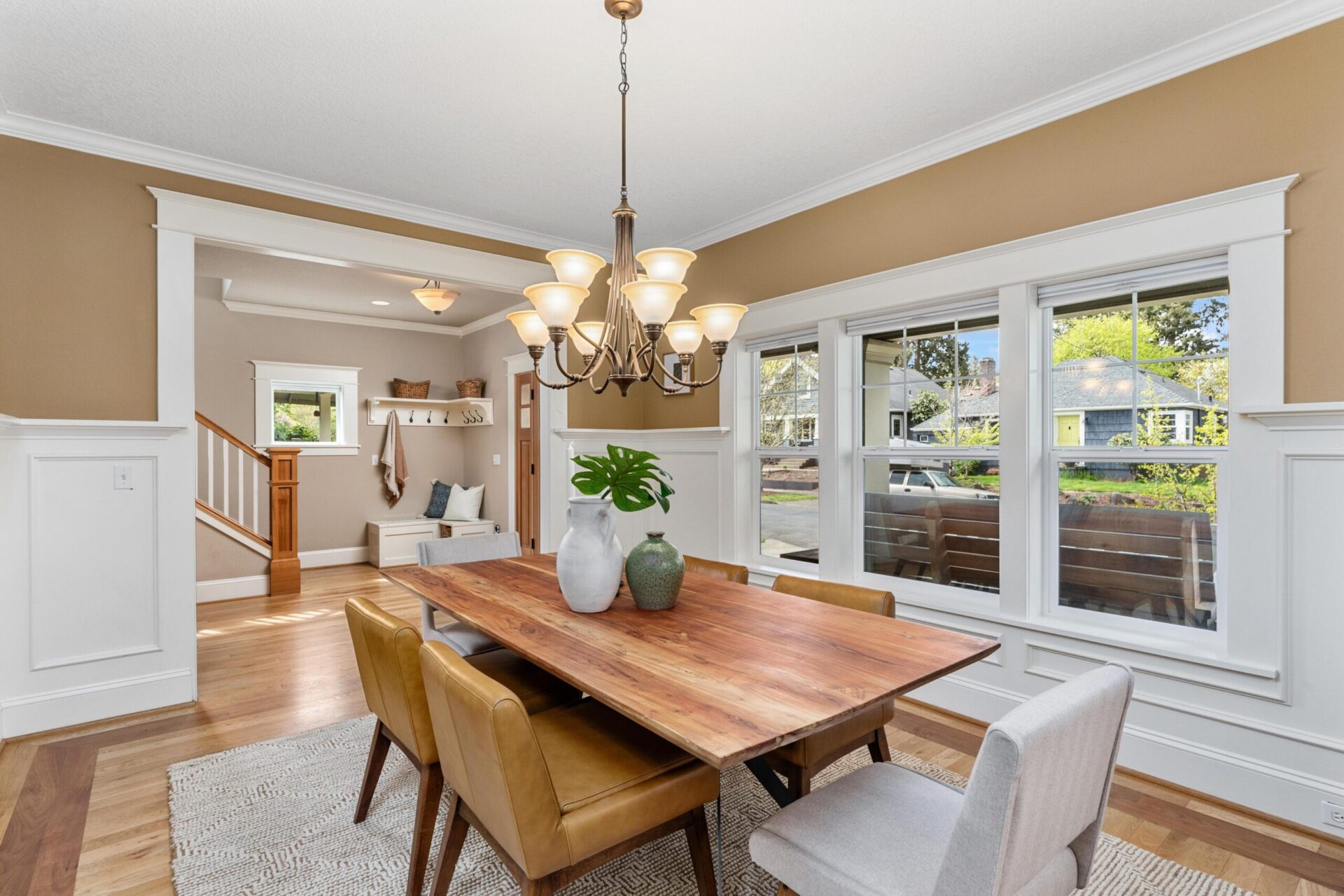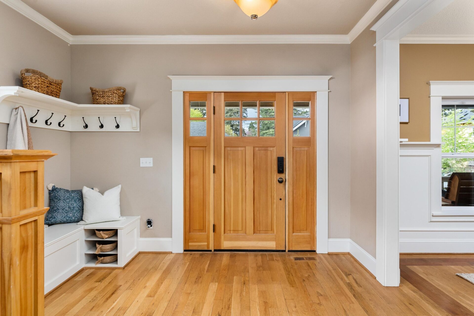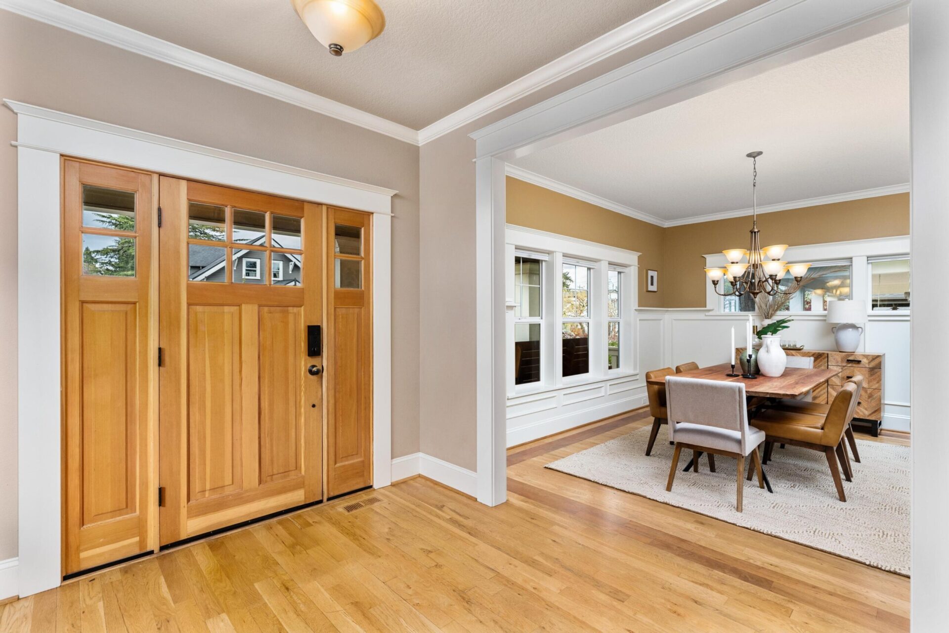 Built in 2009, this stunning three story craftsman home stands today as one of Wilshire's most noteworthy addresses. As you approach the home you will notice its gorgeous envelope complete with alternating lap siding and shake shingle on the third floor gable. A broad shouldered front porch clad in tongue and groove decking pays homage to the home's architectural inspiration. As you enter the home you will find yourself in a grand foyer complete with a custom built-in and an ideal flow pattern upstairs or through the main level. A dining room anchors the northwest corner of the main floor which is almost 1200 square feet in total. Moving from the dining room through the home's butler's pantry or main hallway you will find the amazing great room kitchen. The kitchen features an expansive island, gourmet range, walk-in panty and classic surface treatments. The great room is home to box beam ceilings, built-in bookshelves and a gas fireplace. Beyond the great room kitchen the homeowners have added a custom mud room which features built-in cabinets, cubbies and an abundance of light from the vaulted ceiling and skylights to the full light door and windows in soldier format. Heading upstairs to the second floor you will find three bedrooms, a full bathroom and an upstairs laundry in addition to a gorgeous sitting room with a built-in office space. Comprising over 1100 square feet, the second floor is also complemented by a third floor which comprises 800 plus square feet dedicated to the primary suite. The suite has vaulted ceilings, a sitting area, walk-in closet and a stunning bathroom. Put simply, few homes have a third floor that rivals this home. Beyond the primary dwelling is a rare, sought after detached living quarters above the 2 car garage. The living quarters features over 400 square feet of space including a grand studio area, kitchenette and full bathroom. With a dedicated second floor entry, this living space offers the next stewards countless options for how they wish to use it. Incredible grounds feature raised beds, a turf lawn, established trees and gorgeous plantings at almost every turn. Both inside and out this home will captivate you. Located just a stone's throw from Wilshire park, this Wilshire property is among the best you will find in a neighborhood that has proven to be one of Portland's most sought after.