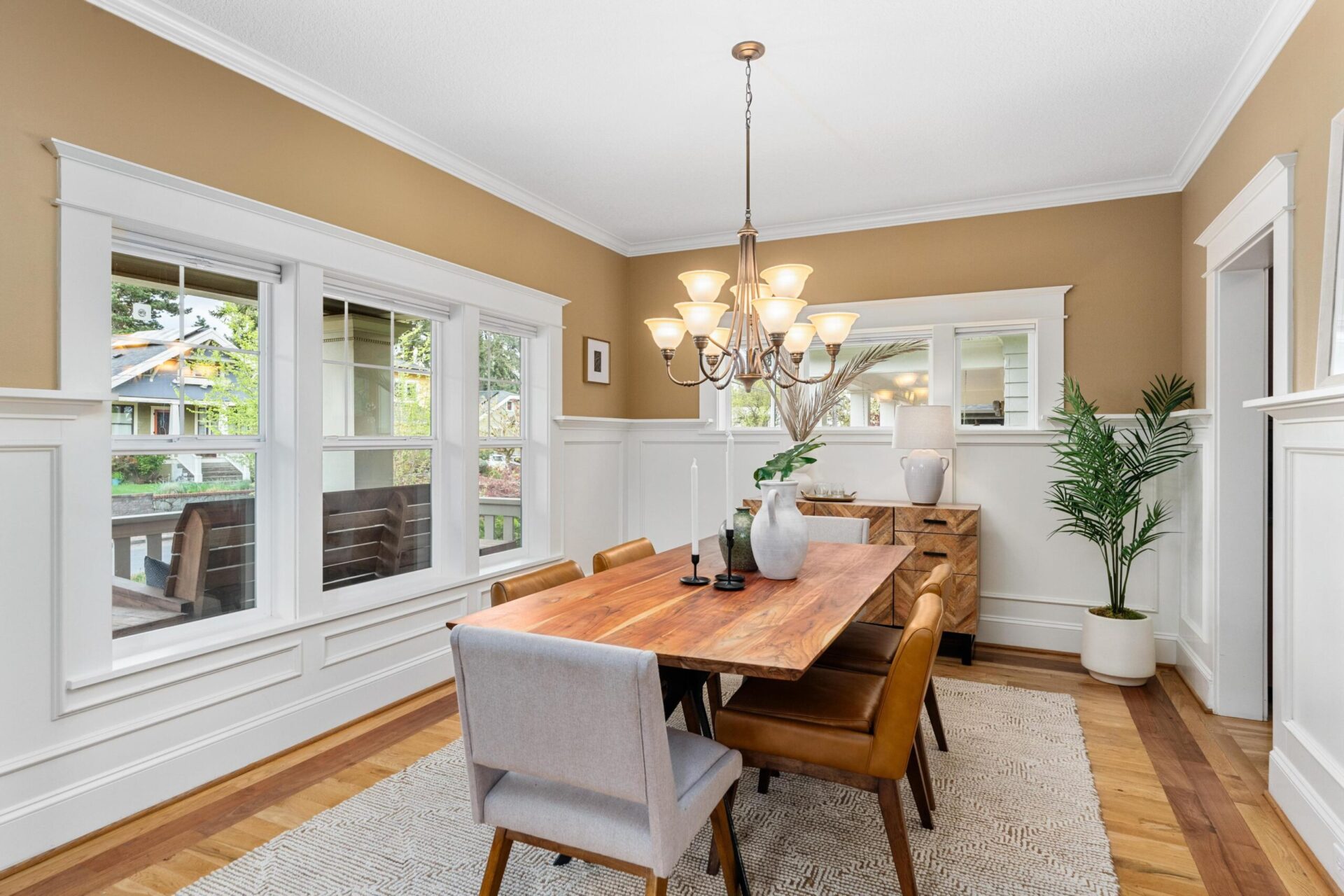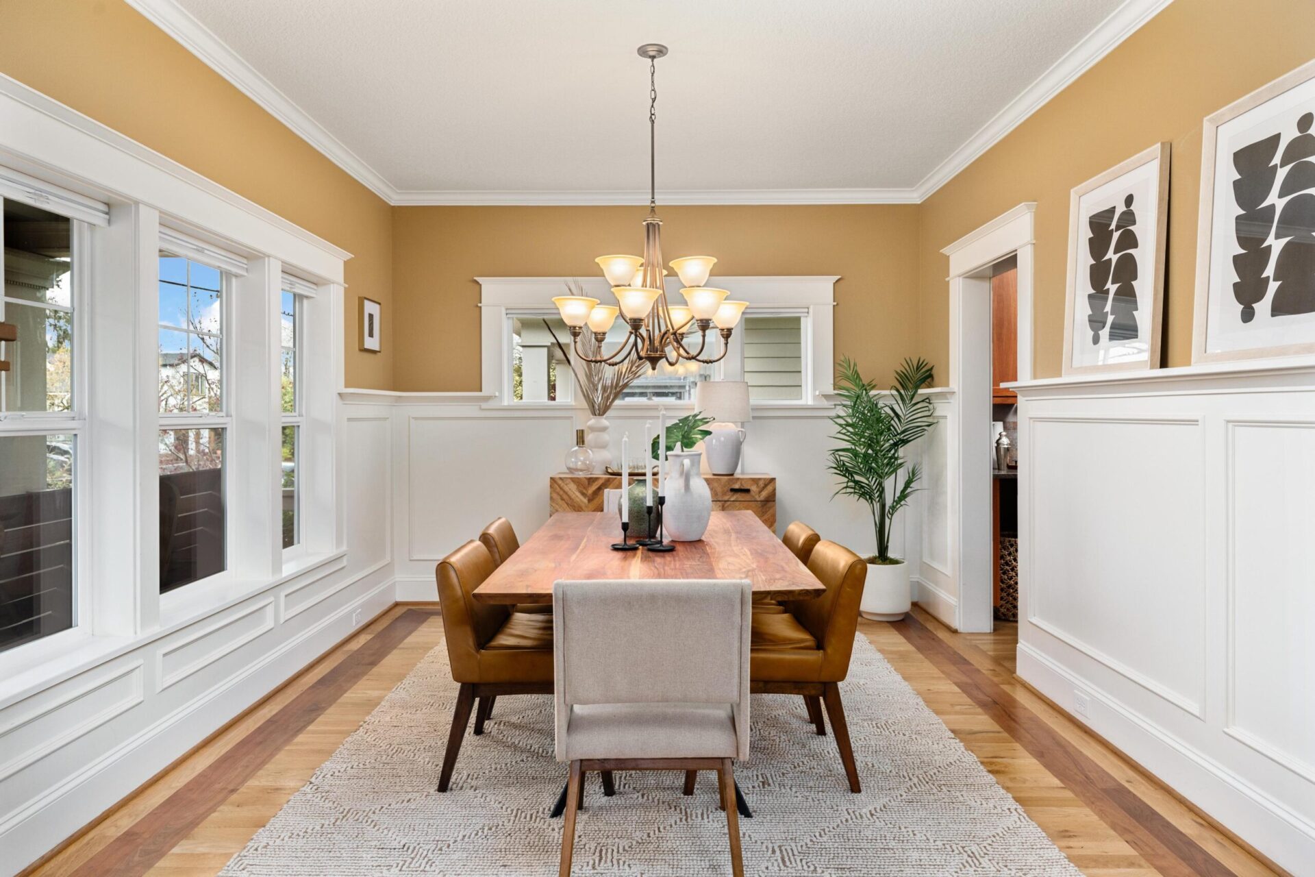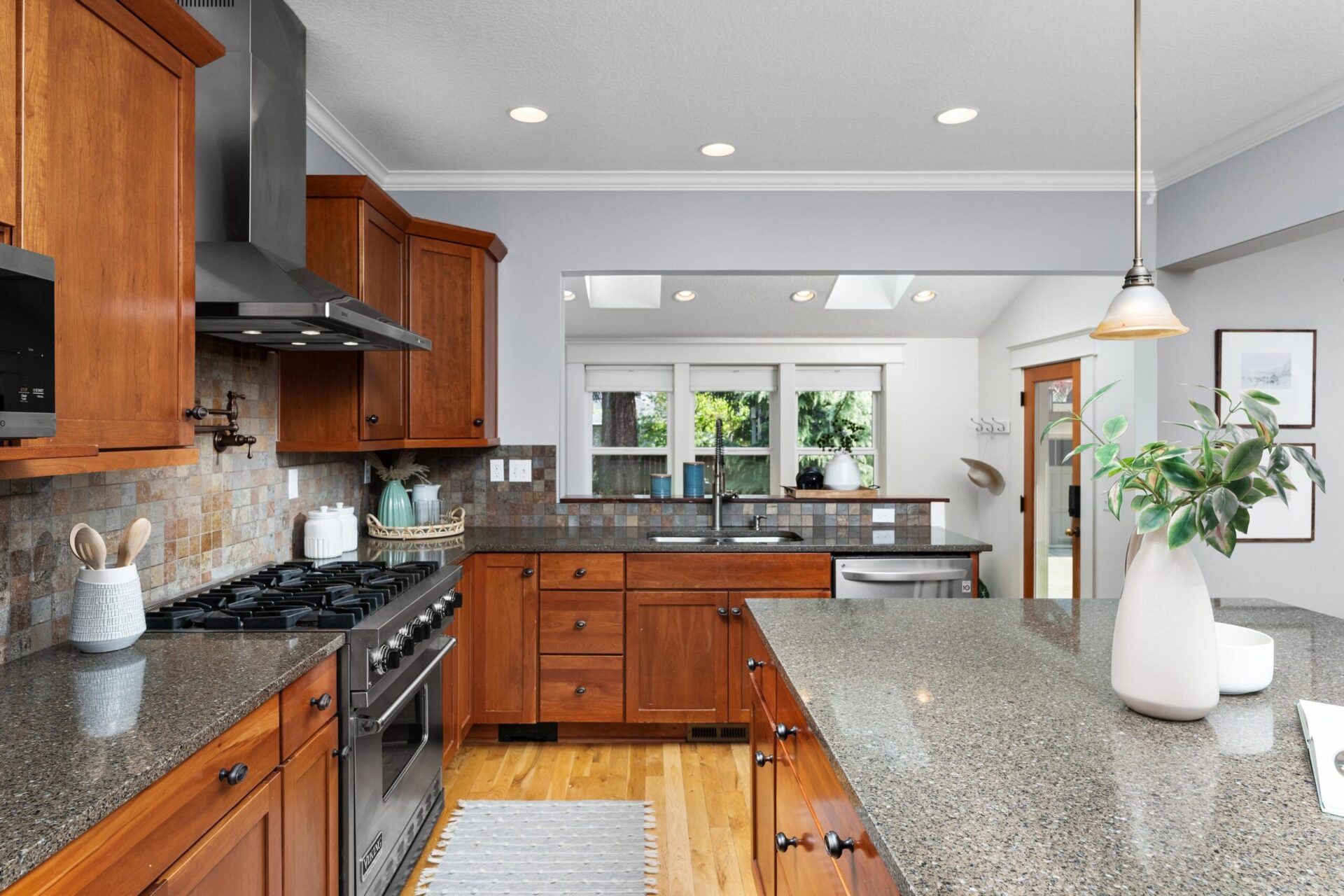Built in 2009, this stunning three story craftsman home stands today as one of Wilshire's most noteworthy addresses. As you approach the home you will notice its gorgeous envelope complete with alternating lap siding and shake shingle on the third floor gable. A broad shouldered front porch clad in tongue and groove decking pays homage to the home's architectural inspiration. As you enter the home you will find yourself in a grand foyer complete with a custom built-in and an ideal flow pattern upstairs or through the main level. A dining room anchors the northwest corner of the main floor which is almost 1200 square feet in total. Moving from the dining room through the home's butler's pantry or main hallway you will find the amazing great room kitchen. The kitchen features an expansive island, gourmet range, walk-in panty and classic surface treatments. The great room is home to box beam ceilings, built-in bookshelves and a gas fireplace. Beyond the great room kitchen the homeowners have added a custom mud room which features built-in cabinets, cubbies and an abundance of light from the vaulted ceiling and skylights to the full light door and windows in soldier format. Heading upstairs to the second floor you will find three bedrooms, a full bathroom and an upstairs laundry in addition to a gorgeous sitting room with a built-in office space. Comprising over 1100 square feet, the second floor is also complemented by a third floor which comprises 800 plus square feet dedicated to the primary suite. The suite has vaulted ceilings, a sitting area, walk-in closet and a stunning bathroom. Put simply, few homes have a third floor that rivals this home. Beyond the primary dwelling is a rare, sought after detached living quarters above the 2 car garage. The living quarters features over 400 square feet of space including a grand studio area, kitchenette and full bathroom. With a dedicated second floor entry, this living space offers the next stewards countless options for how they wish to use it. Incredible grounds feature raised beds, a turf lawn, established trees and gorgeous plantings at almost every turn. Both inside and out this home will captivate you. Located just a stone's throw from Wilshire park, this Wilshire property is among the best you will find in a neighborhood that has proven to be one of Portland's most sought after.