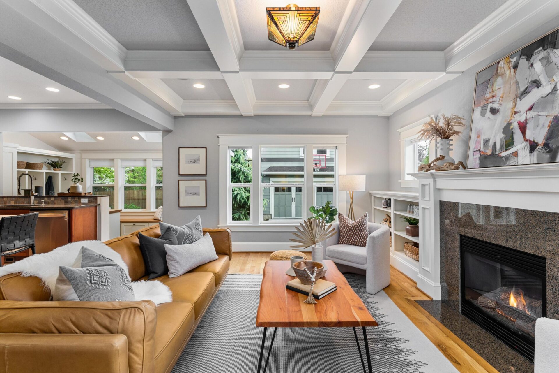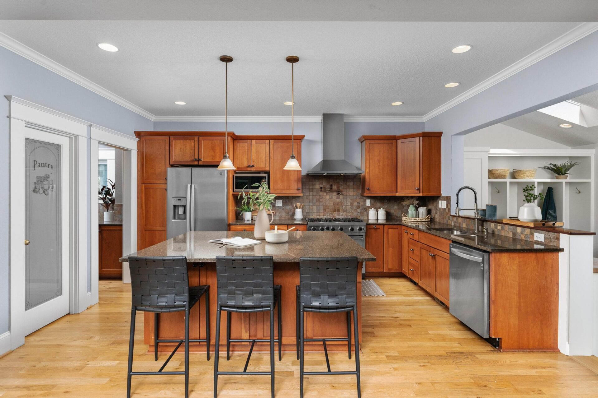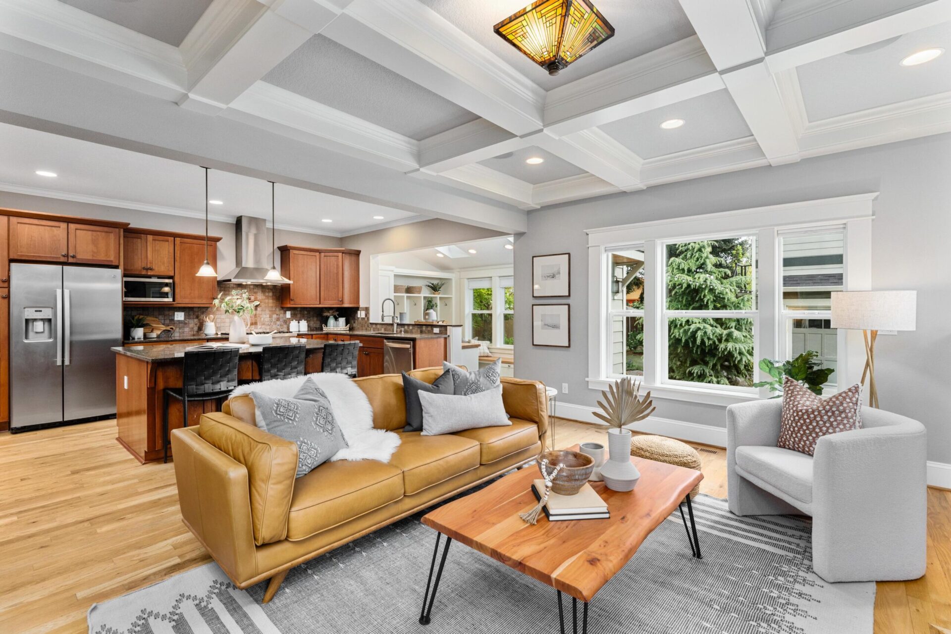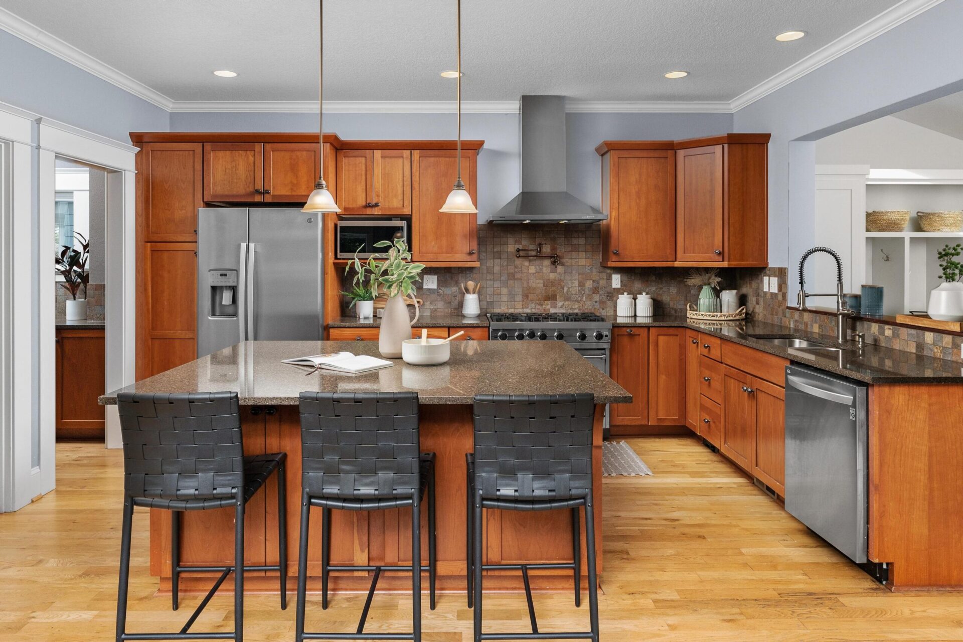 Built in 2009, this stunning three story craftsman home stands today as one of Wilshire's most noteworthy addresses. As you approach the home you will notice its gorgeous envelope complete with alternating lap siding and shake shingle on the third floor gable. A broad shouldered front porch clad in tongue and groove decking pays homage to the home's architectural inspiration. As you enter the home you will find yourself in a grand foyer complete with a custom built-in and an ideal flow pattern upstairs or through the main level. A dining room anchors the northwest corner of the main floor which is almost 1200 square feet in total. Moving from the dining room through the home's butler's pantry or main hallway you will find the amazing great room kitchen. The kitchen features an expansive island, gourmet range, walk-in panty and classic surface treatments. The great room is home to box beam ceilings, built-in bookshelves and a gas fireplace. Beyond the great room kitchen the homeowners have added a custom mud room which features built-in cabinets, cubbies and an abundance of light from the vaulted ceiling and skylights to the full light door and windows in soldier format. Heading upstairs to the second floor you will find three bedrooms, a full bathroom and an upstairs laundry in addition to a gorgeous sitting room with a built-in office space. Comprising over 1100 square feet, the second floor is also complemented by a third floor which comprises 800 plus square feet dedicated to the primary suite. The suite has vaulted ceilings, a sitting area, walk-in closet and a stunning bathroom. Put simply, few homes have a third floor that rivals this home. Beyond the primary dwelling is a rare, sought after detached living quarters above the 2 car garage. The living quarters features over 400 square feet of space including a grand studio area, kitchenette and full bathroom. With a dedicated second floor entry, this living space offers the next stewards countless options for how they wish to use it. Incredible grounds feature raised beds, a turf lawn, established trees and gorgeous plantings at almost every turn. Both inside and out this home will captivate you. Located just a stone's throw from Wilshire park, this Wilshire property is among the best you will find in a neighborhood that has proven to be one of Portland's most sought after.