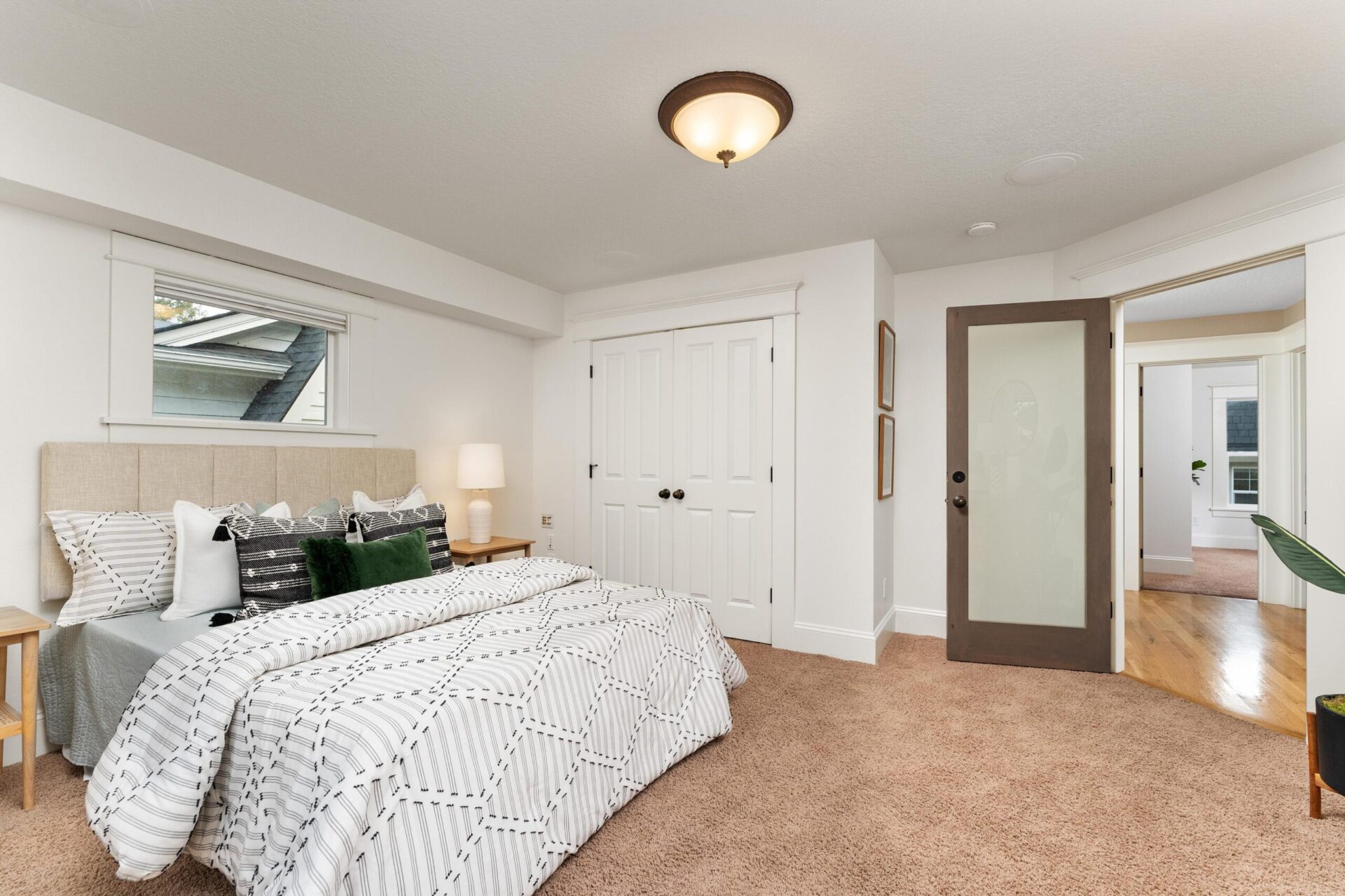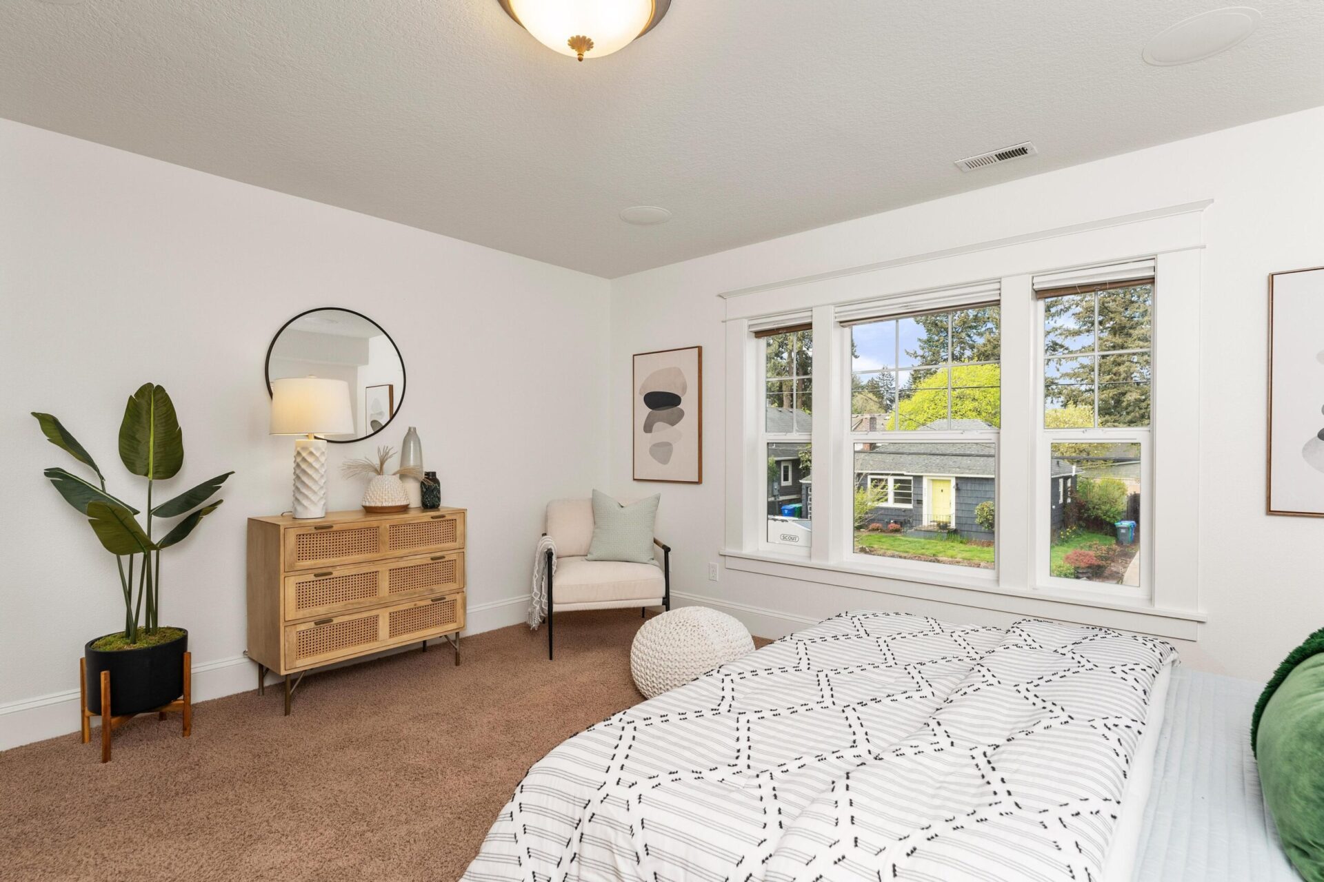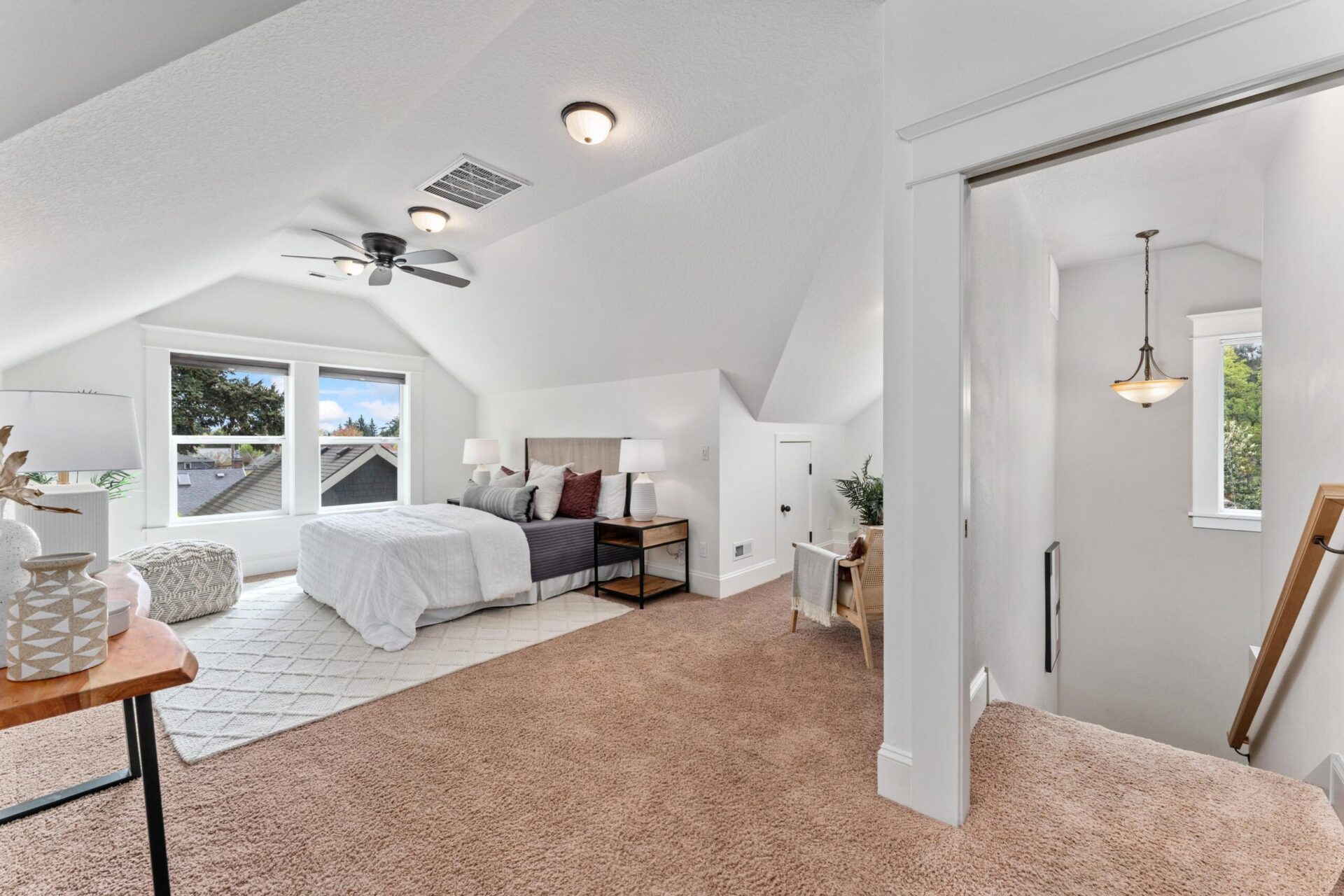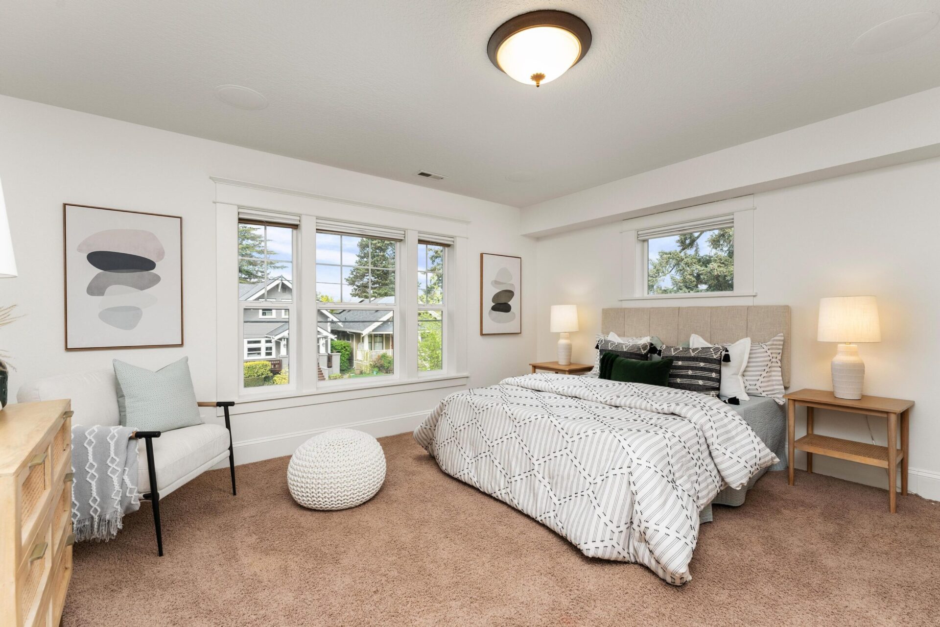 Built in 2009, this stunning three story craftsman home stands today as one of Wilshire's most noteworthy addresses. As you approach the home you will notice its gorgeous envelope complete with alternating lap siding and shake shingle on the third floor gable. A broad shouldered front porch clad in tongue and groove decking pays homage to the home's architectural inspiration. As you enter the home you will find yourself in a grand foyer complete with a custom built-in and an ideal flow pattern upstairs or through the main level. A dining room anchors the northwest corner of the main floor which is almost 1200 square feet in total. Moving from the dining room through the home's butler's pantry or main hallway you will find the amazing great room kitchen. The kitchen features an expansive island, gourmet range, walk-in panty and classic surface treatments. The great room is home to box beam ceilings, built-in bookshelves and a gas fireplace. Beyond the great room kitchen the homeowners have added a custom mud room which features built-in cabinets, cubbies and an abundance of light from the vaulted ceiling and skylights to the full light door and windows in soldier format. Heading upstairs to the second floor you will find three bedrooms, a full bathroom and an upstairs laundry in addition to a gorgeous sitting room with a built-in office space. Comprising over 1100 square feet, the second floor is also complemented by a third floor which comprises 800 plus square feet dedicated to the primary suite. The suite has vaulted ceilings, a sitting area, walk-in closet and a stunning bathroom. Put simply, few homes have a third floor that rivals this home. Beyond the primary dwelling is a rare, sought after detached living quarters above the 2 car garage. The living quarters features over 400 square feet of space including a grand studio area, kitchenette and full bathroom. With a dedicated second floor entry, this living space offers the next stewards countless options for how they wish to use it. Incredible grounds feature raised beds, a turf lawn, established trees and gorgeous plantings at almost every turn. Both inside and out this home will captivate you. Located just a stone's throw from Wilshire park, this Wilshire property is among the best you will find in a neighborhood that has proven to be one of Portland's most sought after.