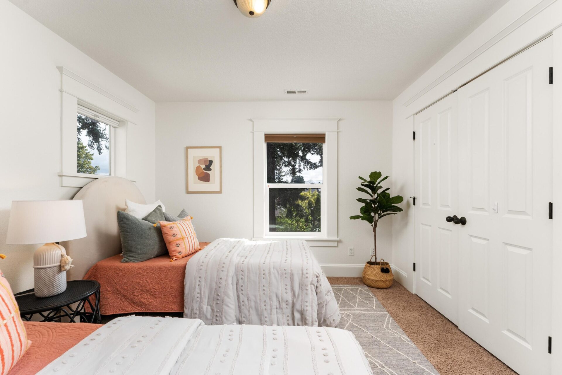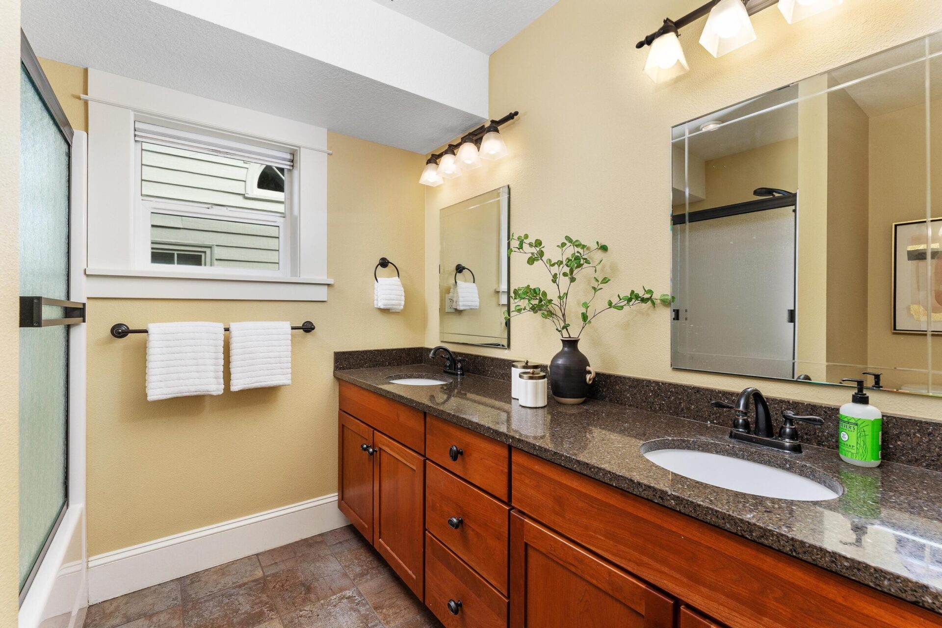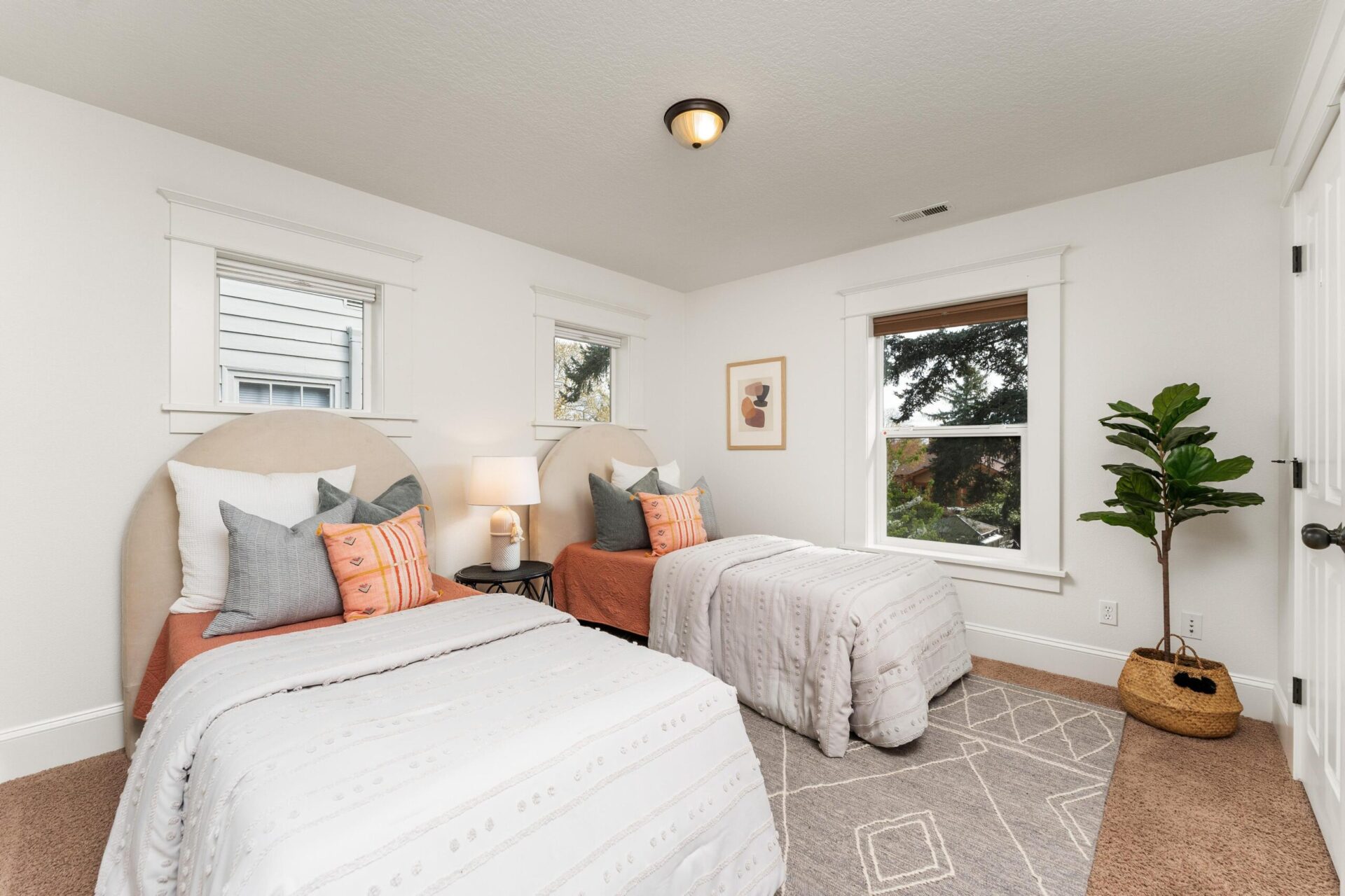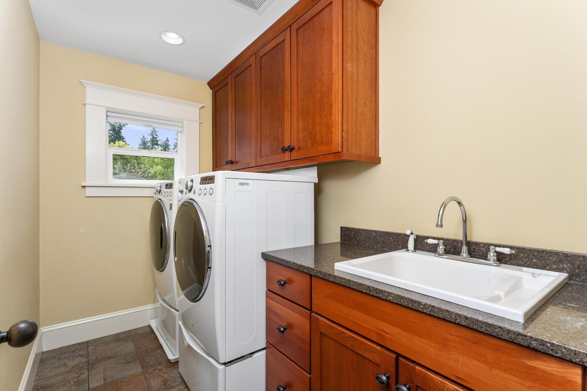 Built in 2009, this stunning three story craftsman home stands today as one of Wilshire's most noteworthy addresses. As you approach the home you will notice its gorgeous envelope complete with alternating lap siding and shake shingle on the third floor gable. A broad shouldered front porch clad in tongue and groove decking pays homage to the home's architectural inspiration. As you enter the home you will find yourself in a grand foyer complete with a custom built-in and an ideal flow pattern upstairs or through the main level. A dining room anchors the northwest corner of the main floor which is almost 1200 square feet in total. Moving from the dining room through the home's butler's pantry or main hallway you will find the amazing great room kitchen. The kitchen features an expansive island, gourmet range, walk-in panty and classic surface treatments. The great room is home to box beam ceilings, built-in bookshelves and a gas fireplace. Beyond the great room kitchen the homeowners have added a custom mud room which features built-in cabinets, cubbies and an abundance of light from the vaulted ceiling and skylights to the full light door and windows in soldier format. Heading upstairs to the second floor you will find three bedrooms, a full bathroom and an upstairs laundry in addition to a gorgeous sitting room with a built-in office space. Comprising over 1100 square feet, the second floor is also complemented by a third floor which comprises 800 plus square feet dedicated to the primary suite. The suite has vaulted ceilings, a sitting area, walk-in closet and a stunning bathroom. Put simply, few homes have a third floor that rivals this home. Beyond the primary dwelling is a rare, sought after detached living quarters above the 2 car garage. The living quarters features over 400 square feet of space including a grand studio area, kitchenette and full bathroom. With a dedicated second floor entry, this living space offers the next stewards countless options for how they wish to use it. Incredible grounds feature raised beds, a turf lawn, established trees and gorgeous plantings at almost every turn. Both inside and out this home will captivate you. Located just a stone's throw from Wilshire park, this Wilshire property is among the best you will find in a neighborhood that has proven to be one of Portland's most sought after.