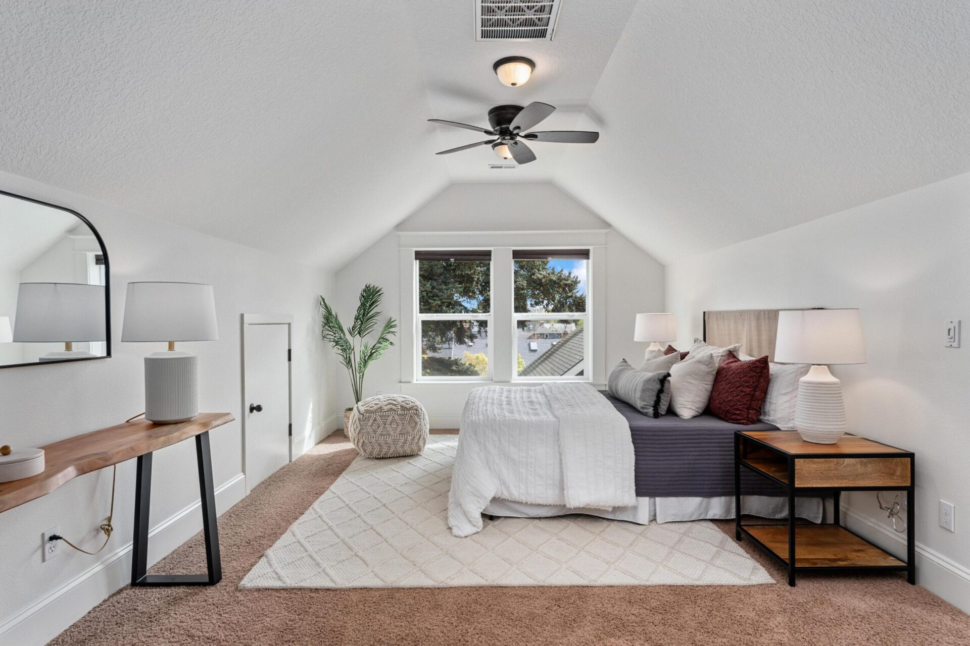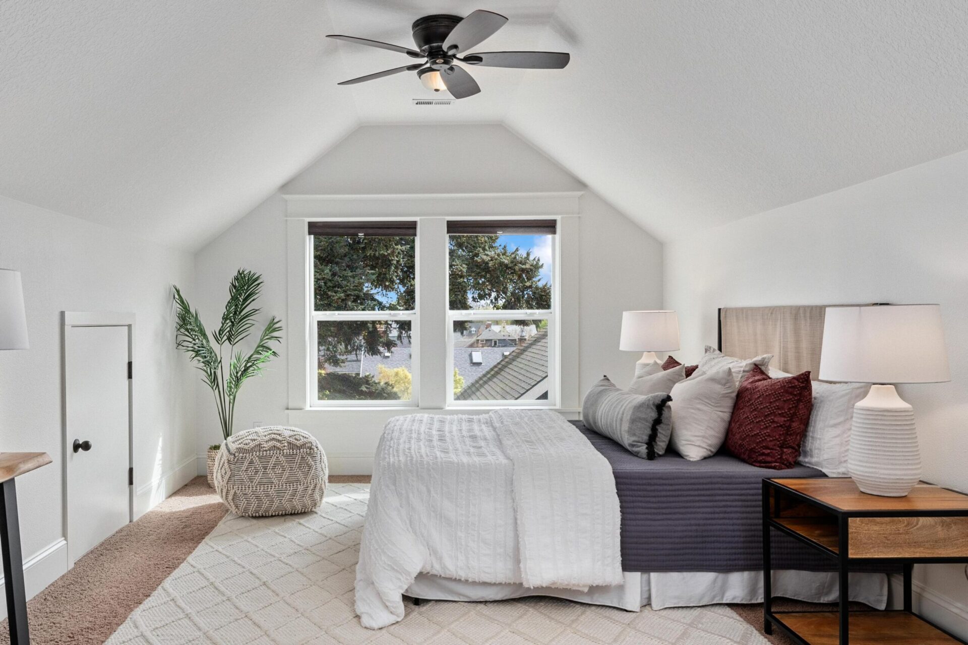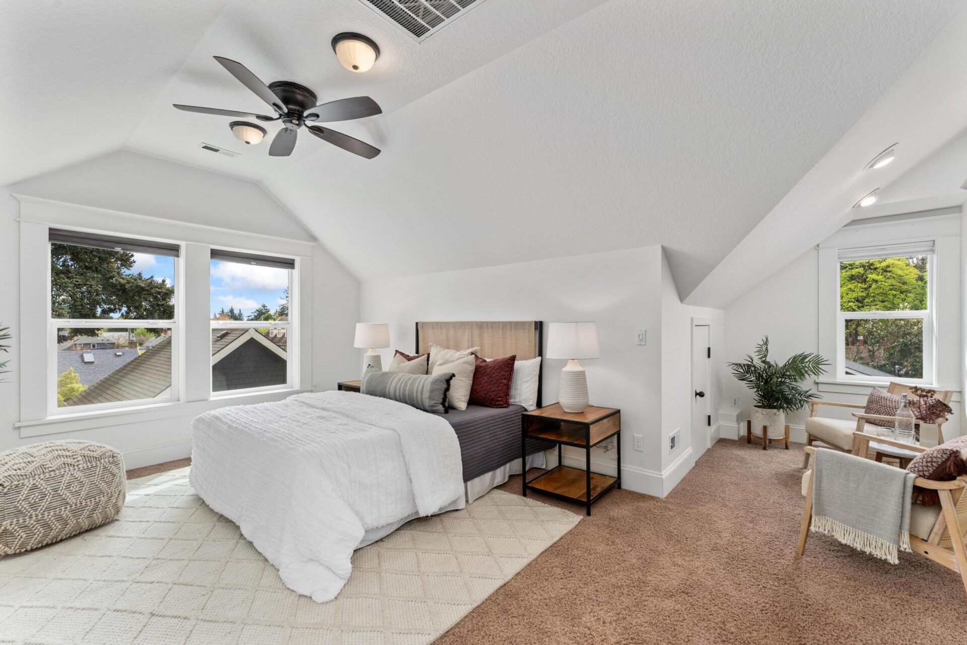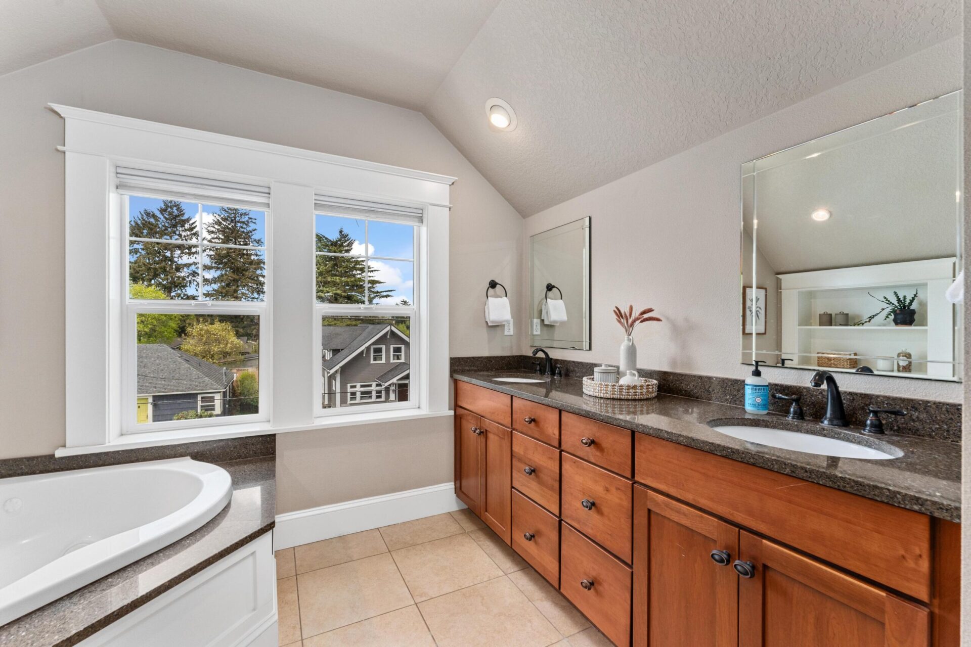 Built in 2009, this stunning three story craftsman home stands today as one of Wilshire's most noteworthy addresses. As you approach the home you will notice its gorgeous envelope complete with alternating lap siding and shake shingle on the third floor gable. A broad shouldered front porch clad in tongue and groove decking pays homage to the home's architectural inspiration. As you enter the home you will find yourself in a grand foyer complete with a custom built-in and an ideal flow pattern upstairs or through the main level. A dining room anchors the northwest corner of the main floor which is almost 1200 square feet in total. Moving from the dining room through the home's butler's pantry or main hallway you will find the amazing great room kitchen. The kitchen features an expansive island, gourmet range, walk-in panty and classic surface treatments. The great room is home to box beam ceilings, built-in bookshelves and a gas fireplace. Beyond the great room kitchen the homeowners have added a custom mud room which features built-in cabinets, cubbies and an abundance of light from the vaulted ceiling and skylights to the full light door and windows in soldier format. Heading upstairs to the second floor you will find three bedrooms, a full bathroom and an upstairs laundry in addition to a gorgeous sitting room with a built-in office space. Comprising over 1100 square feet, the second floor is also complemented by a third floor which comprises 800 plus square feet dedicated to the primary suite. The suite has vaulted ceilings, a sitting area, walk-in closet and a stunning bathroom. Put simply, few homes have a third floor that rivals this home. Beyond the primary dwelling is a rare, sought after detached living quarters above the 2 car garage. The living quarters features over 400 square feet of space including a grand studio area, kitchenette and full bathroom. With a dedicated second floor entry, this living space offers the next stewards countless options for how they wish to use it. Incredible grounds feature raised beds, a turf lawn, established trees and gorgeous plantings at almost every turn. Both inside and out this home will captivate you. Located just a stone's throw from Wilshire park, this Wilshire property is among the best you will find in a neighborhood that has proven to be one of Portland's most sought after.