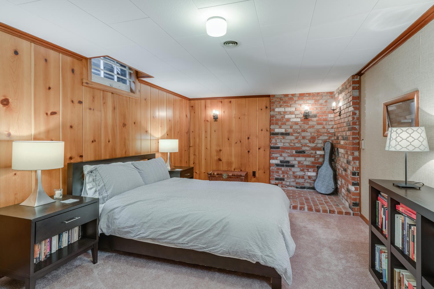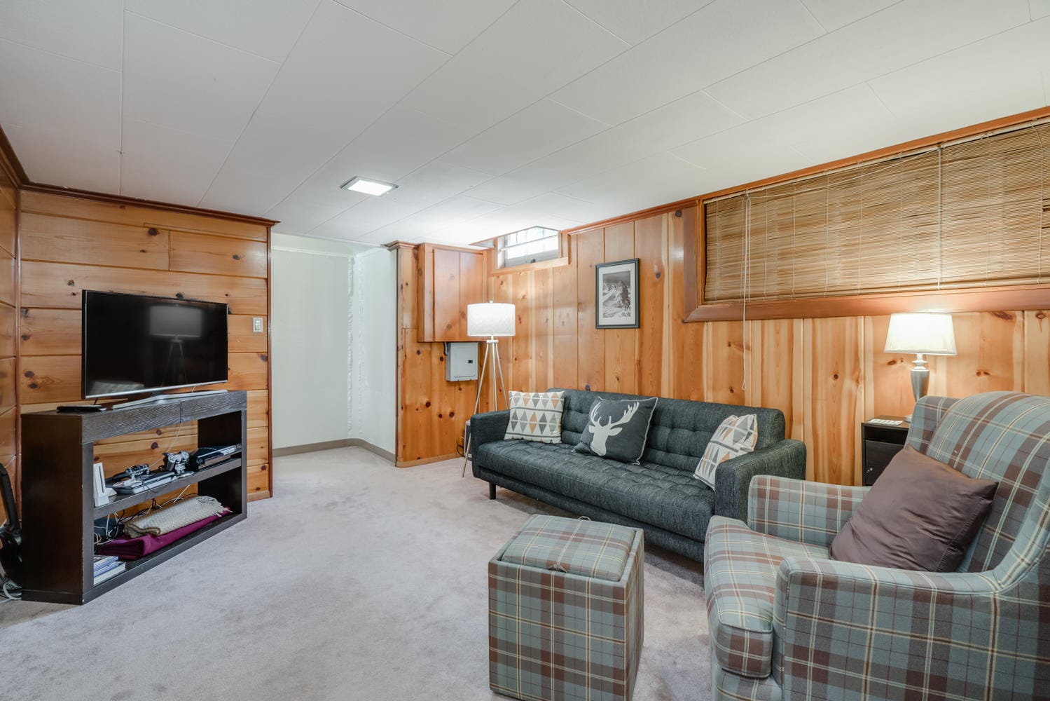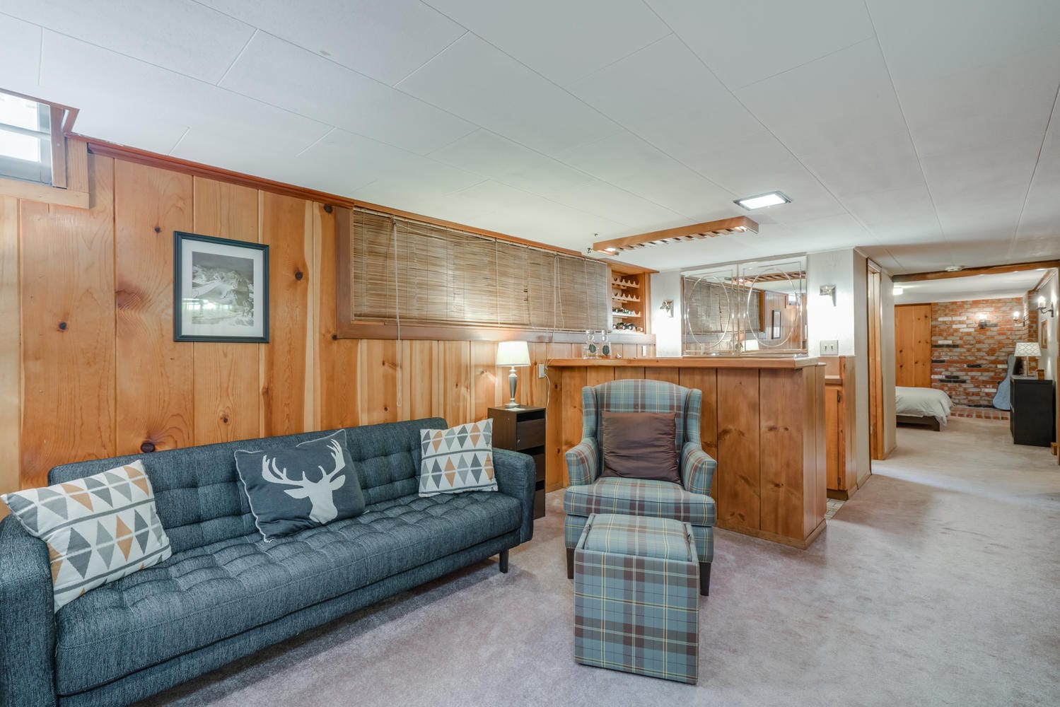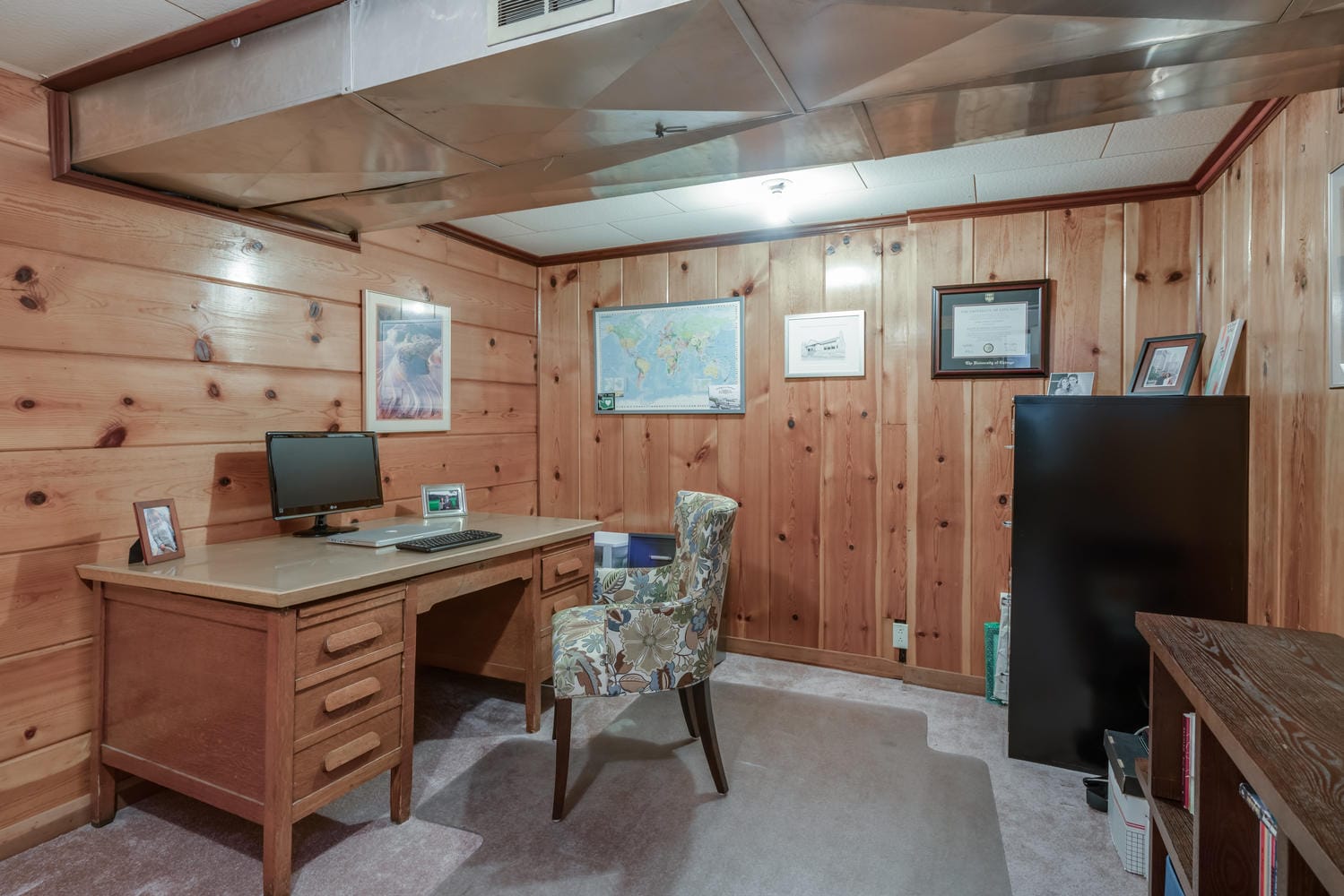 The lower floor has over 1200 square feet and features a fourth non-conforming bedroom space, cozy family room with classic knotty pine inspired bar, office and two large storage rooms with plenty of potential for a shop, kid’s playroom or southeast’s largest wine cellar.