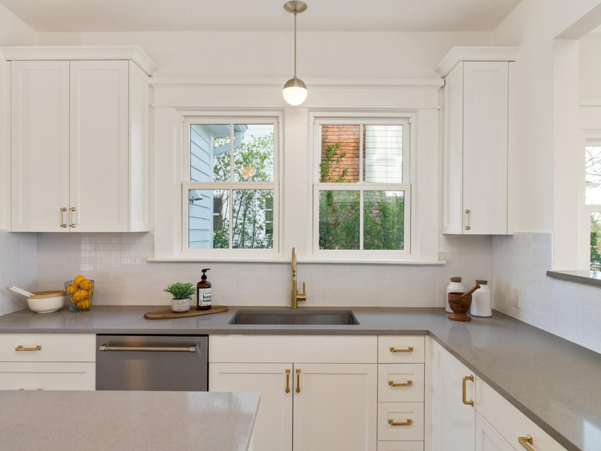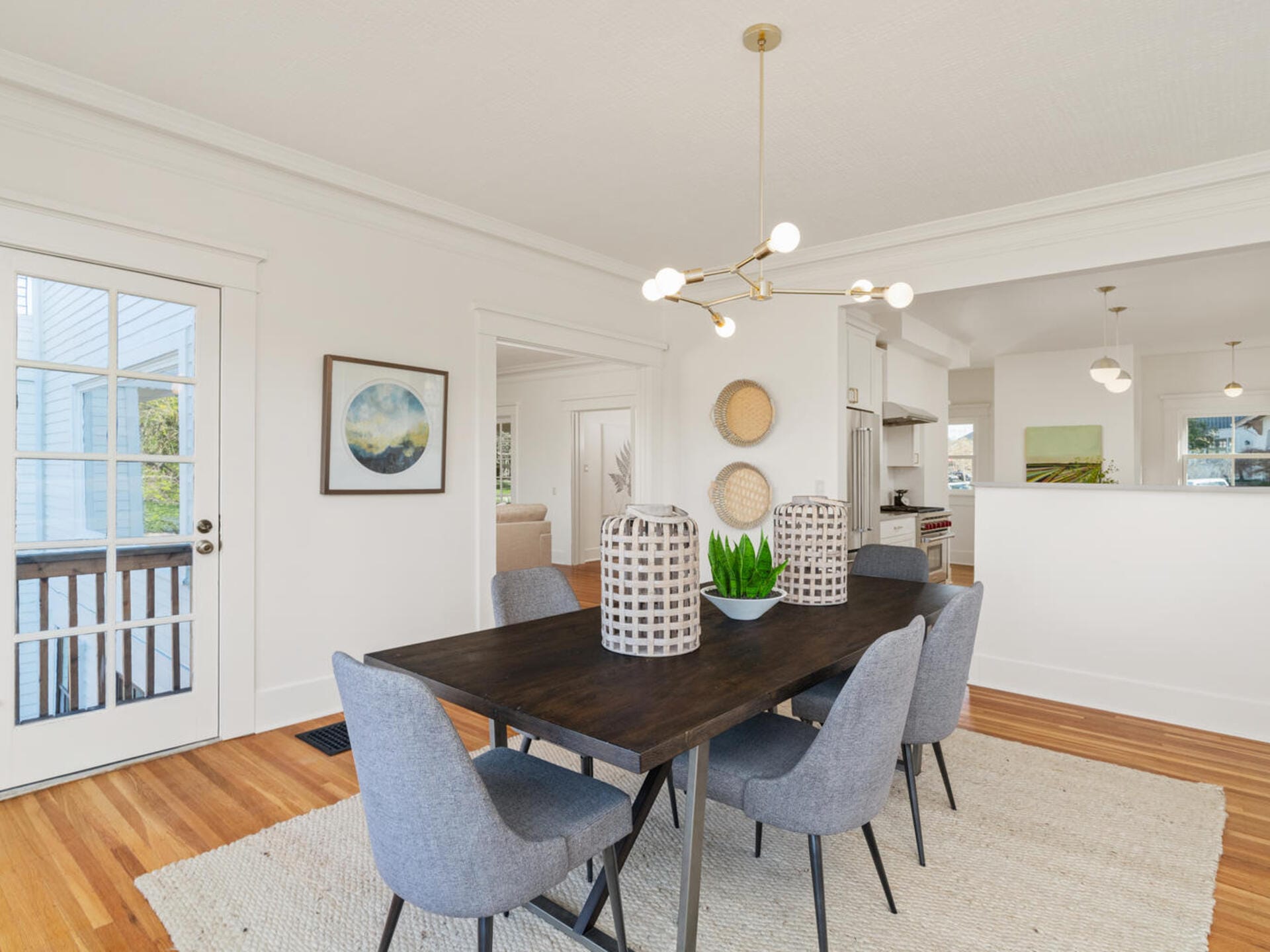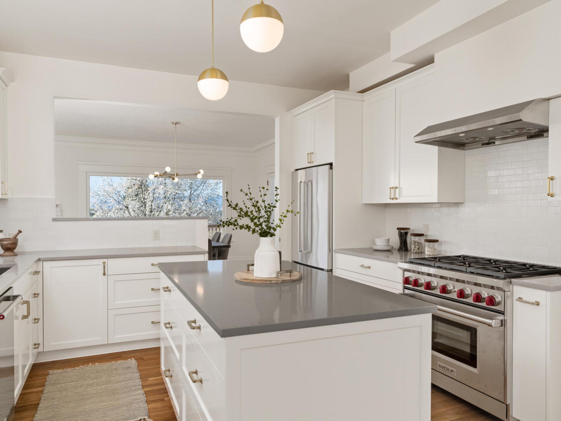 Originally built in 1917, 5114 NE Wisteria stands proudly on one of Northeast Portland's most premier lots, anchoring one of the community's most cherished cross streets. Perched on the Alameda Ridge, this stately colonial home has been renovated from top to bottom by Butler Redevelopment. With over 4500 square feet, each floor of this home boasts stunning new finishes, coupled with strong design elements from it's past. As you enter through the fluted columns of the front porch into the home, you find yourself greeted by a stunning foyer whose backdrop is a territorial view of Northeast Portland and downtown. A circular floor plan allows you to enter the main floor office, pass under the gorgeous stairwell to the kitchen or enter into the grand living room. With an abundance of natural light, the living room features tall ceilings, refinished hardwoods and an Ann Sacks tiled fireplace. The formal dining room is among the biggest you will see and features its own captivating views, direct access to a main level deck, Rejuvenation lighting and a broad shouldered built-in hutch. Butler has opened up the wall between the dining room and the kitchen to allow the kitchen its own views, increased natural light and an elegant visual flow. With a 36" Wolf range, quartz counters, new custom cabinetry, Cedar and Moss lighting, Ann Sacks tile, a walk in pantry and adjacent powder room this kitchen is among the most noteworthy in the neighborhood. Rounding out the main floor is a rare main floor master suite with an expansive walk-in closet and stunning en suite bathroom which has been remodeled with Ann Sacks tile, new fixtures and a custom vanity.
