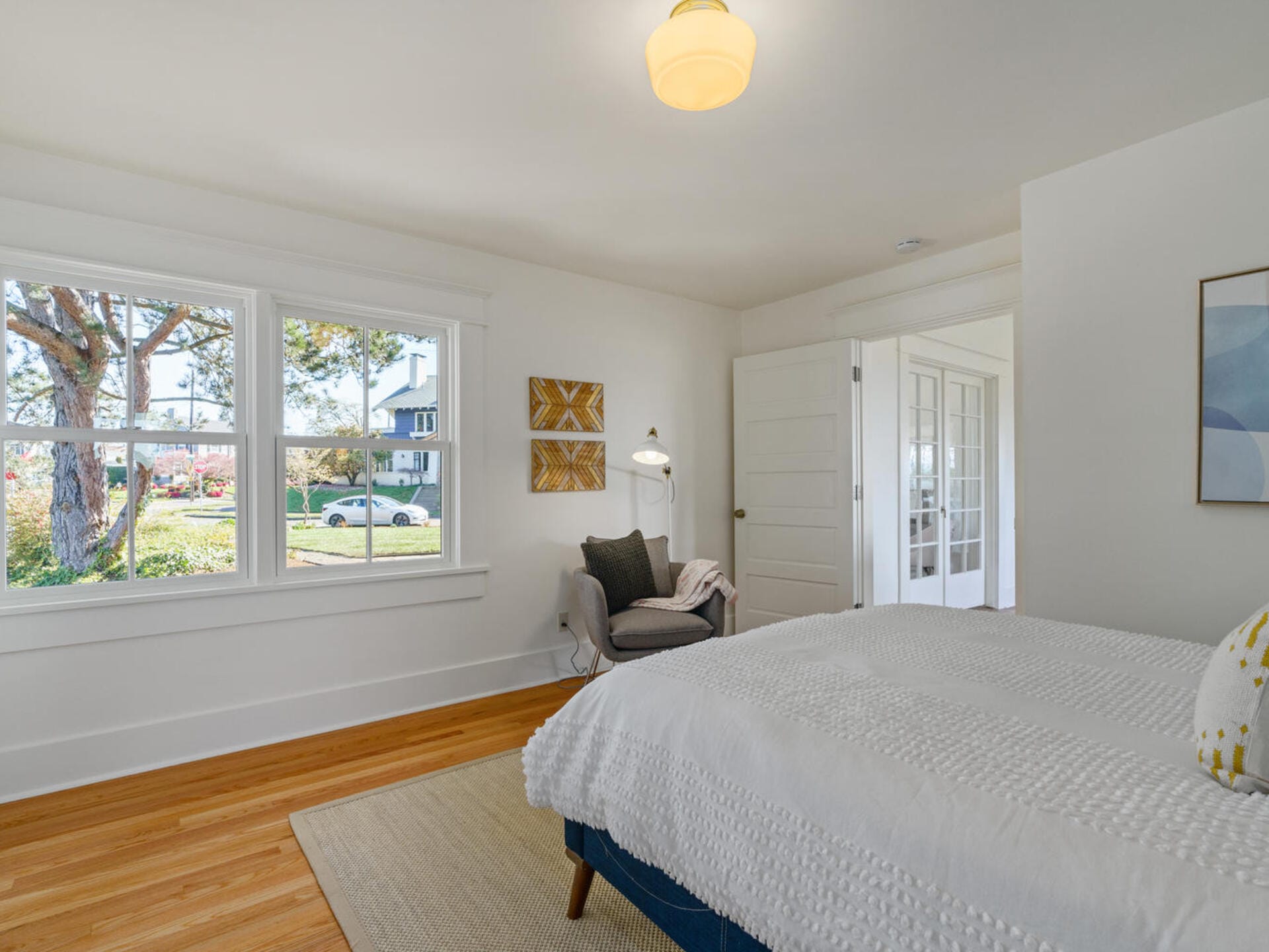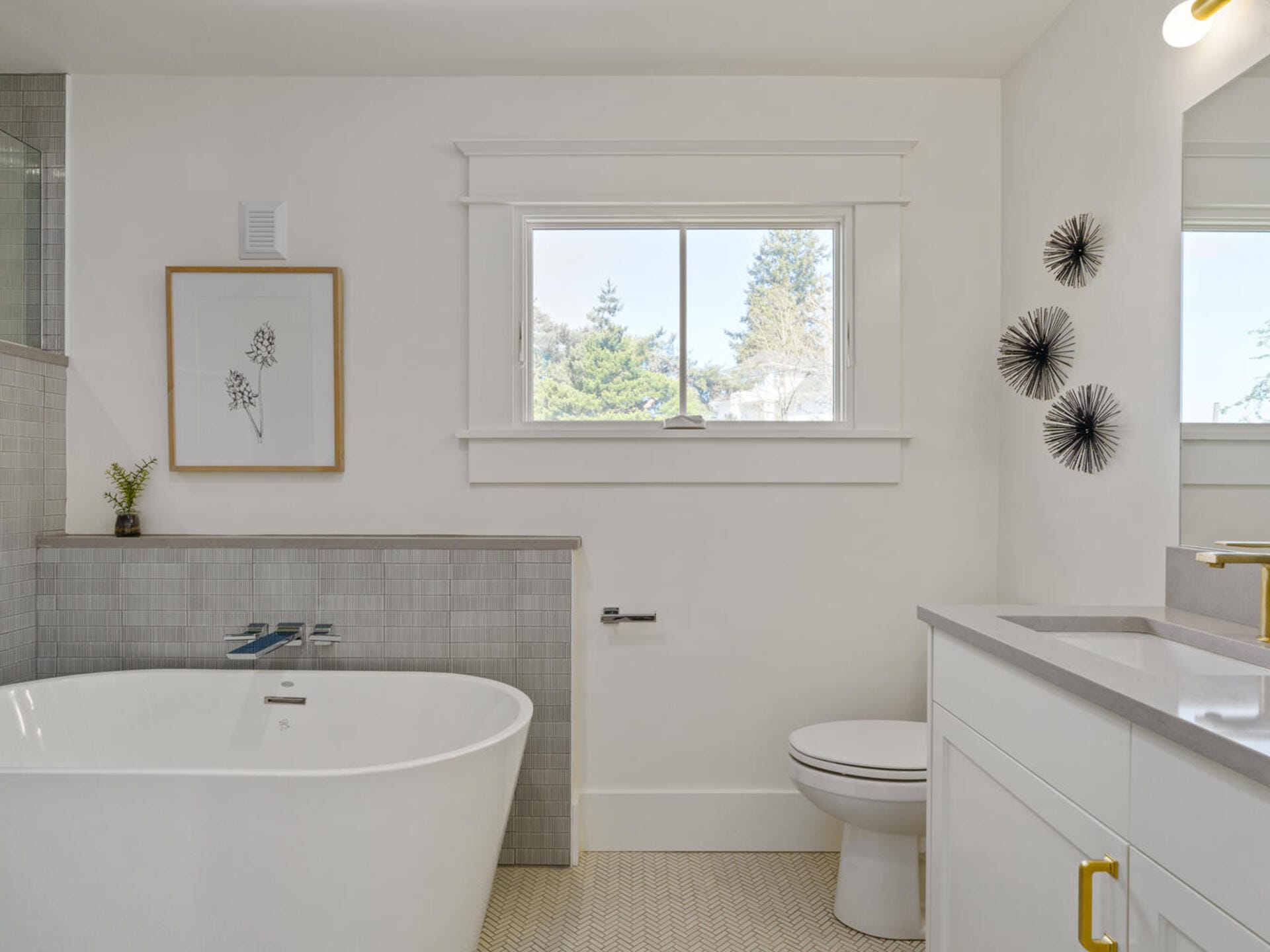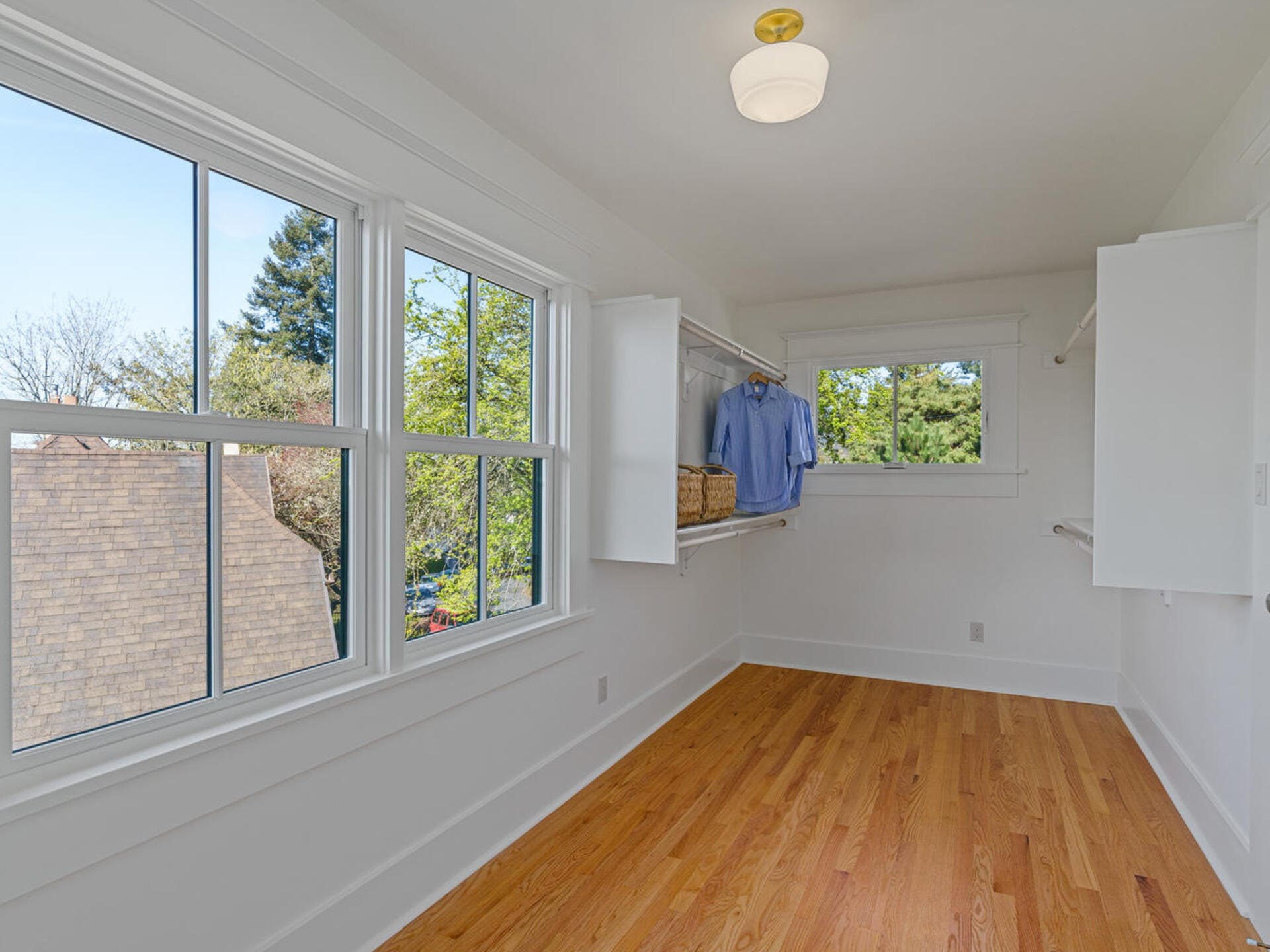 Originally built in 1917, 5114 NE Wisteria stands proudly on one of Northeast Portland's most premier lots, anchoring one of the community's most cherished cross streets. Perched on the Alameda Ridge, this stately colonial home has been renovated from top to bottom by Butler Redevelopment. With over 4500 square feet, each floor of this home boasts stunning new finishes, coupled with strong design elements from it's past. As you enter through the fluted columns of the front porch into the home, you find yourself greeted by a stunning foyer whose backdrop is a territorial view of Northeast Portland and downtown. A circular floor plan allows you to enter the main floor office, pass under the gorgeous stairwell to the kitchen or enter into the grand living room. With an abundance of natural light, the living room features tall ceilings, refinished hardwoods and an Ann Sacks tiled fireplace. The formal dining room is among the biggest you will see and features its own captivating views, direct access to a main level deck, Rejuvenation lighting and a broad shouldered built-in hutch. Butler has opened up the wall between the dining room and the kitchen to allow the kitchen its own views, increased natural light and an elegant visual flow. With a 36" Wolf range, quartz counters, new custom cabinetry, Cedar and Moss lighting, Ann Sacks tile, a walk in pantry and adjacent powder room this kitchen is among the most noteworthy in the neighborhood. Rounding out the main floor is a rare main floor master suite with an expansive walk-in closet and stunning en suite bathroom which has been remodeled with Ann Sacks tile, new fixtures and a custom vanity. As you approach the stairwell of this home, you find yourself entranced by the millwork, natural light and sheer scale of the amenities. With over 4000 sqft the second floor is home to the highly sought after three bedroom two bathroom configuration. Two bedrooms anchor the south end of the floor each with it's own noteworthy views. The SW room has it's own deck, while the SE room has a walk-in closet with original built-ins. The second master suite occupies the entire north end of the floor with a walk-in closet, stunning remodeled bathroom and noteworthy 400+ sqft deck with incredible views and a custom fabricated railing. With a second full bathroom, Butler also added a washer/dryer hook up, new vanity and penny round flooring, while carefully working to maintain the field tile. With the massive gable, Butler finished the third floor adding a series of beautiful skylights, new windows, a heat pump and new flooring which make for a wonderful upstairs family room. As you head back downstairs beyond the main floor you find yourself in the finished basement which features a second family room with a fireplace, fourth full bathroom and guest quarters. The family room offers direct access to the deep two car garage, while the main hallway of the basement offers direct access to the backyard and patio. Butler has painstakingly updated the mechanicals in the home with high a efficiency HVAC system in addition to replacing numerous windows with high end Marvin wood windows. Benjamin Moore paint, Cedar and Moss lighting, Ann Sacks tile in every bathroom and countless updates at almost every turn make this property an incredible follow up to Butler Redevelopments two record breaking homes in 2018 and 2019. Located with the Alameda Elementary catchment area with an address just a couple blocks to Sandy shops or a quick shot to Beaumont Village, this noteowrhty Portland home is one you won't want to miss!