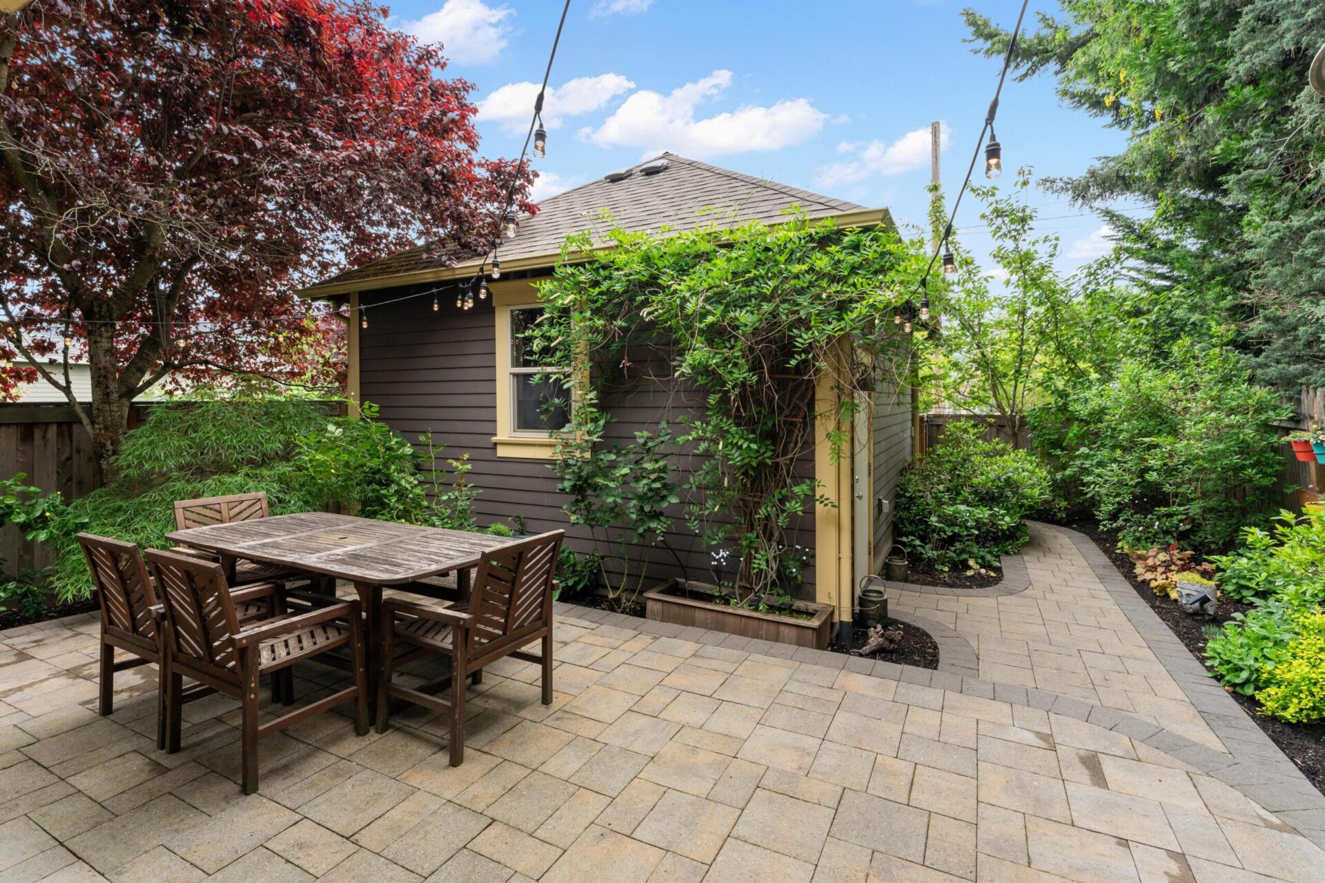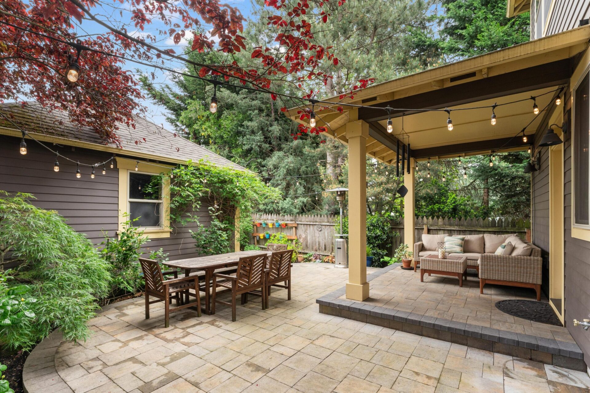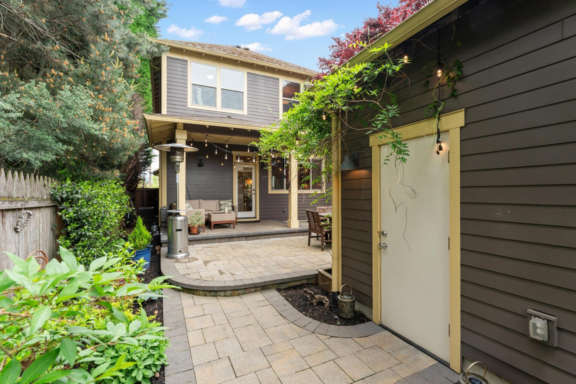 Built in 2014, this stunning foursquare home sits prominently in University Park on N. Bowdoin and N. Monteith. As you approach the home you will notice the incredible east elevation which features a dry stack wall, gorgeous plantings and the home's open, broad shouldered porch. Entering the home you will immediately witness numerous builder upgrades including a solid wood front door and the sand-in-place oak hardwoods that run throughout the formal spaces and kitchen. With over 1000 square feet, the main floor is home to the highly sought after open concept floor plan where the expansive living room seamlessly connects to the dining room and then beyond to the open kitchen. Stunning built-ins, box beam ceilings, period lighting and custom details highlight the living and dining rooms, while the kitchen is highlighted by a large island clad in granite, cherry cabinetry, subway field tile and a great appliance package. Beyond these spaces is the home's main floor bedroom which sits just off a full bathroom accessible from both the bedroom and main hallway. Moving upstairs you will find another 1000 square feet, home to three full bedrooms, two bathrooms and a laundry room. Anchoring the east side of the floor are two bedrooms with wall to wall carpet, tall ceilings and designer colors. A shared bathroom sits just down the hall across from the laundry room. At the west end of the floor is the amazing primary suite which features gorgeous millwork, an expansive walk-in closet and a luxurious en suite bathroom with double vanity, soaking tub and separate tile set shower. Carrera marble tile, a custom, stain grade, double vanity with undermounted sinks and the perfect period sconces round out the beautiful finish palette. Beyond the 2000 plus square foot interior is an amazing private backyard that includes a stunning covered patio, an expansive lower patio, gorgeous landscaping at every turn and an oversized detached garage. Inside and out, this property leaves no stone unturned in addition to having an address just blocks from Starbucks, New Seasons and McKenna Park. Incredible stewardship coupled with design-rich upgrades make this home one of University Park's most noteworthy properties.