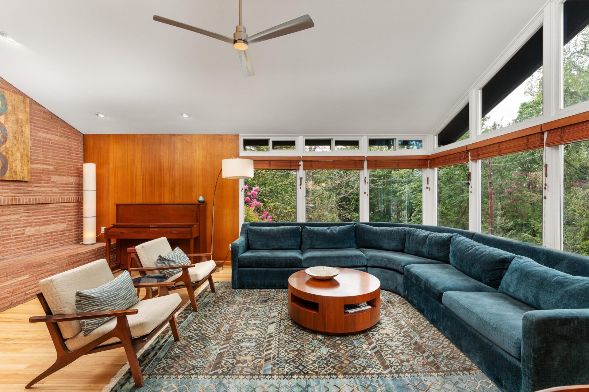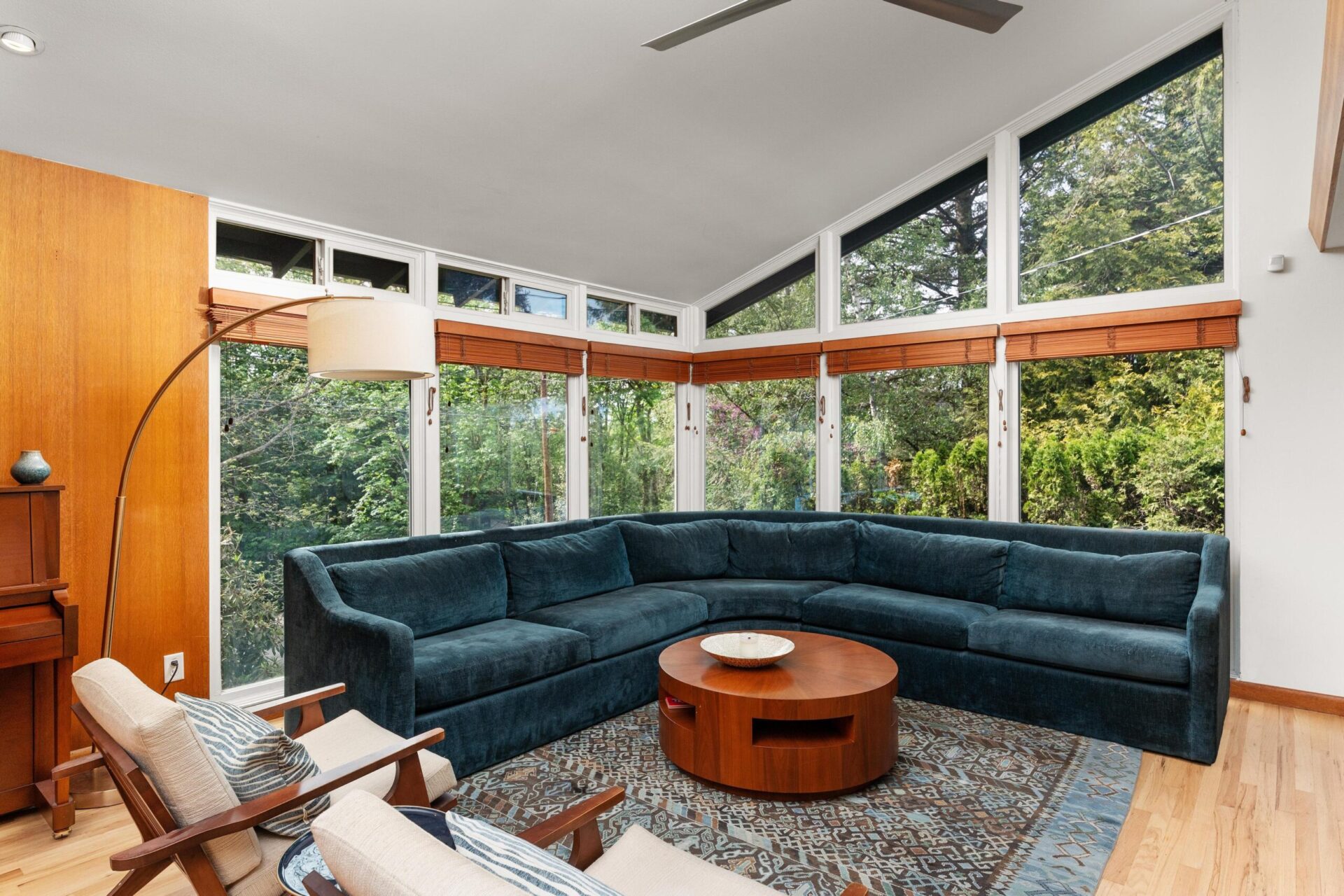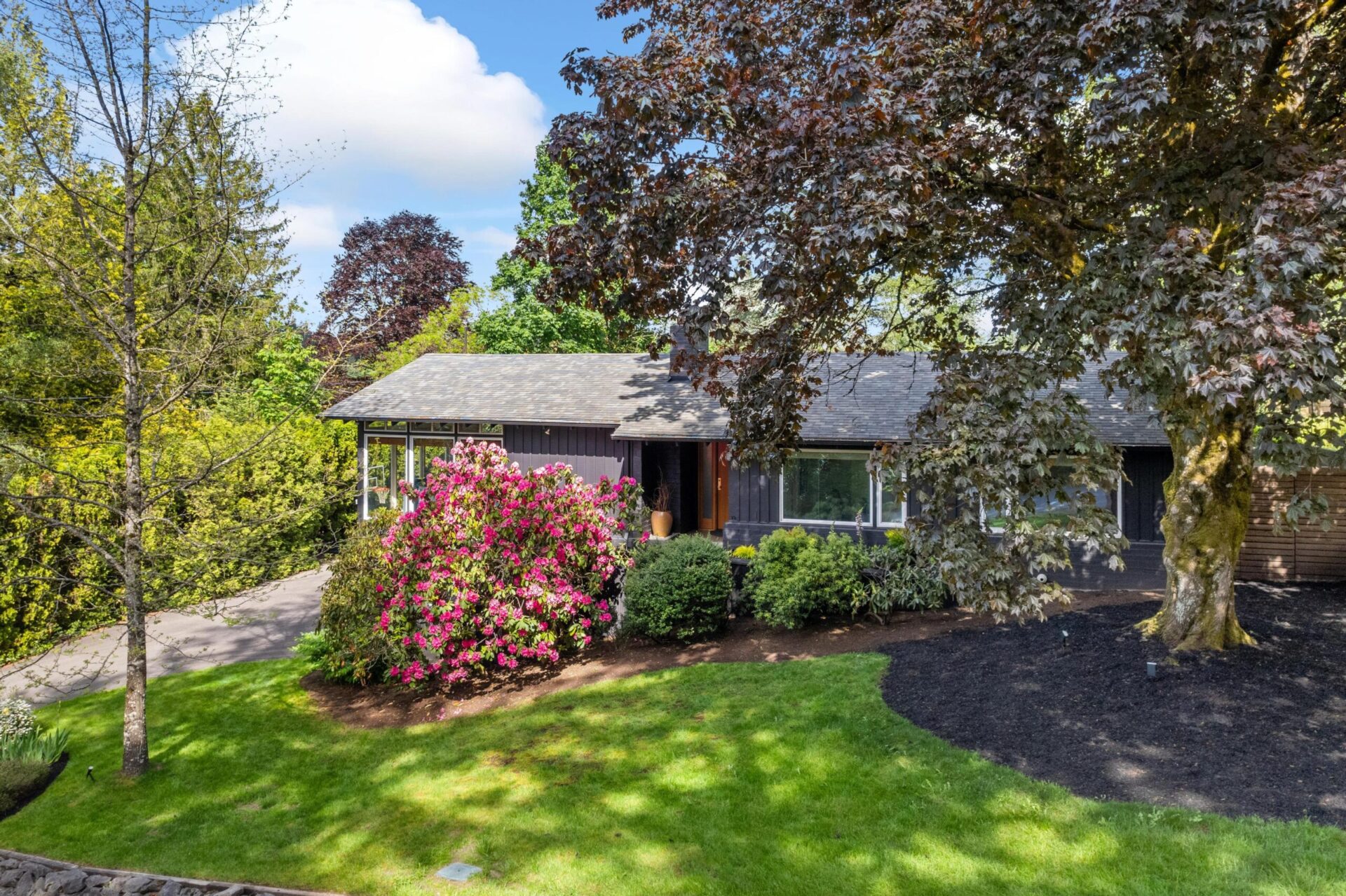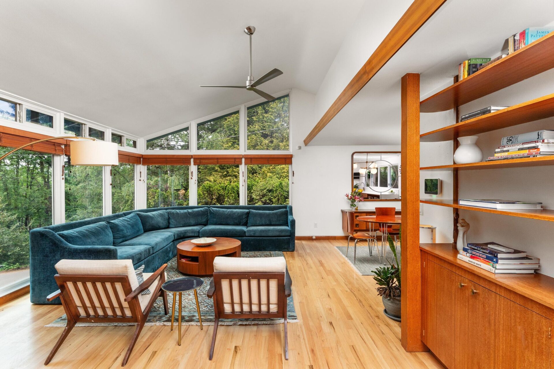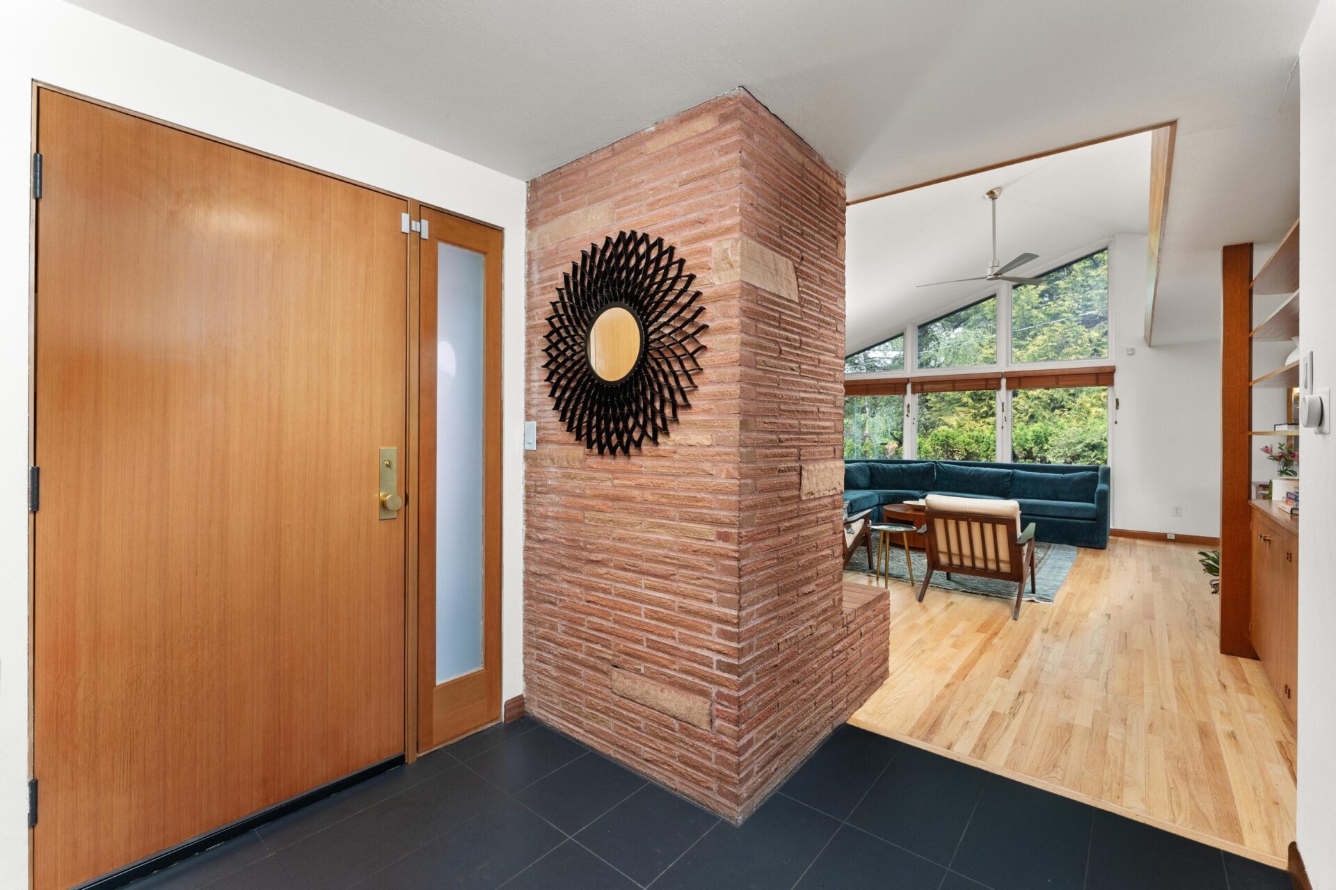 Originally built in 1957, this incredible mid century home has been carefully remastered both inside and out. An amazing kitchen redesigned by Risa Boyer includes stunning, custom slab cabinetry, picture perfect quartz counters, top shelf appliances and a gorgeous series of wood windows spanning the east facing elevation. Every detail honors the history of the home while seamlessly blending modern details. An abundance of light fills the kitchen and cascades into the amazing dining and living room which features mid century casework, vaulted ceilings and an expansive Roman brick fireplace at the south end. A series of large picture windows reinforce the incredible architecture and offer amazing perspectives across the west facing landscape. Beyond the formal spaces is a highly sought after three bedroom and two full bathroom layout which features numerous mid century details including trimless, milcore slab doors, vaulted ceilings and incredible custom built-ins. Updated bathrooms grace the primary suite and the two additional bedrooms, while oak hardwoods and updated windows reinforce the home's rich design history and speak to the impeccable mid-century design. With over 1500 square feet across the main level, you will be in awe at every turn.