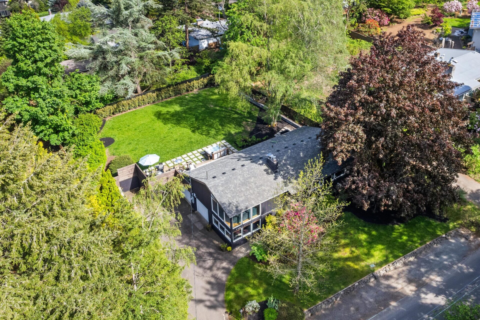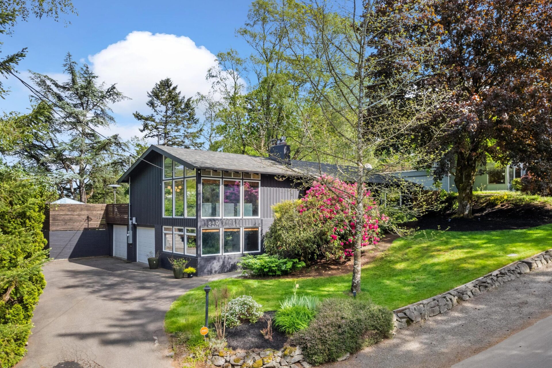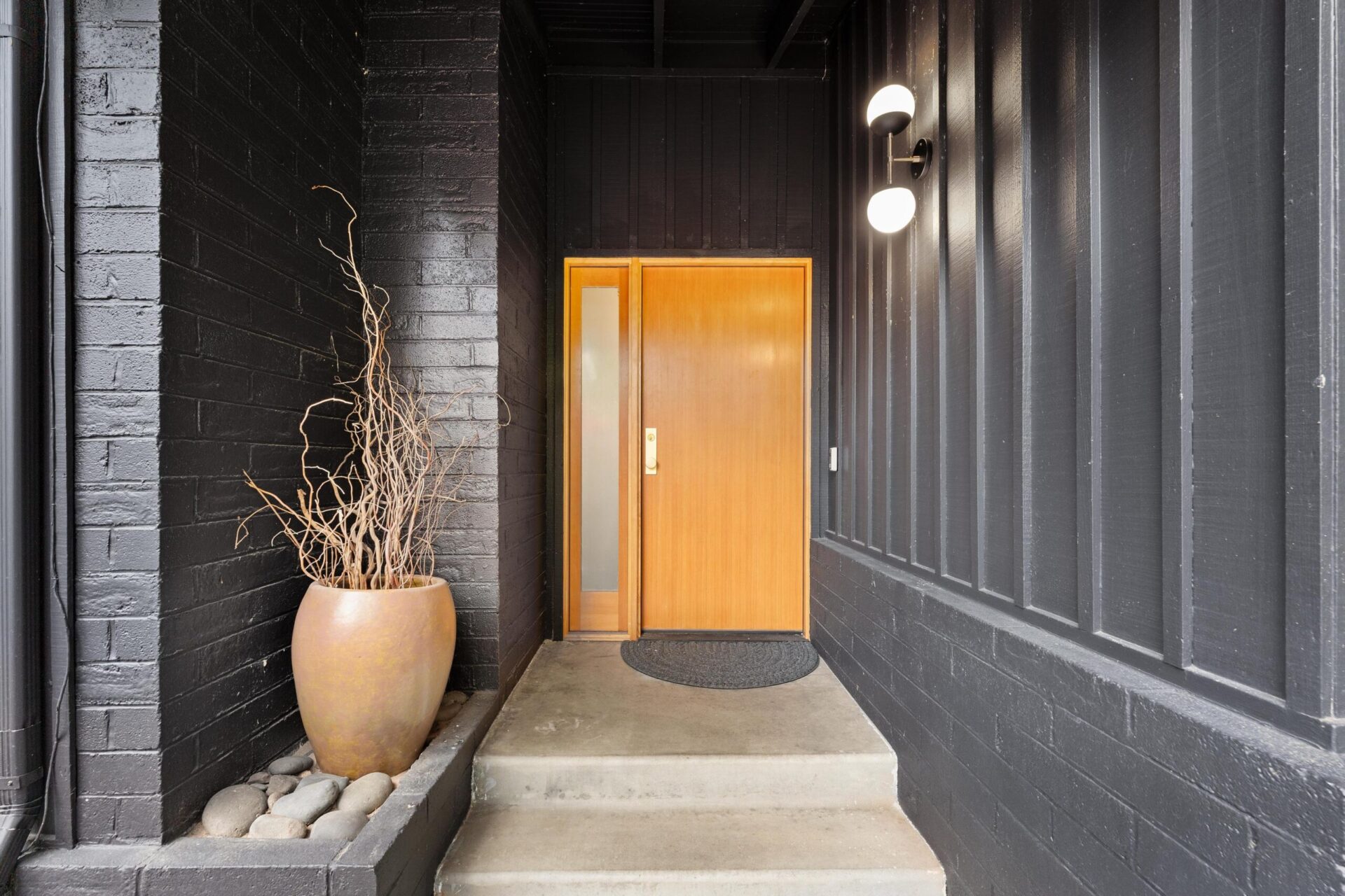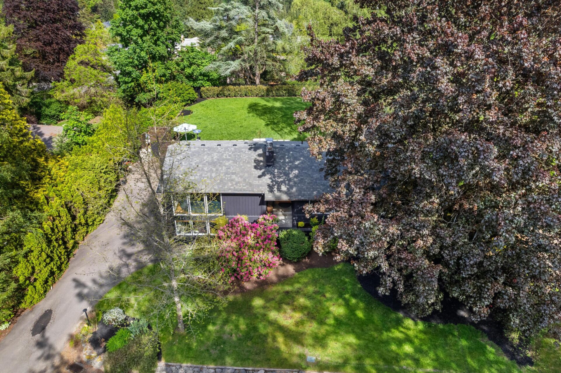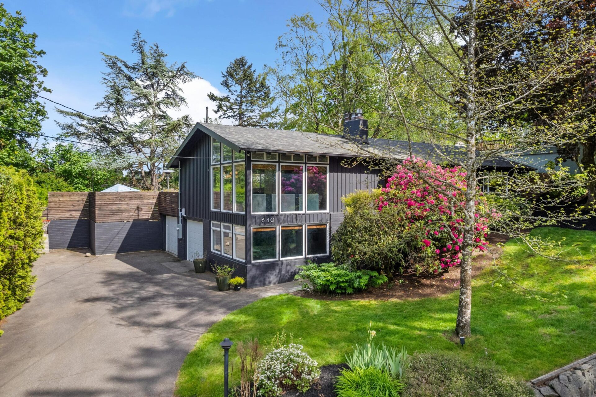 Originally built in 1957, this incredible mid century home has been carefully remastered both inside and out. An amazing kitchen redesigned by Risa Boyer includes stunning, custom slab cabinetry, picture perfect quartz counters, top shelf appliances and a gorgeous series of wood windows spanning the east facing elevation. Every detail honors the history of the home while seamlessly blending modern details. An abundance of light fills the kitchen and cascades into the amazing dining and living room which features mid century casework, vaulted ceilings and an expansive Roman brick fireplace at the south end. A series of large picture windows reinforce the incredible architecture and offer amazing perspectives across the west facing landscape. Beyond the formal spaces is a highly sought after three bedroom and two full bathroom layout which features numerous mid century details including trimless, milcore slab doors, vaulted ceilings and incredible custom built-ins. Updated bathrooms grace the primary suite and the two additional bedrooms, while oak hardwoods and updated windows reinforce the home's rich design history and speak to the impeccable mid-century design. With over 1500 square feet across the main level, you will be in awe at every turn.
