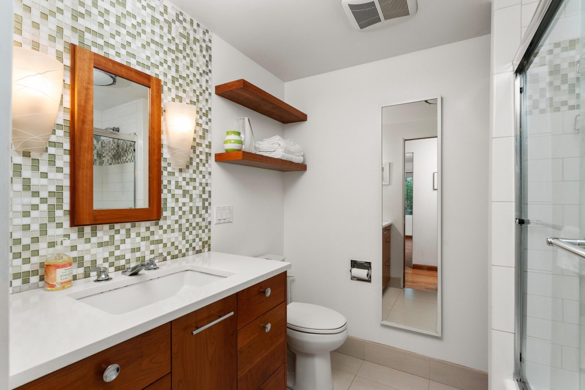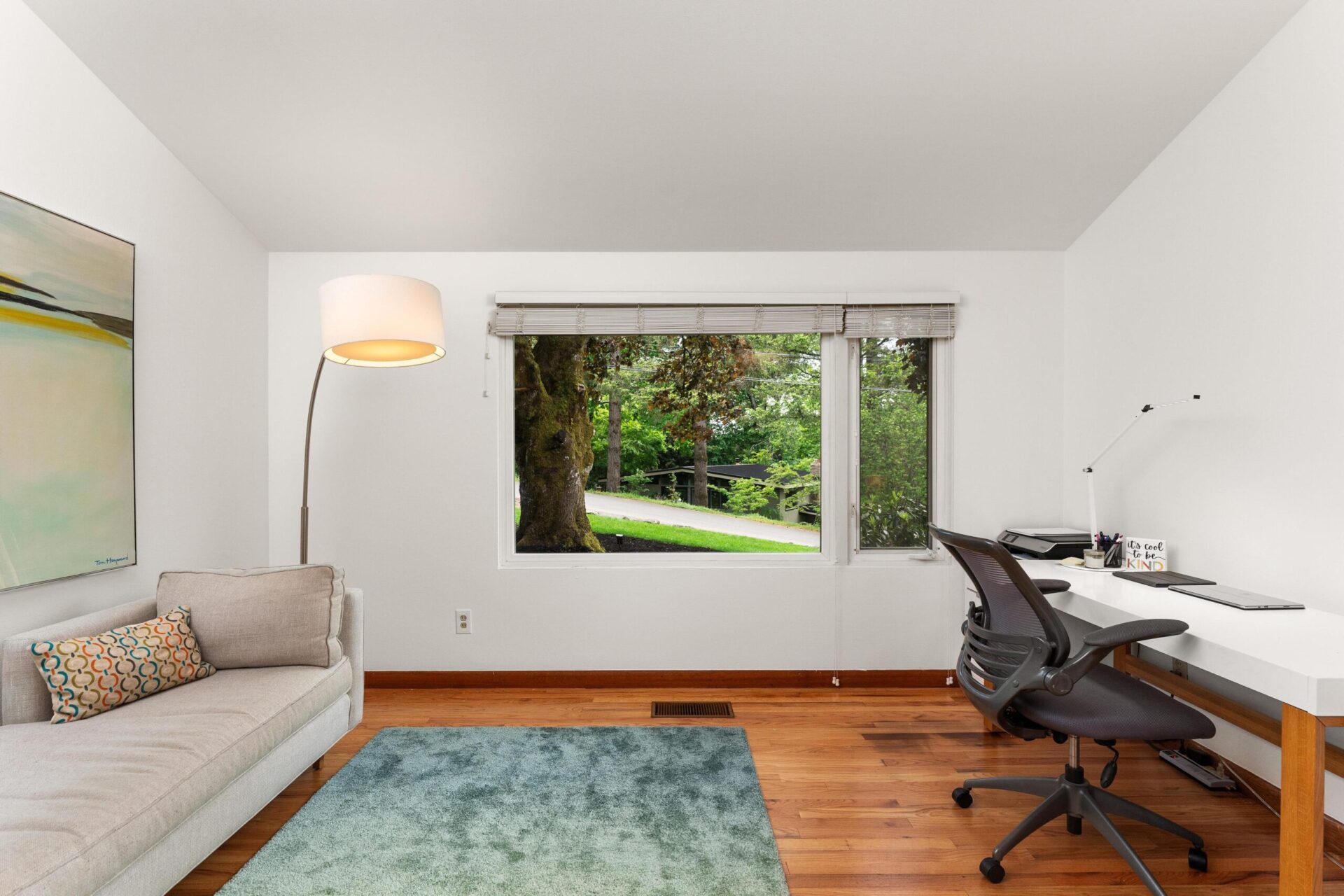 Originally built in 1957, this incredible mid century home has been carefully remastered both inside and out. An amazing kitchen redesigned by Risa Boyer includes stunning, custom slab cabinetry, picture perfect quartz counters, top shelf appliances and a gorgeous series of wood windows spanning the east facing elevation. Every detail honors the history of the home while seamlessly blending modern details. An abundance of light fills the kitchen and cascades into the amazing dining and living room which features mid century casework, vaulted ceilings and an expansive Roman brick fireplace at the south end. A series of large picture windows reinforce the incredible architecture and offer amazing perspectives across the west facing landscape. Beyond the formal spaces is a highly sought after three bedroom and two full bathroom layout which features numerous mid century details including trimless, milcore slab doors, vaulted ceilings and incredible custom built-ins. Updated bathrooms grace the primary suite and the two additional bedrooms, while oak hardwoods and updated windows reinforce the home's rich design history and speak to the impeccable mid-century design. With over 1500 square feet across the main level, you will be in awe at every turn.