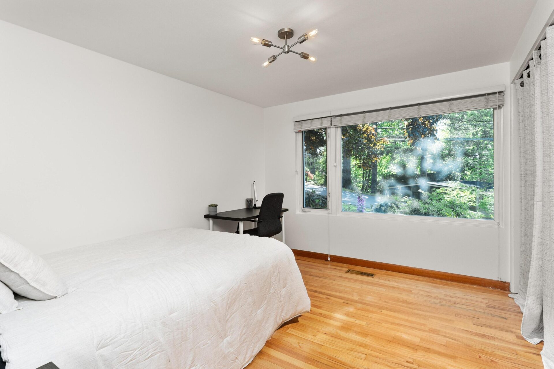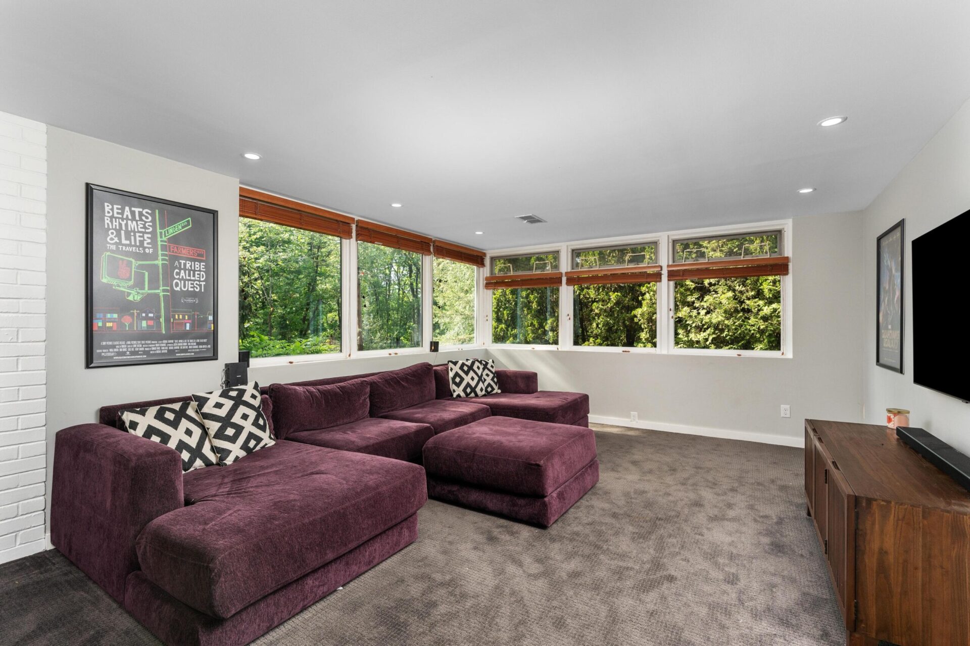 Moving downstairs to the lower level is over 1000 square feet of finished space. Like the main floor, this level has been carefully updated. At the southeast corner is a large fourth bedroom complimented by a stunning remodeled third bathroom, laundry room and expansive media room in addition to light filled family room at the northwest end of the floor. A two car, oversized garage sits perfectly off the family room and reinforces the ideal flow patterns the original designers created for this home.