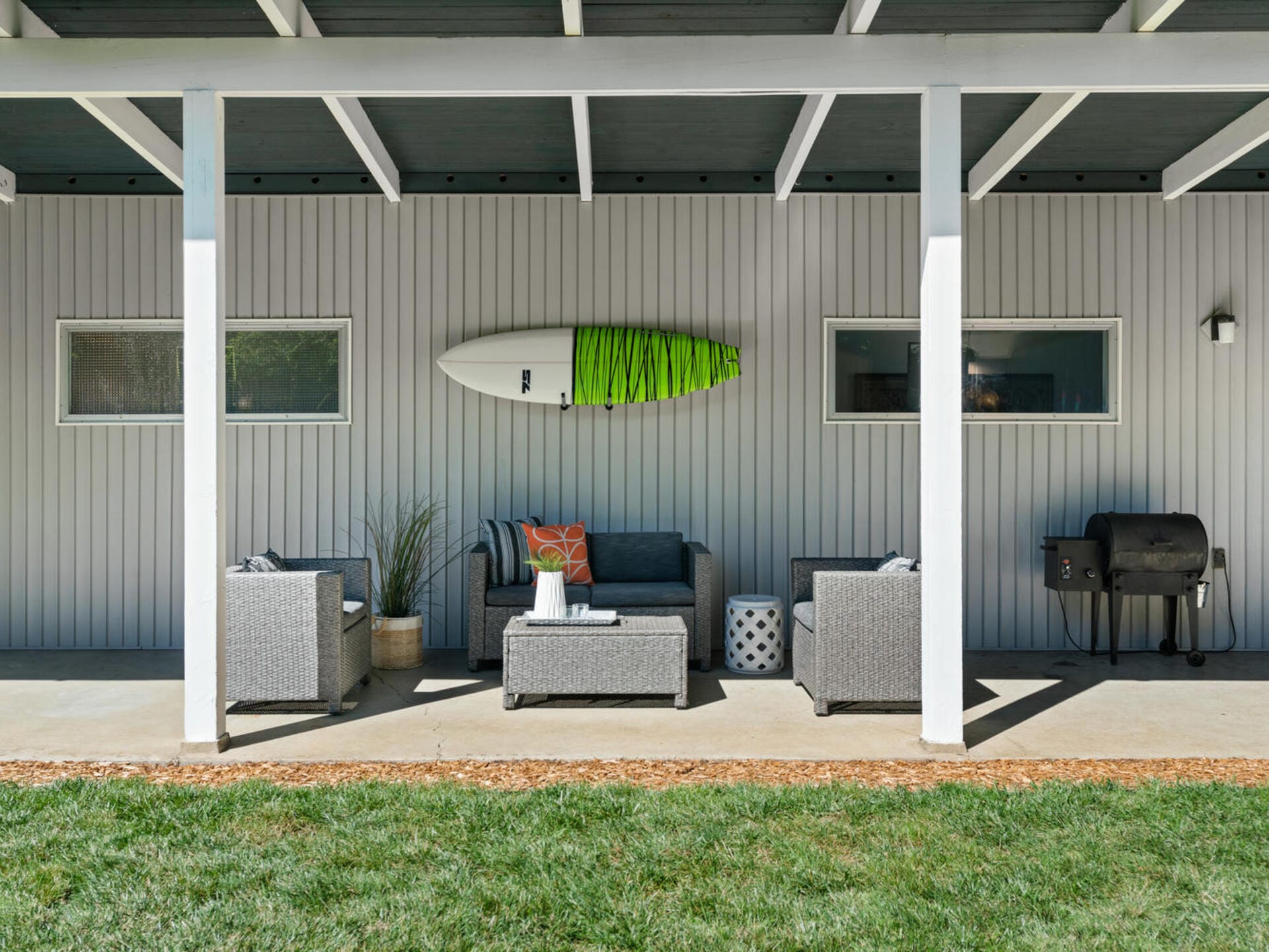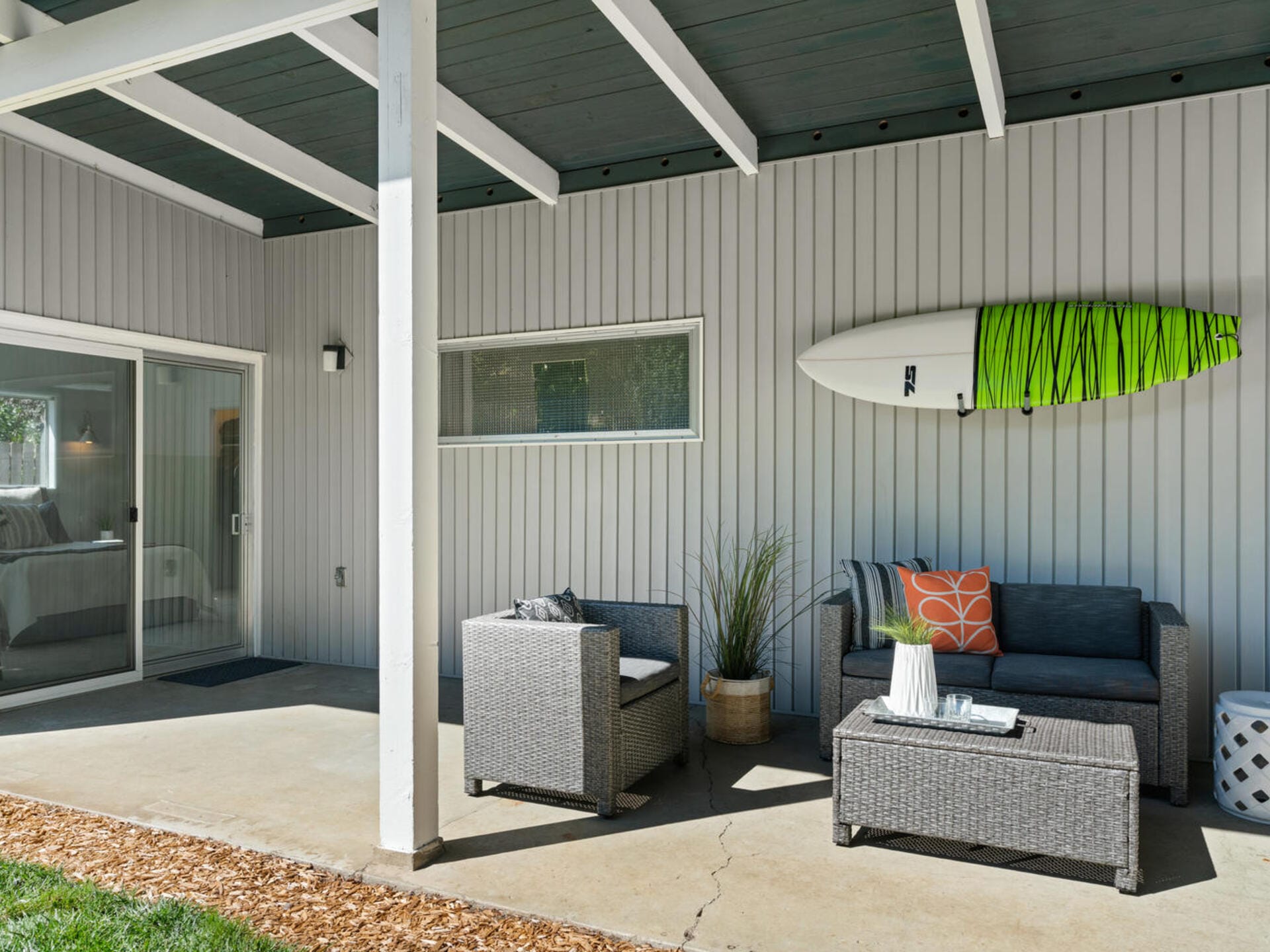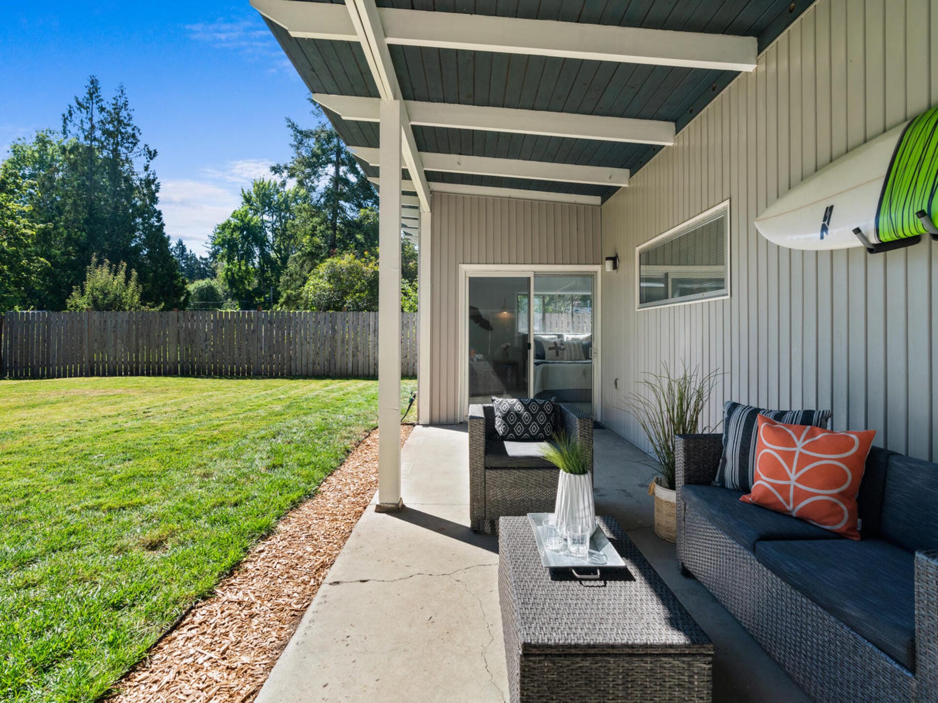 Built in 1959, this amazing southwest mid-century highlights the beauty of post and beam architecture coupled with a local designer's finishing touches. As you approach this home you are greeted by a classic open beam carport that draws you into the entry and expansive living room. With an absolutely stunning floor plan spanning over 1500 square feet across one level, the layout seamlessly ties the open formal spaces at the north end of the home with the bedrooms at the south end. This dynamic is created through an open kitchen that serves as an axis point to both ends of the home in addition to the incredible outdoor patio which ties both together on the exterior. The master suite and dining room bookend the patio which visually connects these spaces through expansive sliding doors at each end, while sheltering you under an incredible post and beam shed roof. The expansive ceilings are reflective of the massive roof line which creates a captivating sense of volume in the living room, dining room and master bedroom whose ceilings soar eastward. Complimenting the ceiling design is a stout brick wall with a wood burning fireplace that is a dramatic backdrop to the living room and kitchen. The kitchen itself features updated slab cabinetry, quartz countertops, stainless appliances and an adjacent laundry room with direct access to the west side of the property. The bathrooms have both been updated with custom tile, designer colors, gorgeous fixtures and cabinet hardware, while the bedrooms feature new carpet and beautiful two tier color patterns. Beyond the 3 bedrooms and 2 bathrooms is an expansive backyard with perfect southern exposure and a sense of privacy created by an amazing custom mural, cedar fencing and the iconic west elevation which highlights the scale of the adjacent patio and cascading mid-century beams that make this home so special. With a sought after southwest location close to Garden Home shops, grocery, the recreation center and Old Market Pub and Brewery this home is a noteworthy address that you won't want to miss.