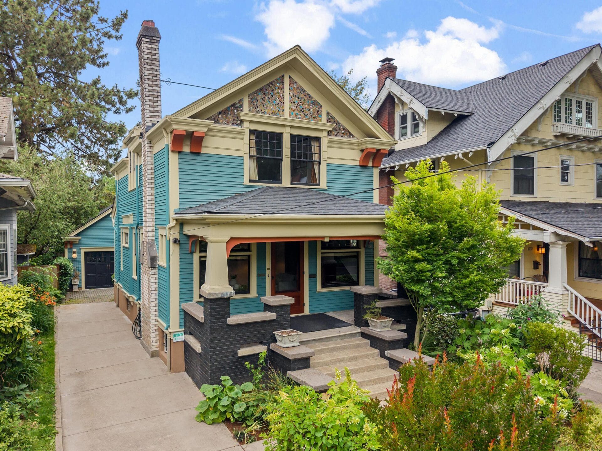 Built in 1913 by a master craftsman, the JJ Armstrong house stands today as a testament to the Arts and Crafts movement. As you approach the home you will swoon at the stunning east facing elevation. Few homes in Portland have the level of detail reflected in this home's envelope where corbels, stout batons, intricate banding and the perfect color palette highlight why Irvington is not just a historic community, but among the most cherished in all of Portland. Stepping up to the front porch and through the main door you will immediately witness the same level of detail executed on the exterior on the interior. Incredible custom millwork surrounds the living room where a three tiered fireplace mantle, multi-layered crown moulding and an intricate stairwell showcase the incredible detail that went into this home over 100 years ago. Gorgeous oak hardwoods run underfoot while custom stained glass windows highlight almost every wall and run into the dining room where a custom hutch, dual window seats and stunning wainscoting highlight the space. Just off the dining room is a picture perfect office, sitting room or piano room with its own elevated china cabinet and custom window treatments. Anchoring the north end of the main floor is the perfect powder room and a remodeled eat-in kitchen with classic shaker cabinetry, a Viking range, gorgeous field tile and Schoolhouse lighting. Moving upstairs you will find three bedrooms and a stunning remodeled full bathroom complete with a claw foot tub, tile set shower and period details at every turn. The bedrooms each feature stain grade wood flooring, five panel doors, period lighting and noteworthy wood windows with gorgeous divided light patterns. Heading back downstairs you will find a third finished floor in the basement where an expansive family room welcomes you. The family room moves seamlessly into the laundry area and towards the west end of the basement where a second full bathroom and bonus room reinforce the home's incredible utility. The same care and attention that has been paid to the preservation and updating of the home is reflected outside where stunning grounds surround the home and a back deck leads you to the incredible double garage. The garage was designed in congress with the home to ensure the same level of detail applied to the main dwelling was mimicked with the garage 103 years later. Standing proud among the grand dames of Irvington, this Northeast Portland jewel features a location just a block to the Irvington Club, five blocks to Broadway shops and equidistant from Irving and Grant Park. Put simply, you don't want to miss this opportunity to own a piece of history!