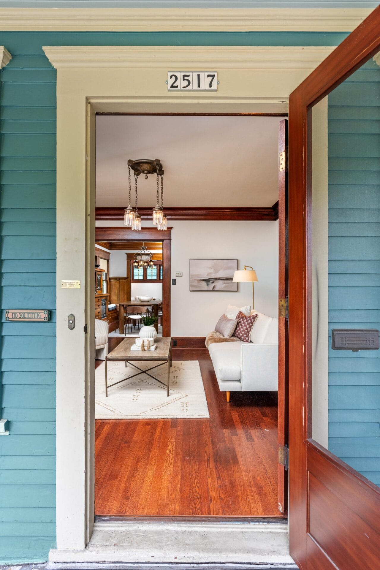 Stepping up to the front porch and through the main door you will immediately witness the same level of detail executed on the exterior on the interior. Incredible custom millwork surrounds the living room where a three tiered fireplace mantle, multi-layered crown moulding and an intricate stairwell showcase the incredible detail that went into this home over 100 years ago. Gorgeous oak hardwoods run underfoot while custom stained glass windows highlight almost every wall and run into the dining room where a custom hutch, dual window seats and stunning wainscoting highlight the space. Just off the dining room is a picture perfect office, sitting room or piano room with its own elevated china cabinet and custom window treatments. Anchoring the north end of the main floor is the perfect powder room and a remodeled eat-in kitchen with classic shaker cabinetry, a Viking range, gorgeous field tile and Schoolhouse lighting. Moving upstairs you will find three bedrooms and a stunning remodeled full bathroom complete with a claw foot tub, tile set shower and period details at every turn. The bedrooms each feature stain grade wood flooring, five panel doors, period lighting and noteworthy wood windows with gorgeous divided light patterns.