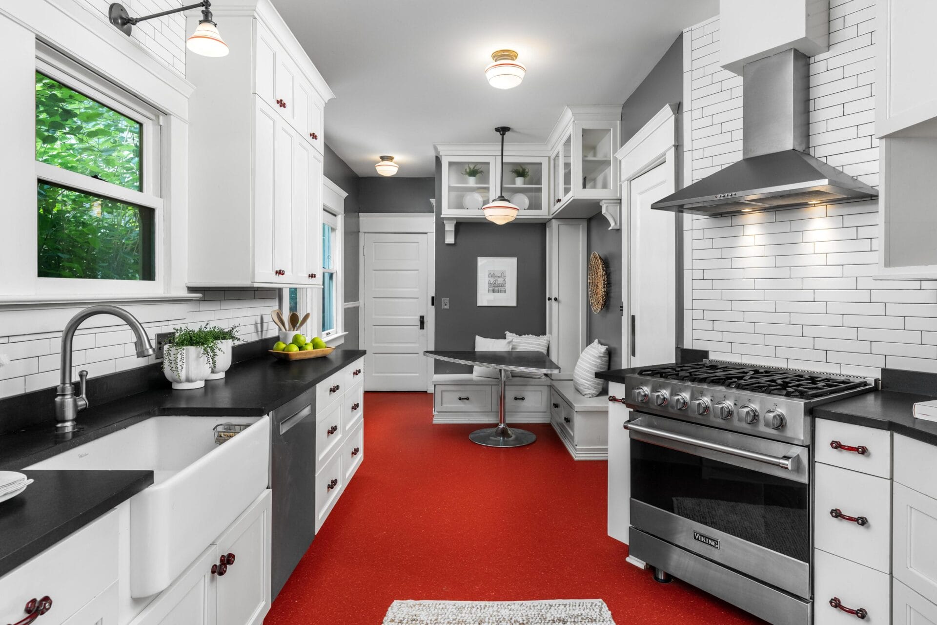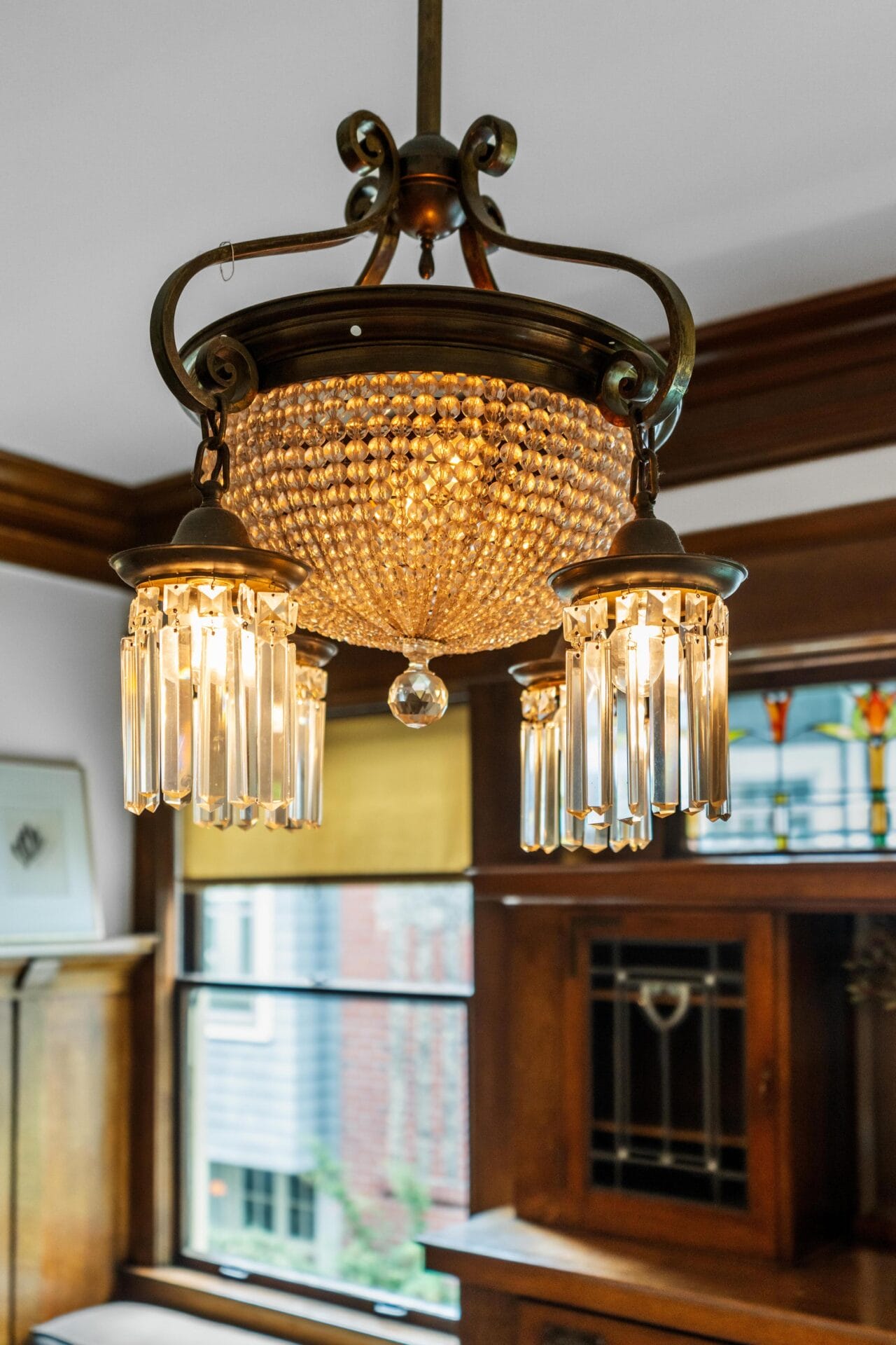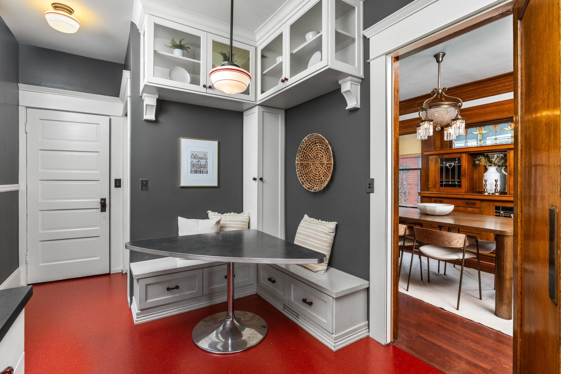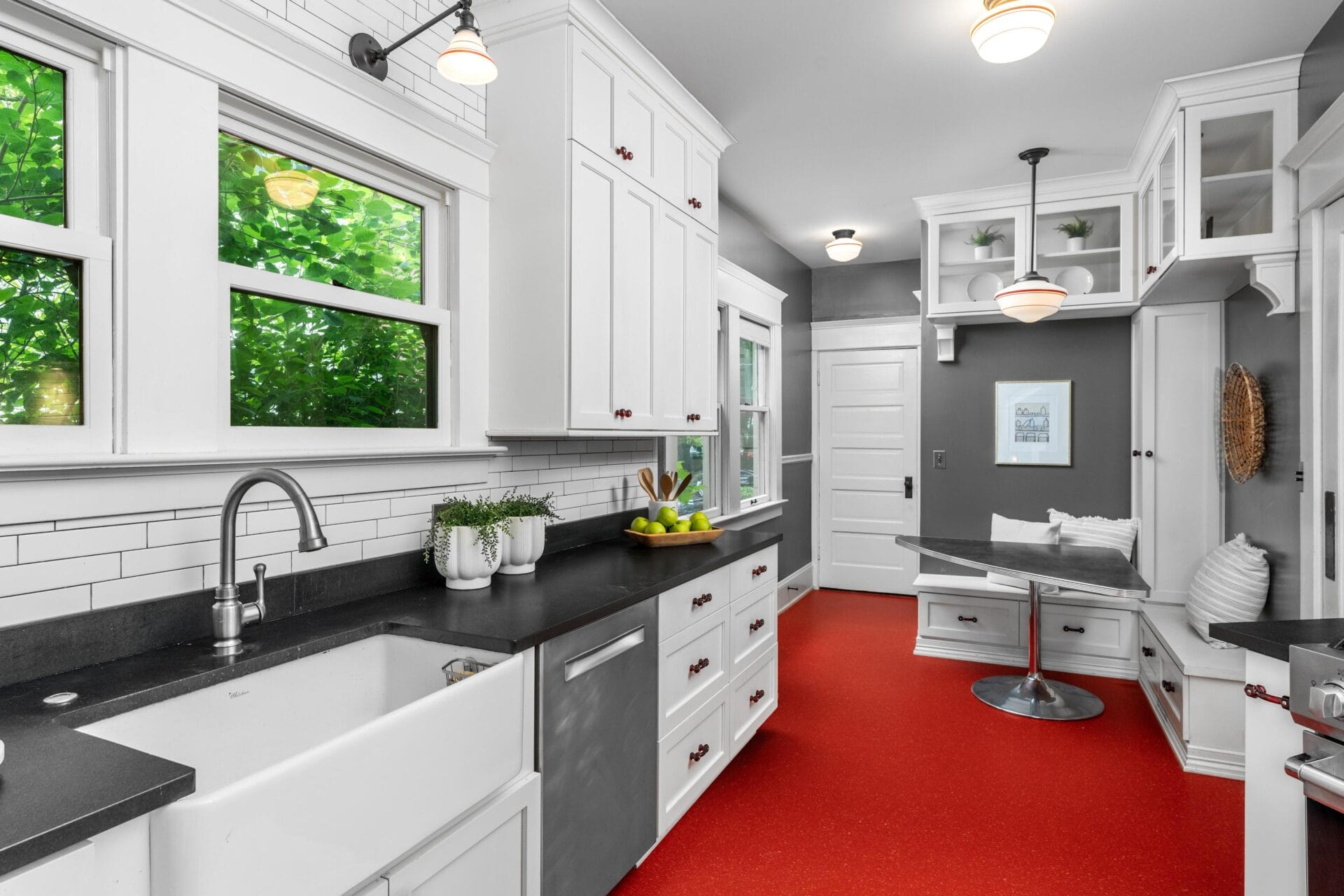 Stepping up to the front porch and through the main door you will immediately witness the same level of detail executed on the exterior on the interior. Incredible custom millwork surrounds the living room where a three tiered fireplace mantle, multi-layered crown moulding and an intricate stairwell showcase the incredible detail that went into this home over 100 years ago. Gorgeous oak hardwoods run underfoot while custom stained glass windows highlight almost every wall and run into the dining room where a custom hutch, dual window seats and stunning wainscoting highlight the space. Just off the dining room is a picture perfect office, sitting room or piano room with its own elevated china cabinet and custom window treatments. Anchoring the north end of the main floor is the perfect powder room and a remodeled eat-in kitchen with classic shaker cabinetry, a Viking range, gorgeous field tile and Schoolhouse lighting. Moving upstairs you will find three bedrooms and a stunning remodeled full bathroom complete with a claw foot tub, tile set shower and period details at every turn. The bedrooms each feature stain grade wood flooring, five panel doors, period lighting and noteworthy wood windows with gorgeous divided light patterns.