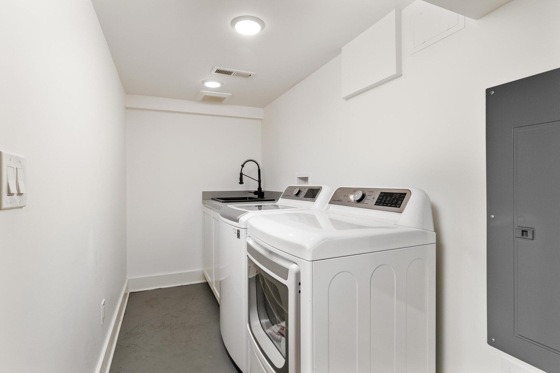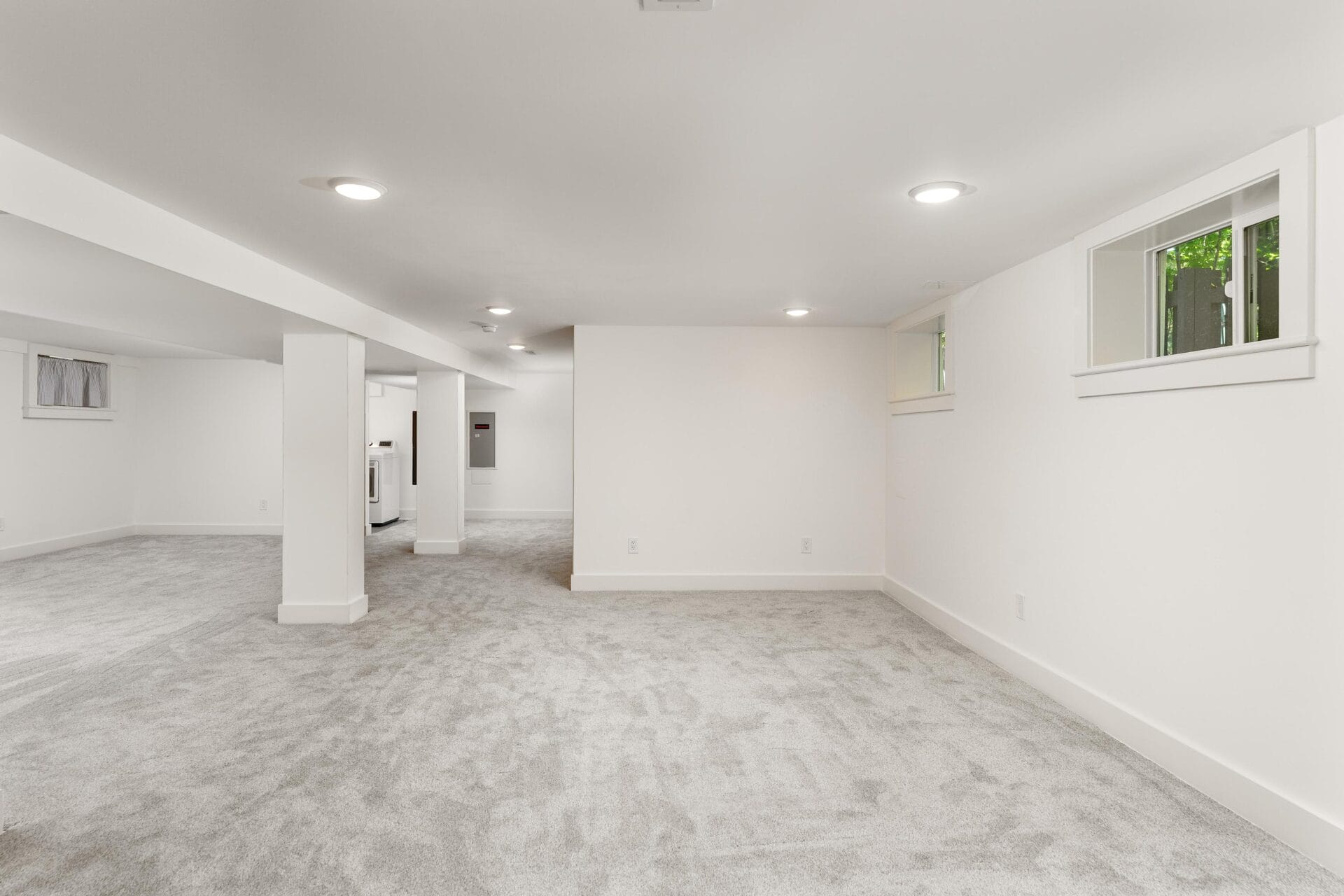 Heading back downstairs beyond the first floor is the finished basement which comprises almost 1000 square feet of space. New carpet sits underfoot while more than 500 square feet of open space gives the next homeowner countless options. In the northwest corner is the home's third full bathroom, while the home's laundry room, complete with built-in utility sink, anchors the southwest corner. Updated mechanicals can be found perfectly situated in both the west and east walls of the basement and include a tankless water heater, higher efficiency furnace and even a control panel for the home's backup generator. Beyond the 3100 plus square feet that comprise the interior of the home, is a rebuilt, oversized garage coupled with an amazing back and side yard. The grounds perfectly flank the home's expansive, wrap-around deck and create an elegant natural backdrop whether enjoying a good book or dinner. With an address located in the sought after Beverly Cleary catchment area and just blocks to the library, Whole Foods, schools and countless Hollywood shops, you don't want to miss this rare opportunity to own a completely turn-key Grant Park century home.