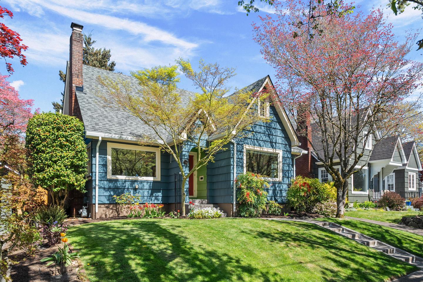 This is the home you have been waiting for! Perched above one of Grant Park's most cherished streets, this gorgeous 1930's craftsman home features over 2400 square feet across three finished floors. The main floor boasts expansive formal spaces featuring inlaid oak hardwoods, beautiful millwork and historic craftsman tile. At the east end of the main floor the updated kitchen features stunning finishes, stainless steel appliances and clever utility, while two gracious bedrooms and a full bath anchor the north wing. Moving upstairs you will find over 500 square feet of open space and the noteworthy primary suite. The en suite bedroom anchors the expansive second floor, which features gorgeous wall-to-wall carpet. an adjacent full bathroom and closet and attic spaces that reinforce the home's noteworthy functionality. Moving back downstairs to the finished basement is another 700 plus finished square feet that includes a large family room, fourth bedroom and a laundry room complete with a half bath. Beyond the gorgeous interior spaces which showcase the homeowners' careful stewardship are incredible grounds that will appeal to the most avid gardeners. From the picture perfect dogwood and vine maple to the established shrubs that shelter the large cedar deck and surround the open lawn, you will find the kind of backdrop that so many people cherish in this pocket of Alameda / Grant Park. Beverly Cleary and Grant schools coupled with an address just a short distance to Grant Park and Hollywood shops makes this a home you don't want to miss!