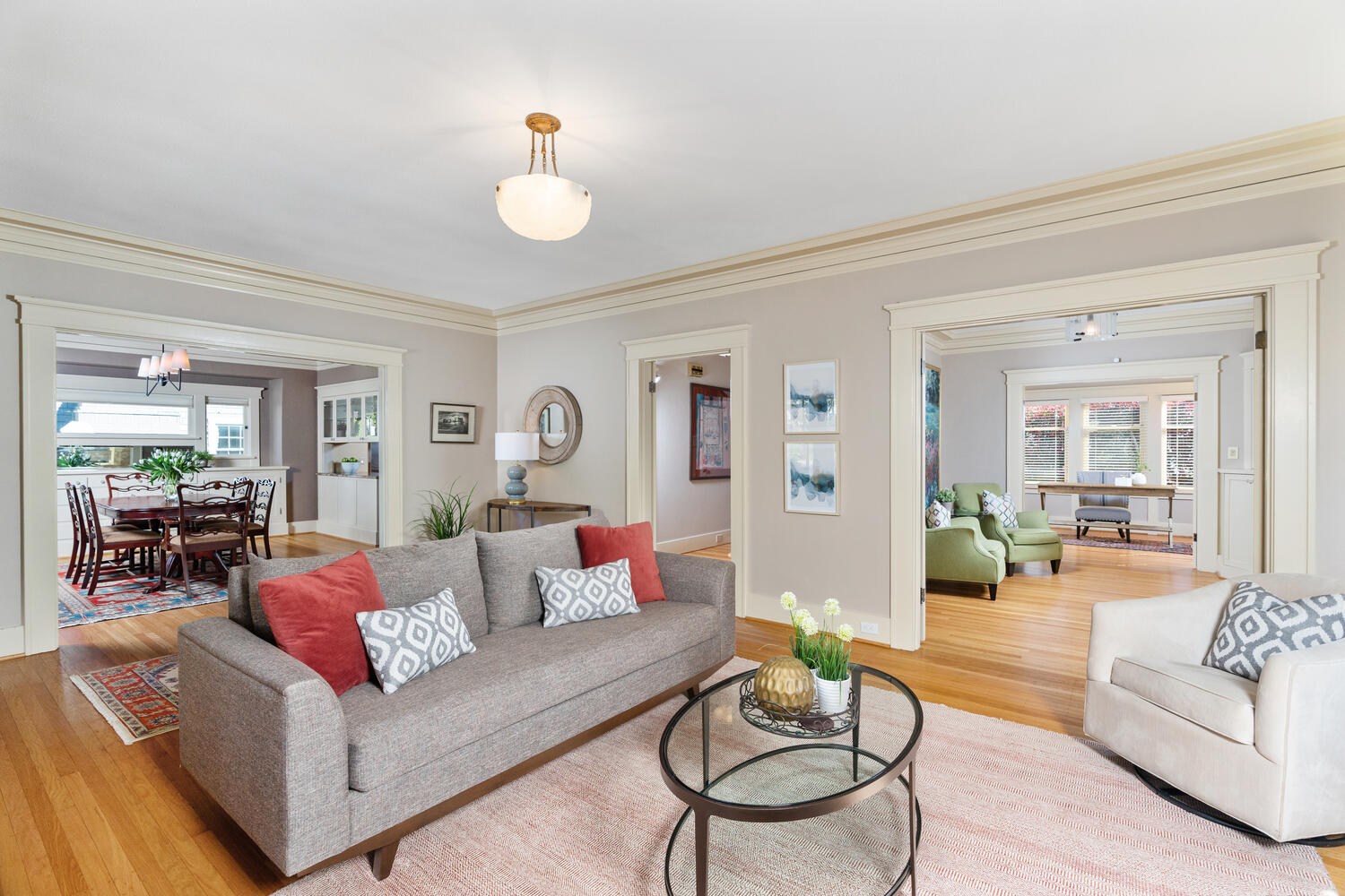 In 1922 the Rose City Park Association sold this amazing 9000 square foot parcel to David and Elsie Wilson. Shortly afterward the Wilsons drafted plans and two years later they constructed the home that today many northeast Portlanders refer to as their favorite. Since 1988, the Hicks Family have been the careful stewards of this home which stands today as tall and proudly as ever on the same amazing stretch of Alameda Street that has made it famous. As you approach the home you are quickly taken by its scale and architectural details. The hip roof and deep soffits with repeating corbels draw your eye into the incredible front porch whose width and depth are hard to match. Adding to its beauty is its clever functionality which is made possible by a second hip roof that shelters two thirds of the porch while allowing a pergola to encourage southern light to diffuse across its final third seamlessly. Entering the home you quickly recognize what makes Old Portland's so special as the grand foyer draws you into the home's stunning formal spaces. To the south, the living room welcomes you in with it's stunning fireplace, expansive windows and incredible millwork, while the gracious dining room anchors the northwest wing with its jaw dropping built-in hutch. Unlike many Old Portland's the Hicks Home has a depth and scale far greater than what many are accustomed to seeing with a main floor footprint of over 1600 square feet. Its original southeastern wing features a large sitting room which leads you into the home's main floor office, while the new northeastern wing showcases the home's new gourmet kitchen and open family room stretching over 30 feet in depth. The kitchen features amazing custom cabinetry, a cook's island, beautiful hard surfaces, a pass through butler's pantry and Wolf and Sub Zero appliances, while it's adjacent family room allows for the great room functionality so many desire today. Rounding out the main floor is an updated powder room and notable finish details which include refinished oak flooring, refurbished artisan glass windows and designer colors throughout. Moving upstairs your admiration for the home's design only deepens as you find yourself at the second floor landing which serves as the perfect axis to four bedrooms. This hard to find configuration is made more notable because of the large scale of each of the bedrooms. At the northwest corner is the owner's suite which has been carefully updated with double closets and an amazing remodeled bathroom. A double vanity with duravit fixtures is juxtaposed perfectly to the amazing shower with 3/8" glass and a tiled shower pan, while the remainder of the space highlights clever custom cabinetry and perfect fixture placement at almost every turn. The northeast and southwest bedrooms offer an elegant symmetry to the upstairs, while the fourth bedroom at the southeast corner features a picture perfect private outdoor deck which allows you take in the incredible back and side yard grounds of the property. As you head back downstairs towards the basement you will notice the gracious stairwell which has been completely reconfigured alongside the kitchen remodel and addition. Comfortable treads and head height allow you to enter the amazing finished basement with almost 1100 square feet of space. An expansive family room and playroom with new carpet and built-ins make up the western side of this lower level, while a full bathroom, gym space, wine cellar and gracious laundry room round out the remainder. Like the above grade floors, you can't help but notice the incredible care the Hicks have applied to every corner of this home which includes updated mechanicals, plumbing and electrical in addition to so many of notable the finish details. Beyond this amazing 4000 square foot home are the exterior amenities which add to its grandeur. On the east side of the home is an expansive ipe deck in addition to a hot tub which is sheltered in the private northeast corner of the property. The south side of the home features its noteworthy side yard which includes the home's gated driveway, gorgeous two car carriage house and large yard with custom stone patio, water feature and amazing grounds. Space is abundant on this property which was part of the amazing vision of the Wilsons 99 years ago. Coupling that vision with the incredible stewardship the Hicks have applied to this property for over 30 years and it is no wonder why this home is the most coveted in the community. -Jim Arnal